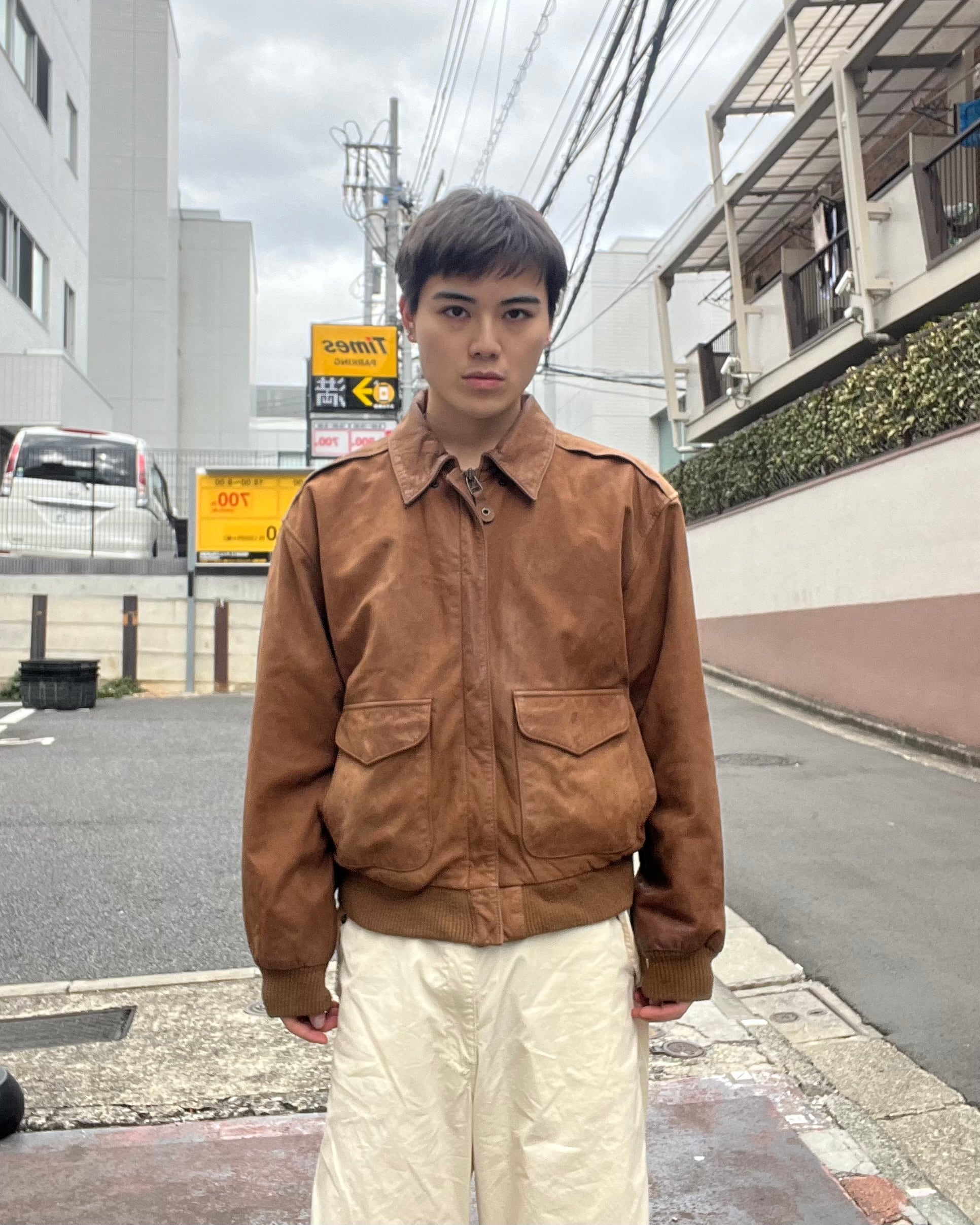 上質なスエードのレザージャケット。襟の部分と首元にボタンが付いていて、カジュアルに見えがちなレザージャケットでもボタンをつけてあげるだけで襟がしっかりと立ってくれるのでフォーマルにも着こなせるジャケットとなっています。また、裏地、中綿がポリエステル100%なので、寒い時期でも暖かく着ることができます。