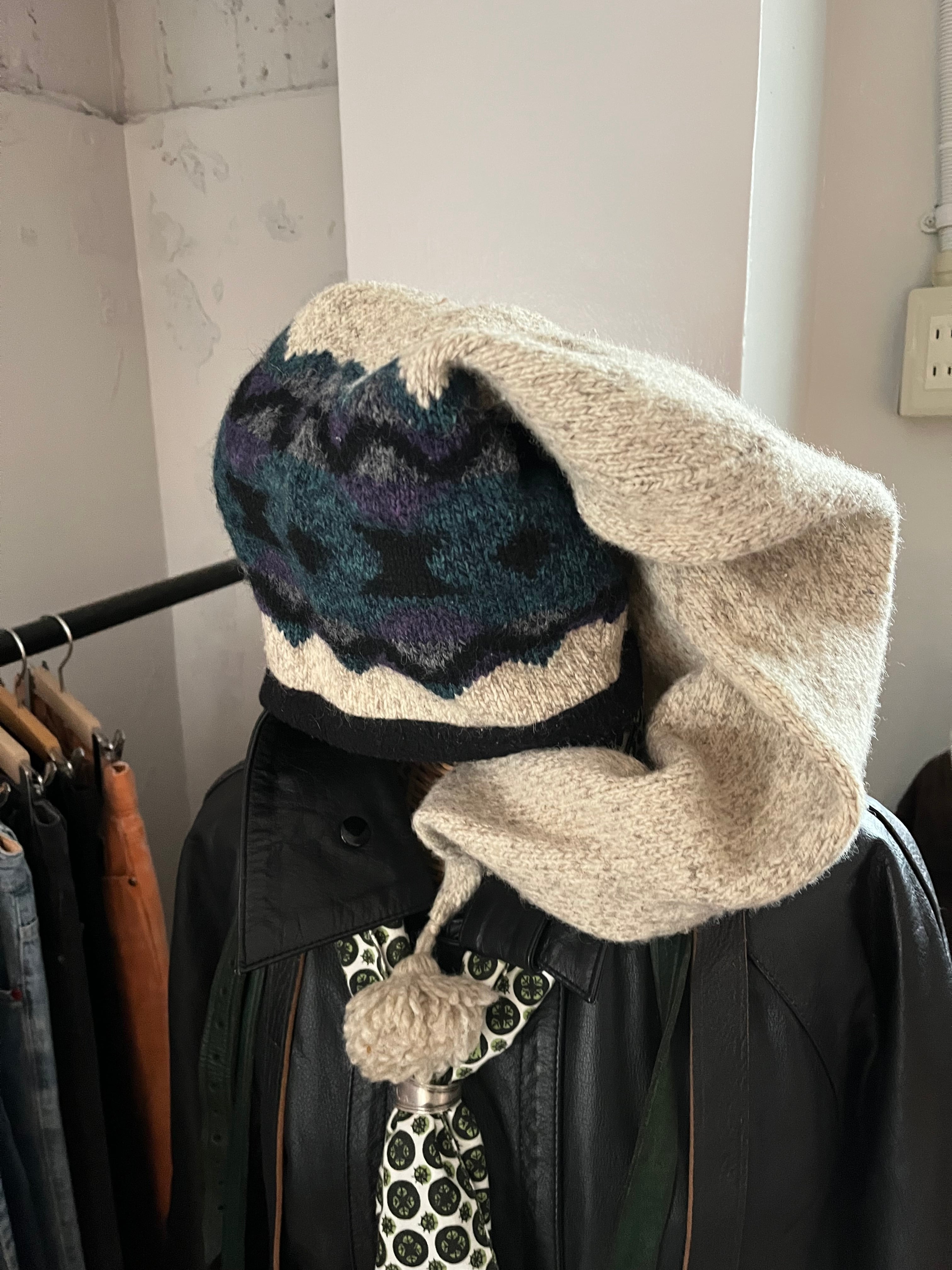 ビーニーでは珍しいノルディック柄がデザインされており、77cmもある少し変わったビーニーです。少しクセがあることから誰かと被ることなく自分自身の個性を出せるアイテムとなっています。また、カジュアルな服に合わせてあげると可愛らしい雰囲気のあるファッションスタイルになり、フォーマルな服に合わせてあげると外しとしてファッショナブルになるので、使い方によっては唯一無二の最強アイテムです。