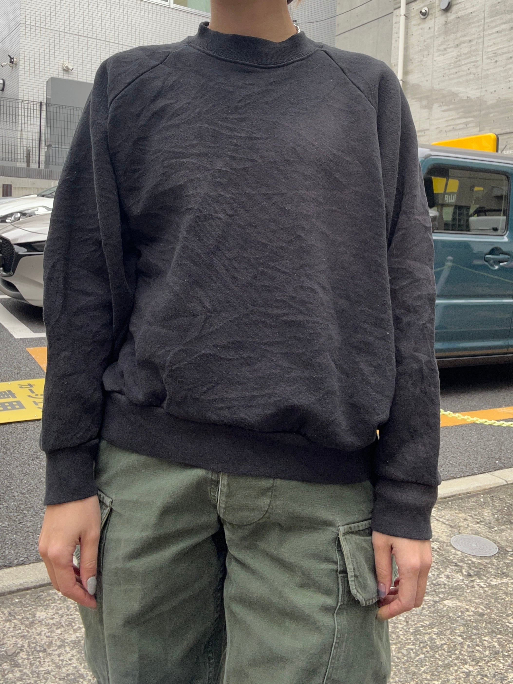 90〜00年代頃のフルーツオブザルーム無地スウェットです。溜まり感や丸みを帯びたシルエットが美しい一枚。年代特有の生地感は柔らかくて着心地も最高です。ただの無地スウェットですらこのようなヴィンテージを纏う古着の美学…◎