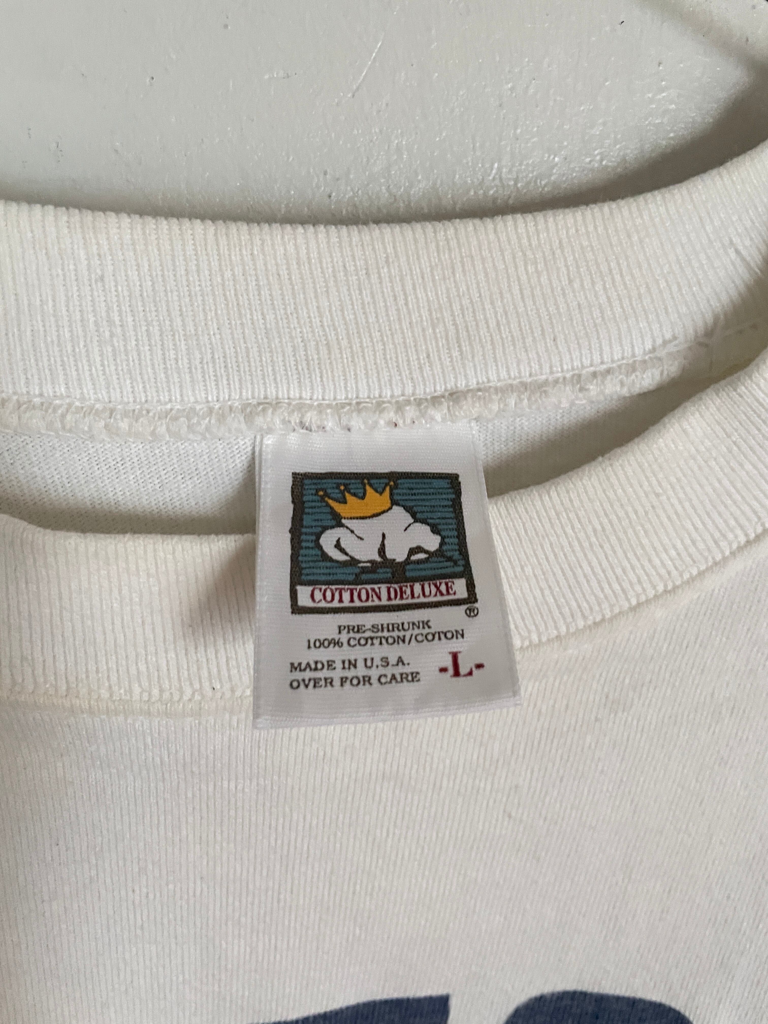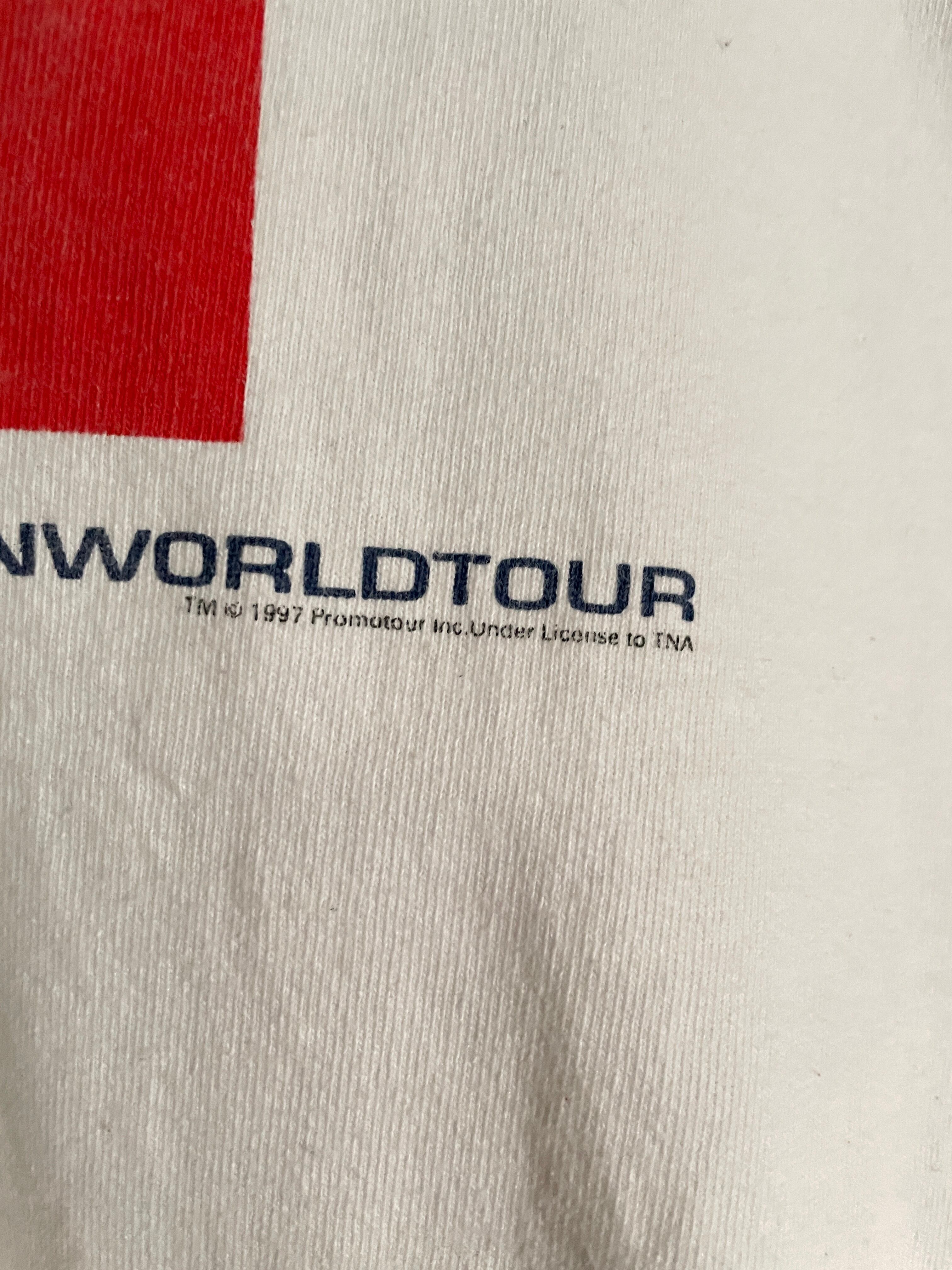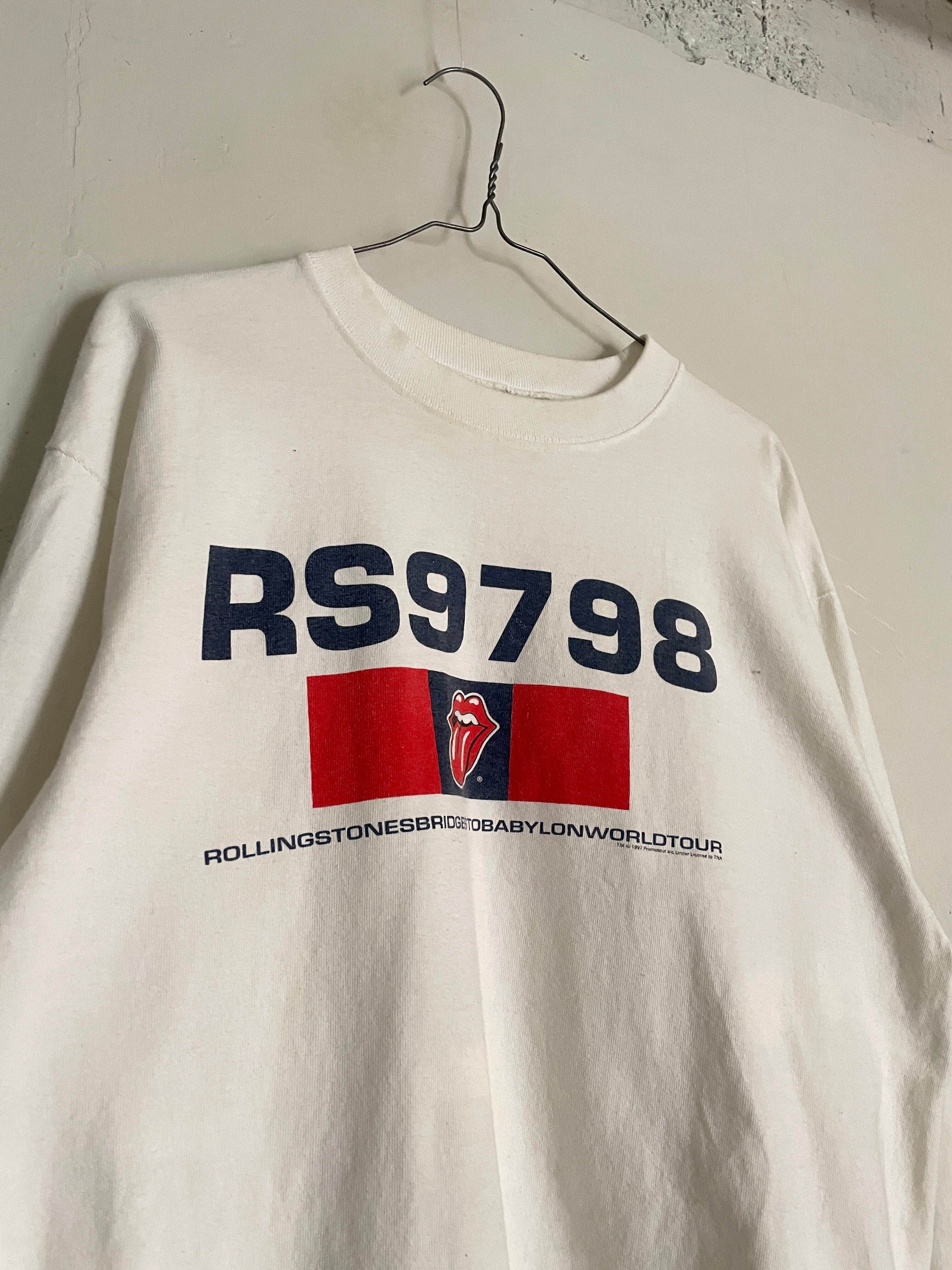 ホワイトボディに、ローリングストーンズの”Bridges to Babylon World Tour"のプリントが施されたロンT。ローリングストーンズのシンボル”リップス・アンド・タン”のプリントと、”RS9798"のプリントが特徴的です。もちろんUSA製で、サイズもLとゆったりめ。バンドTシャツの長袖はなかなか手に入りにくくなってきました。お探しの方は是非。