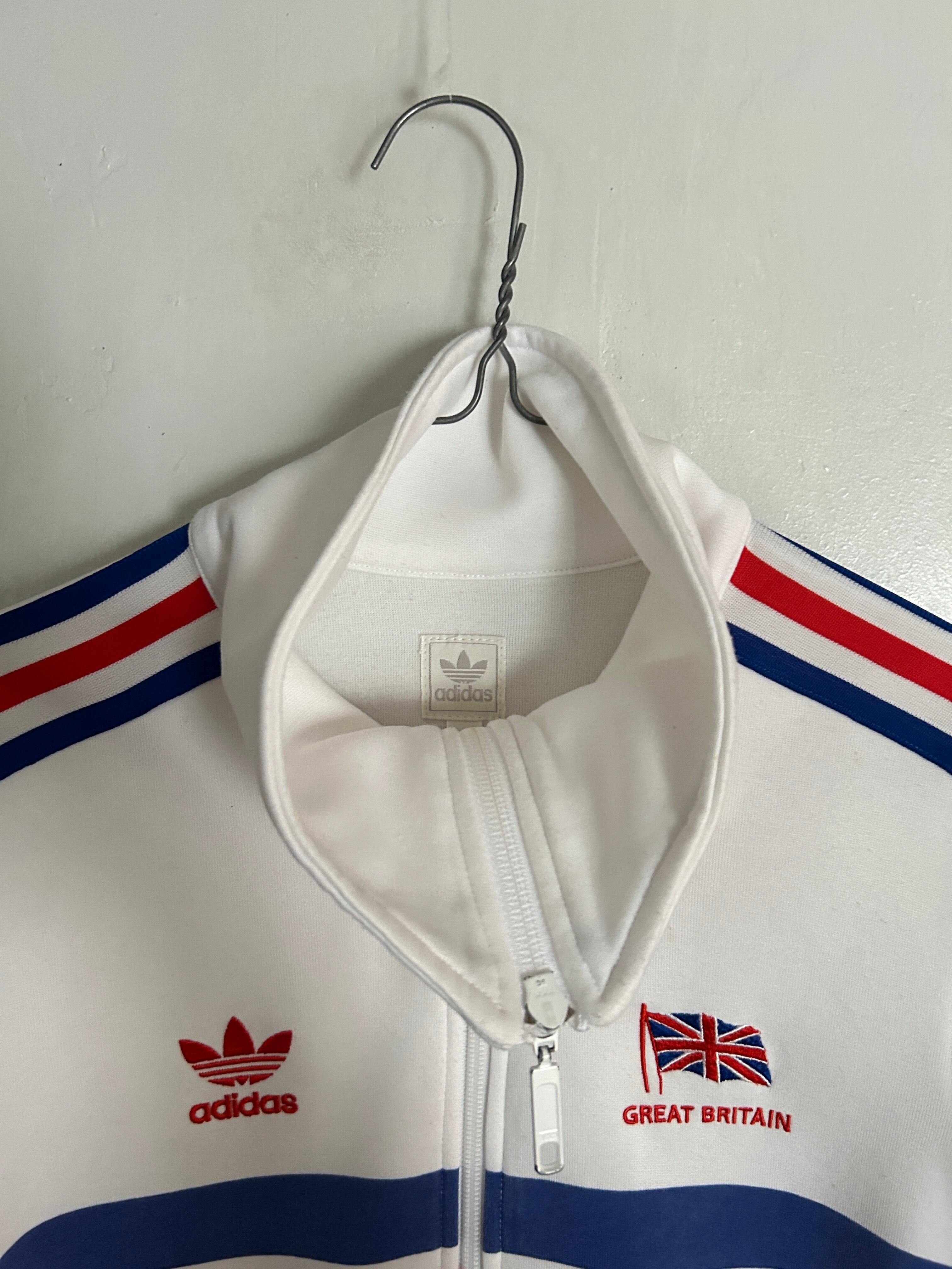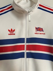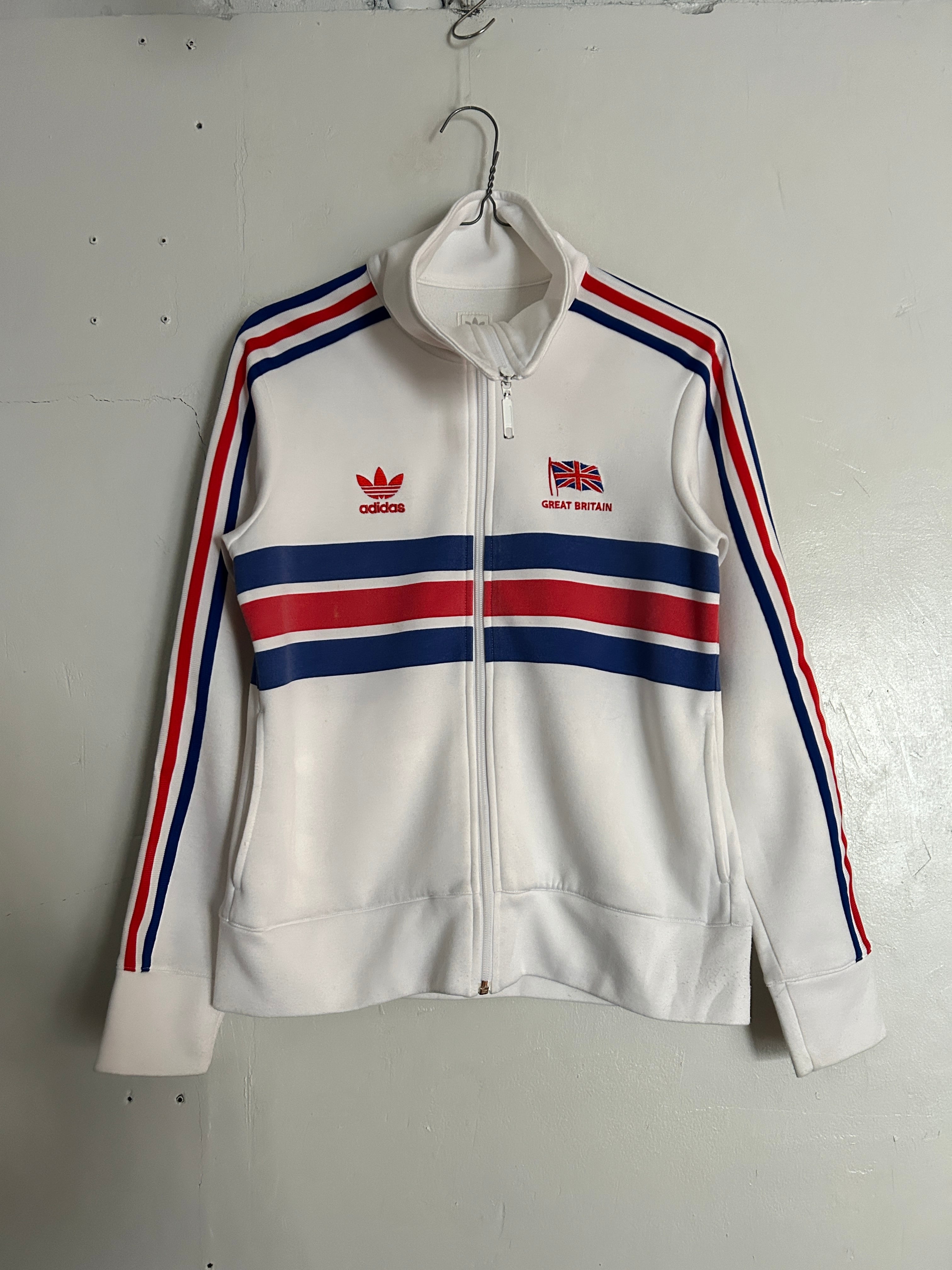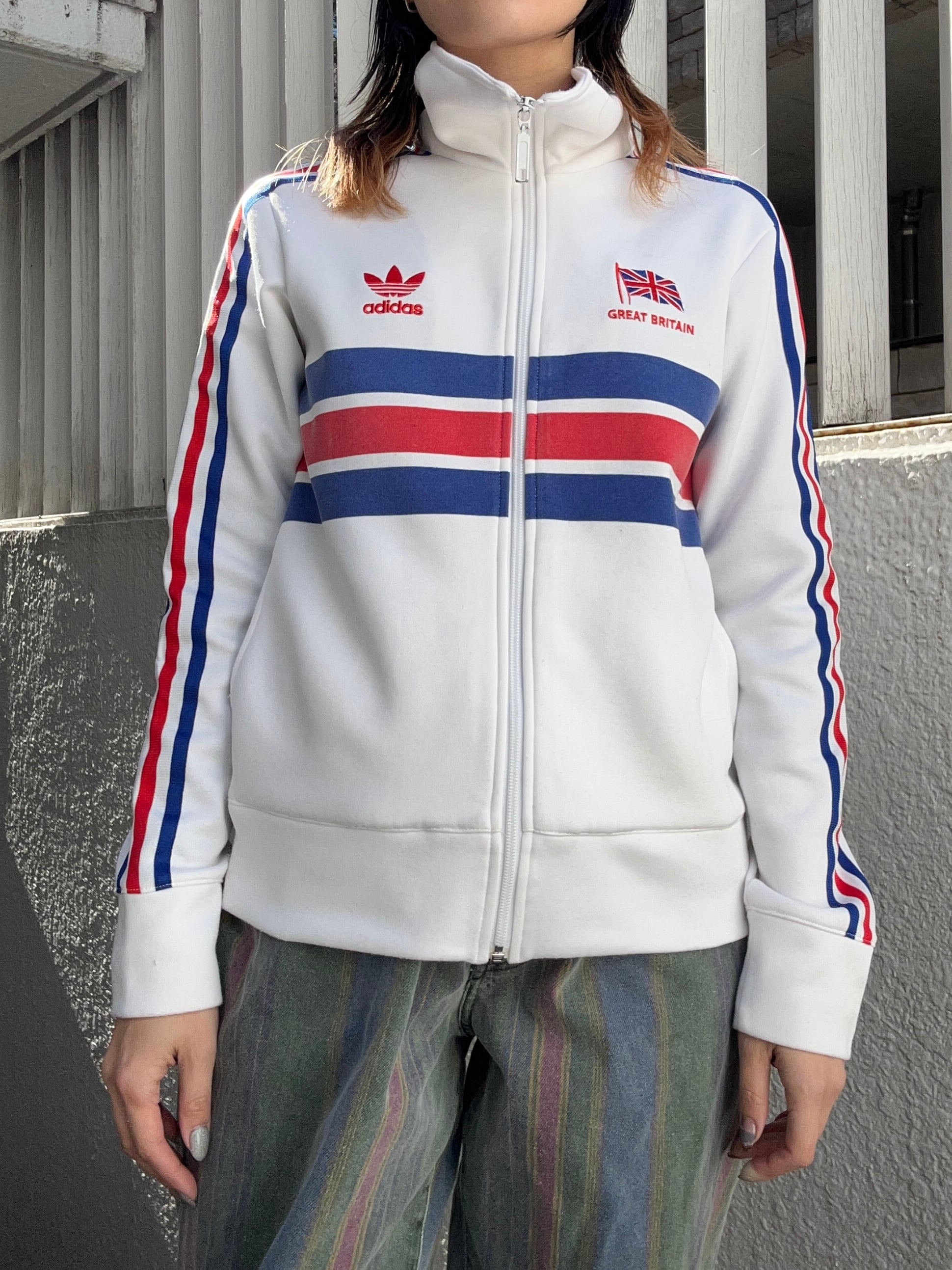 国別シリーズで展開されたグレートブリテンのトラックジャケットです。ザ・イギリスカラー!でとても可愛いです。がホワイトですが目立つ汚れもなく状態が良いです。羽織りでもトップスでも使える一着!