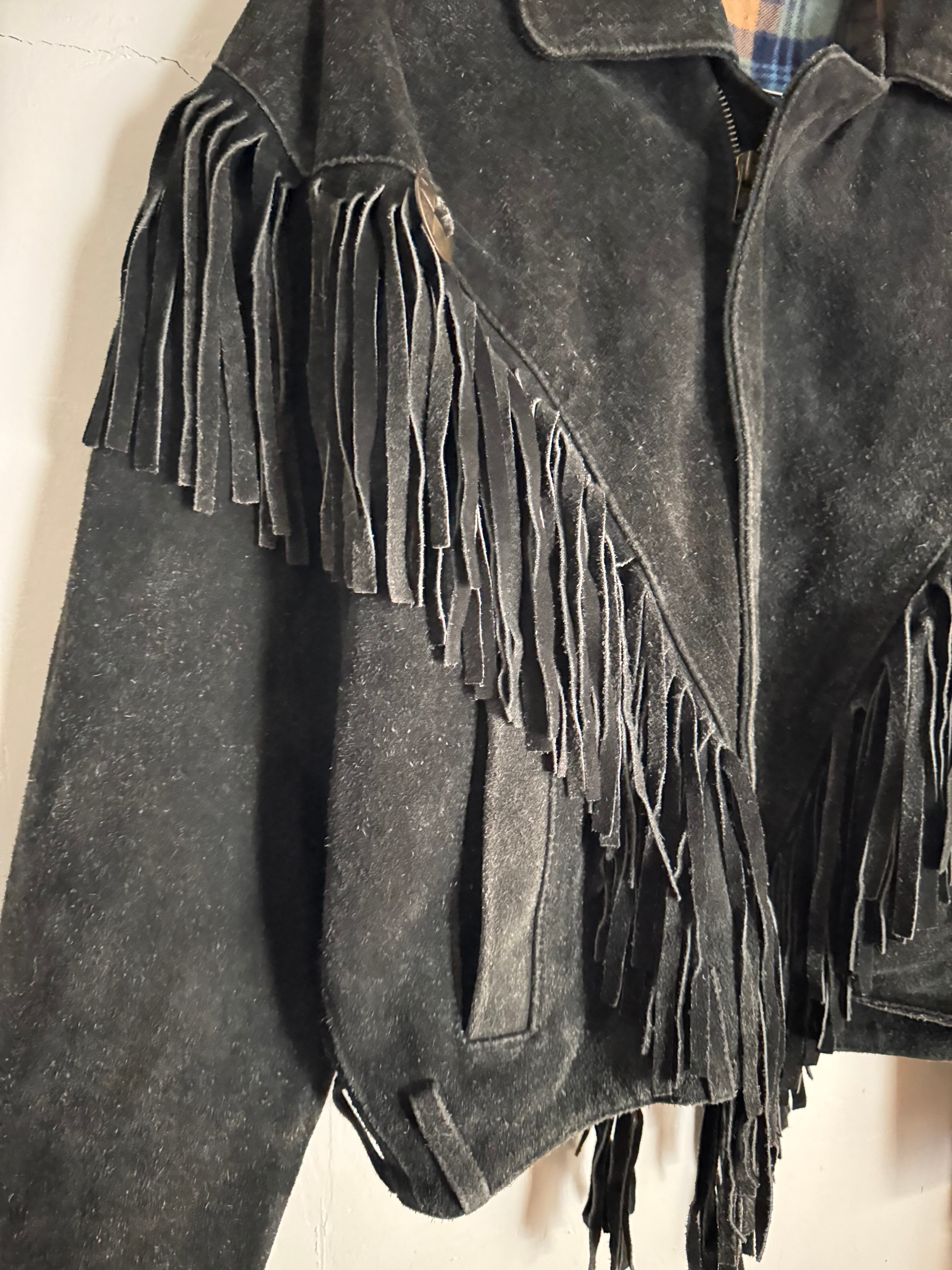 Old Vintage Western Fringe Leather Jacket