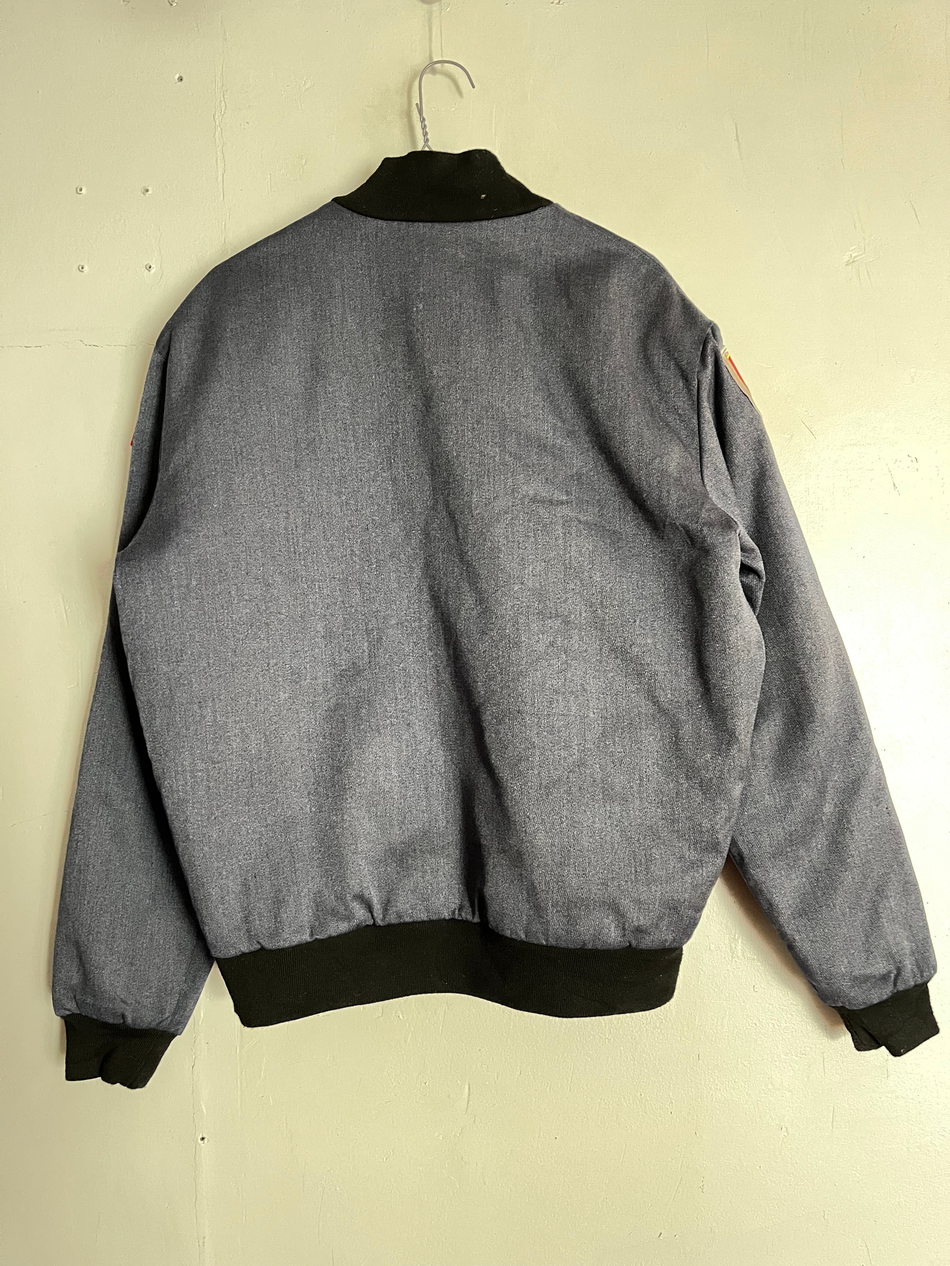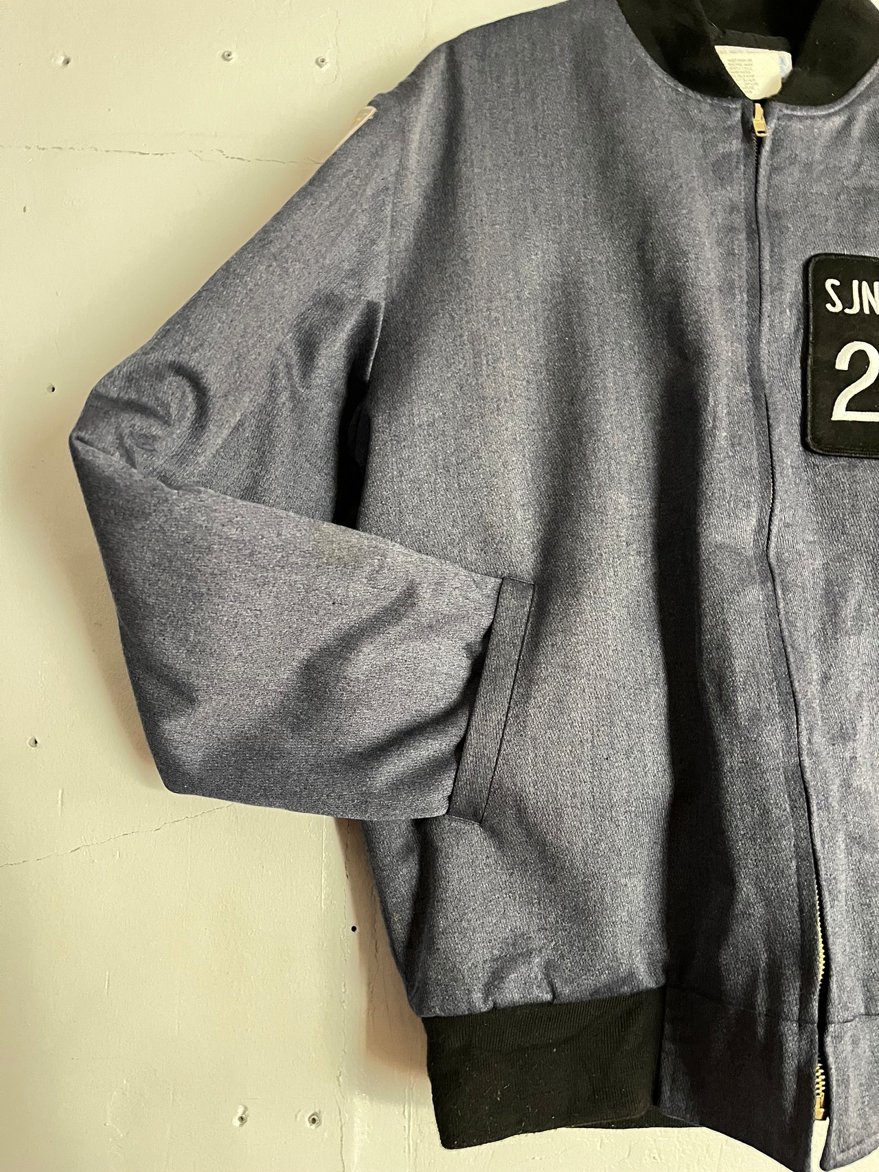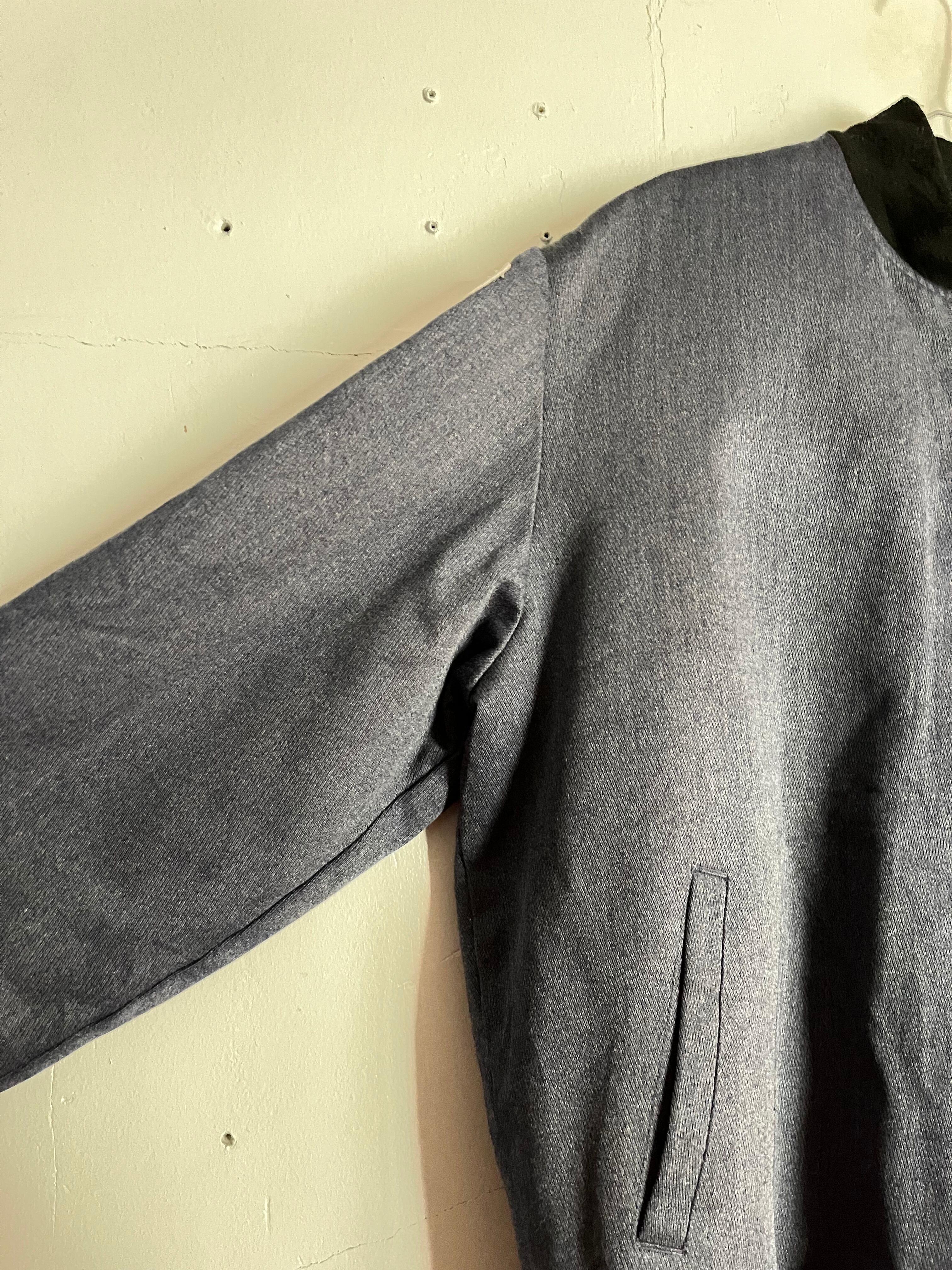 ブルーグレーの落ち着いたカラーリングに、フロントのパッチデザインがアクセントとなったジップジャケット。