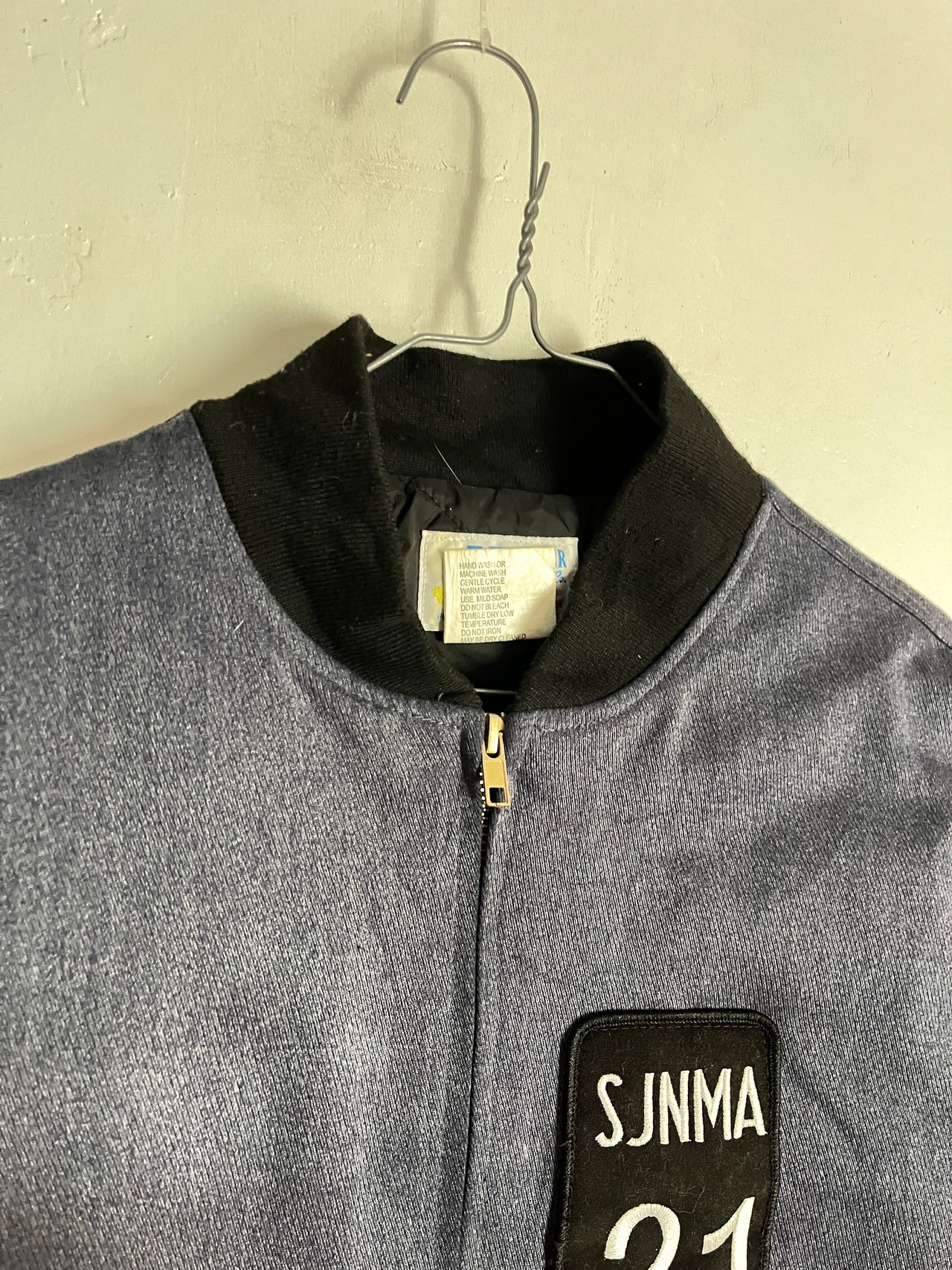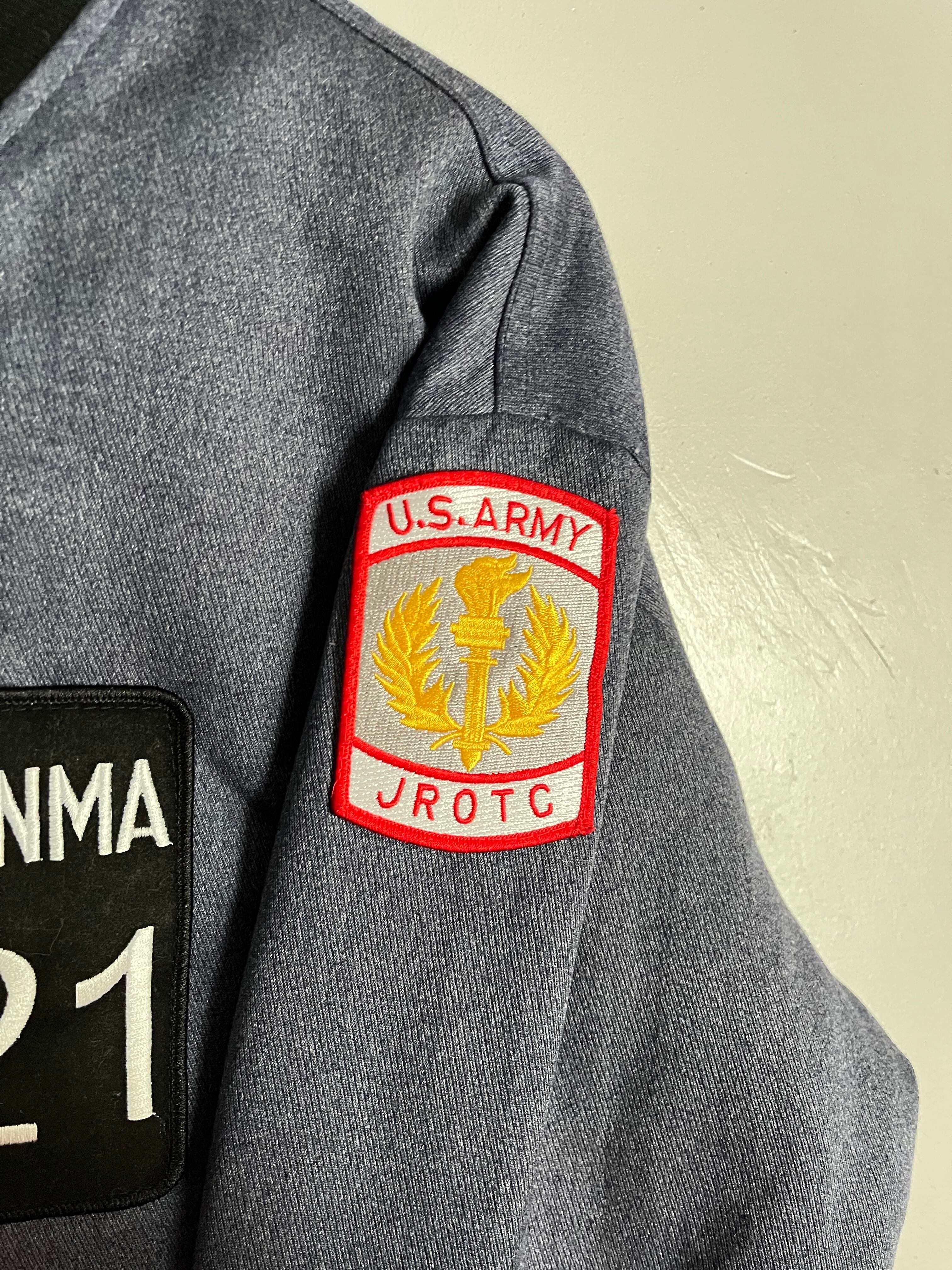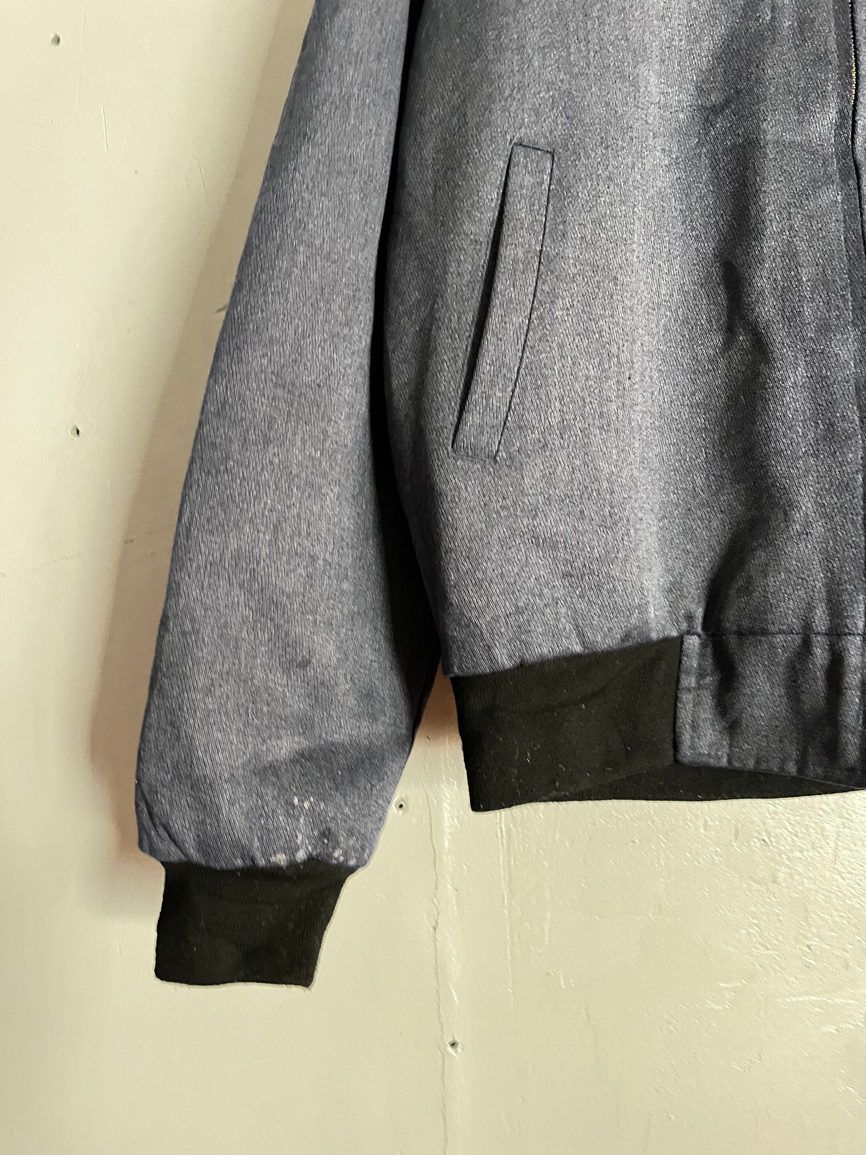 ブルーグレーの落ち着いたカラーリングに、フロントのパッチデザインがアクセントとなったジップジャケット。