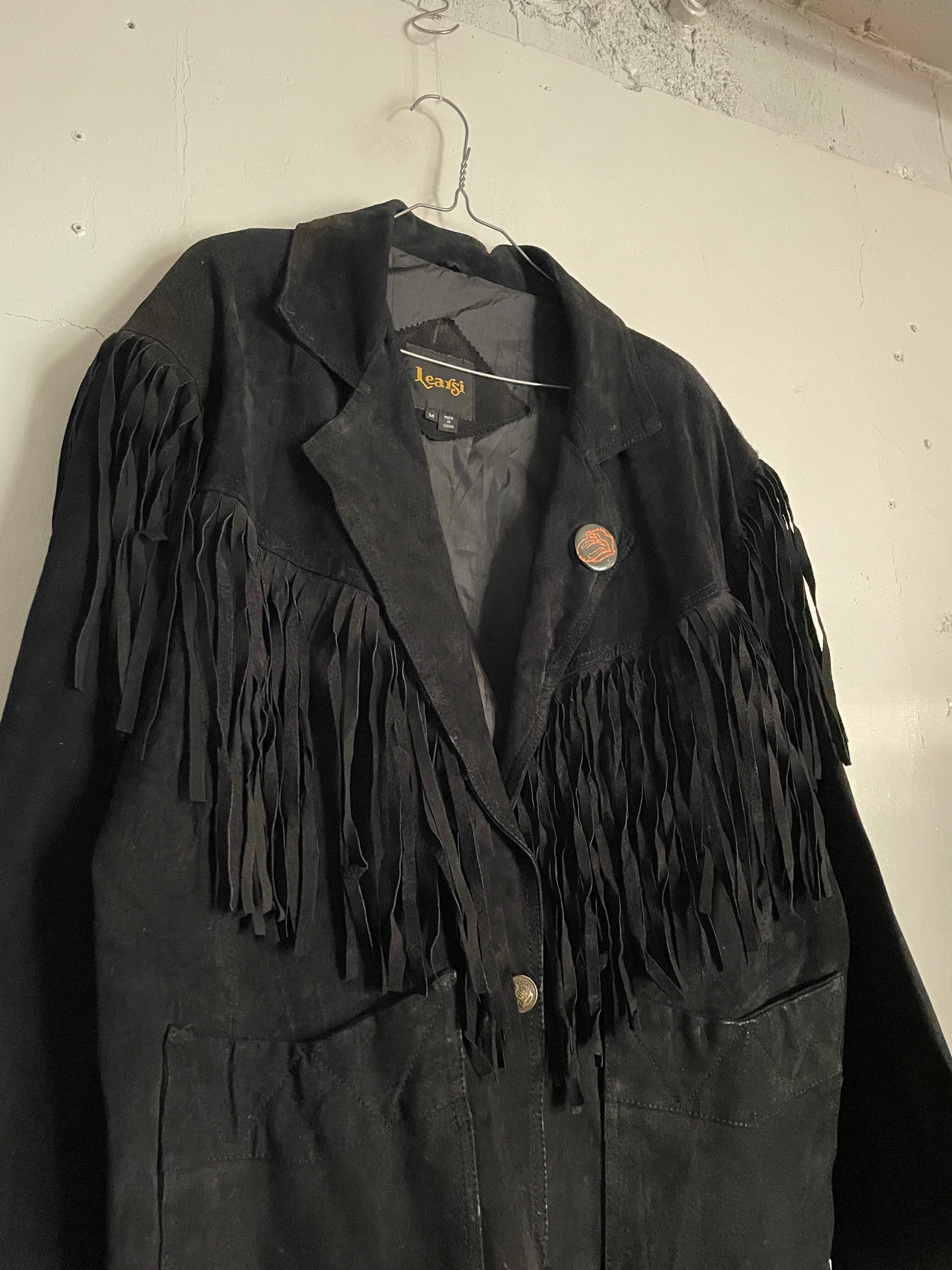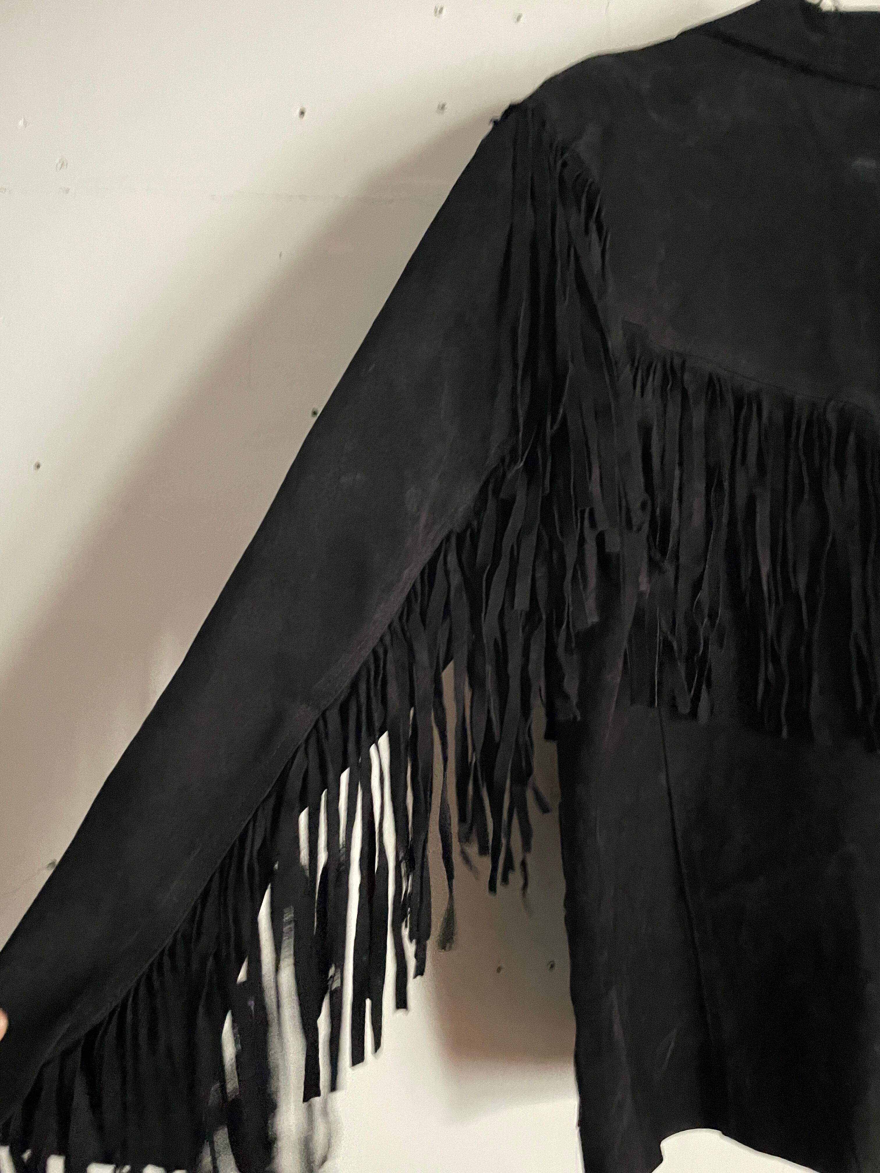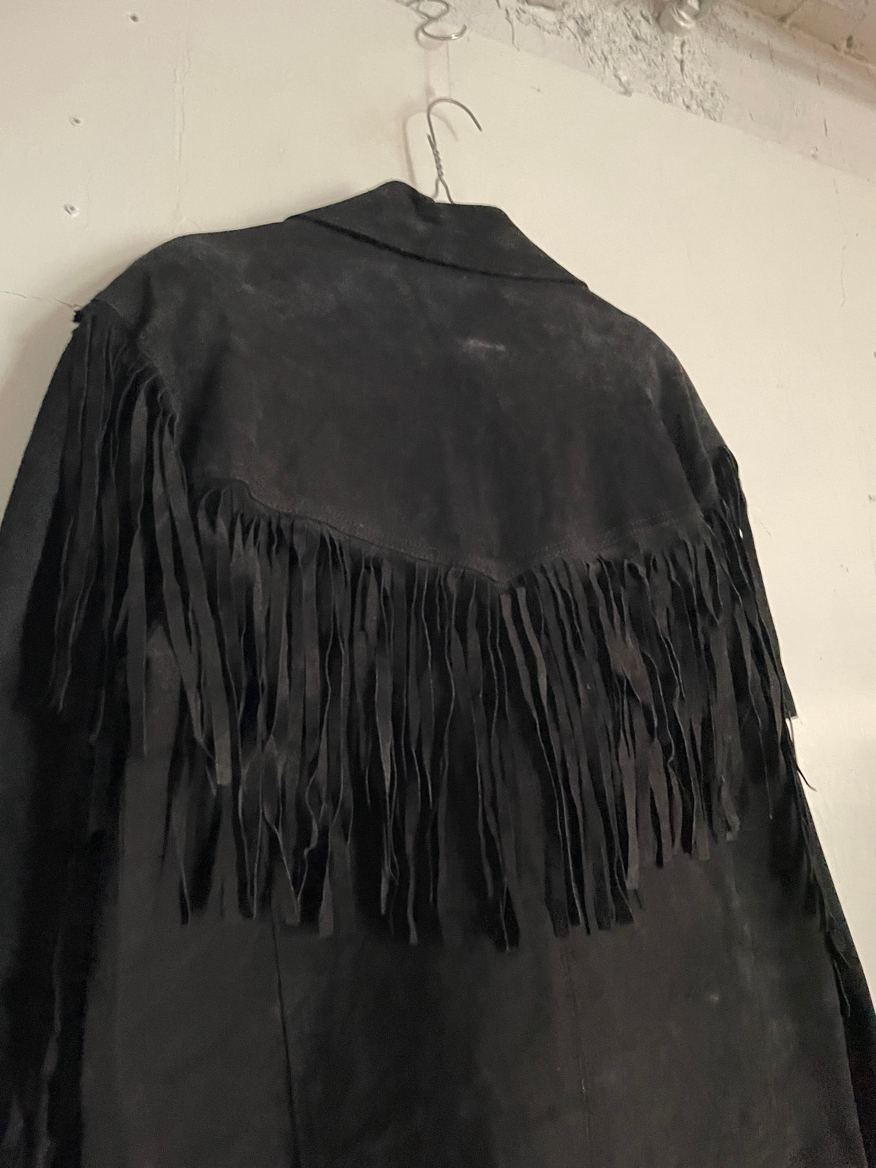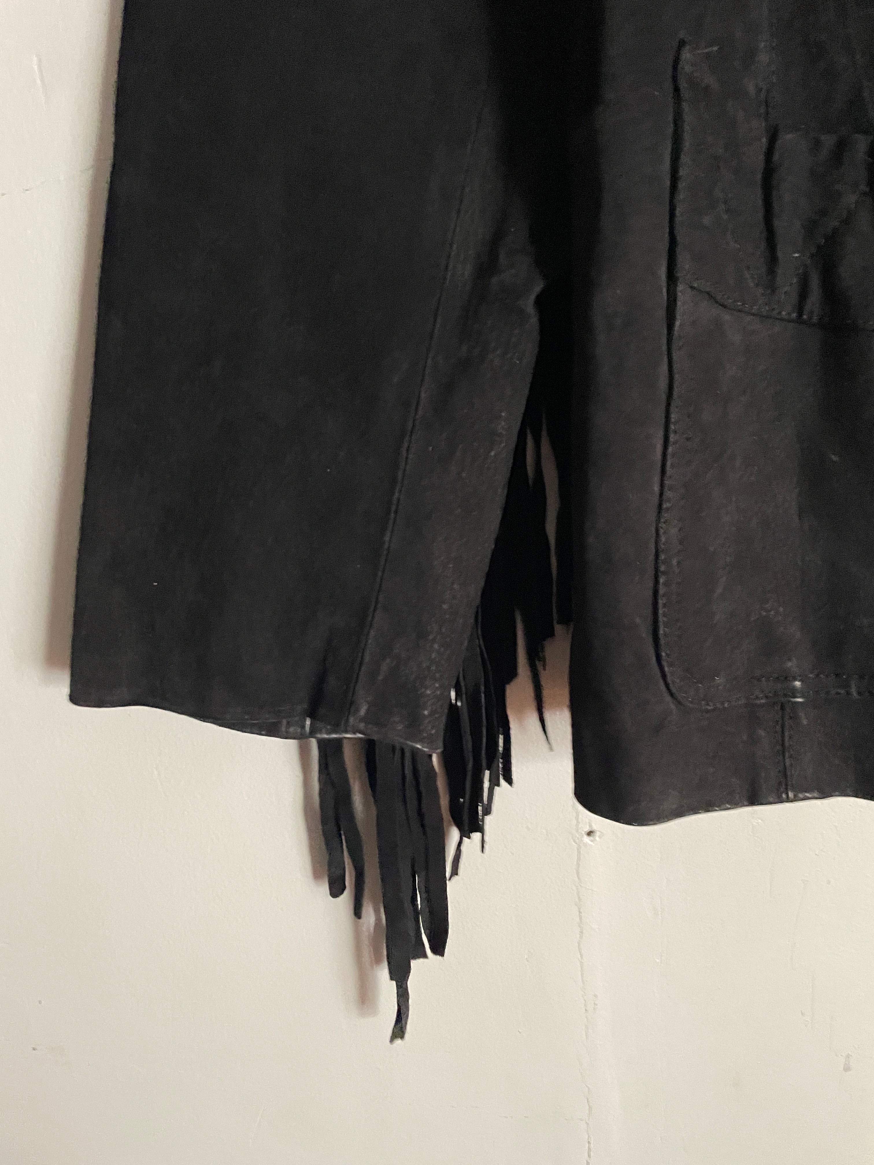 Old Learsi Black Fringe Badge Design Suede Leather Jacket