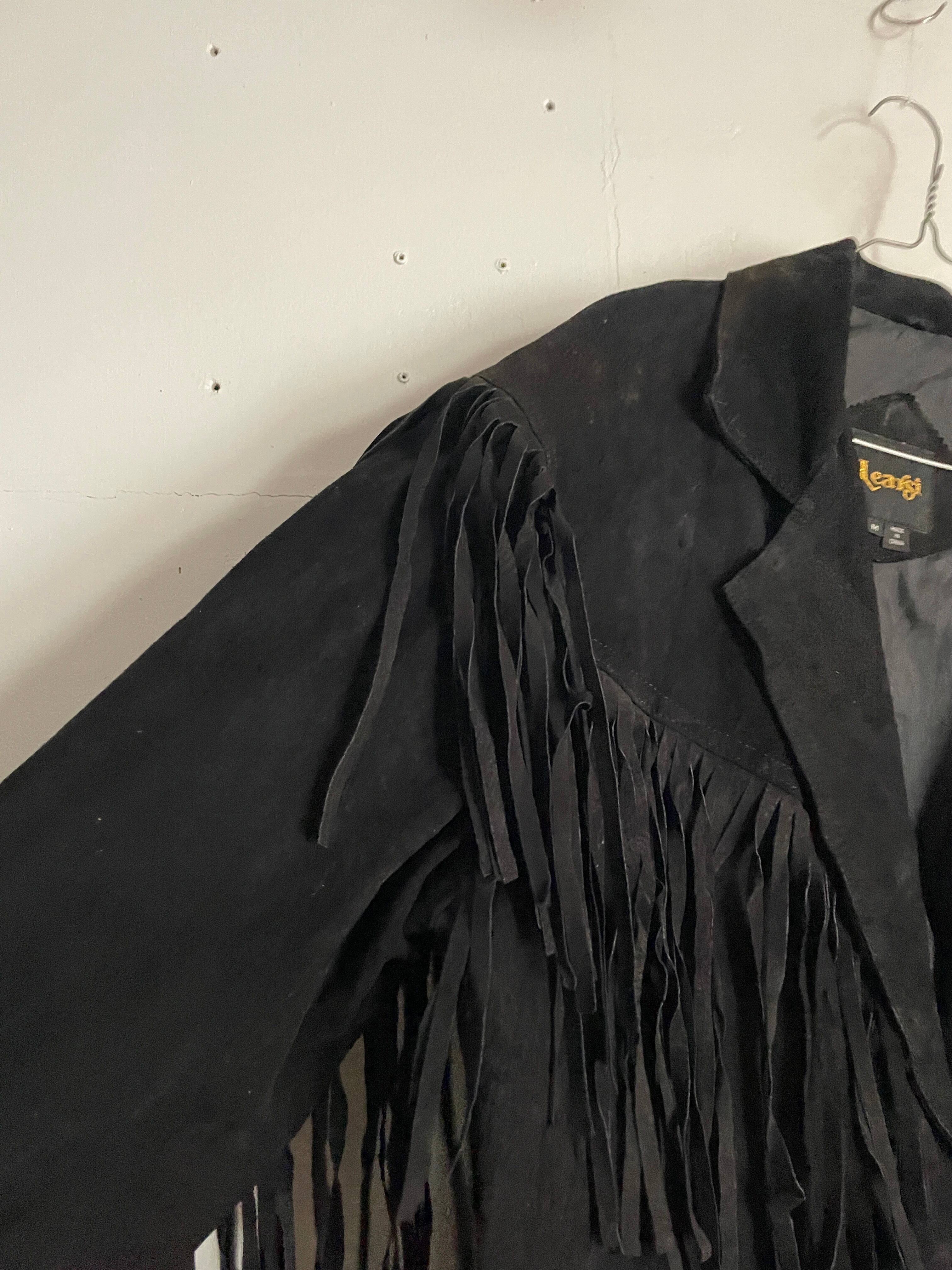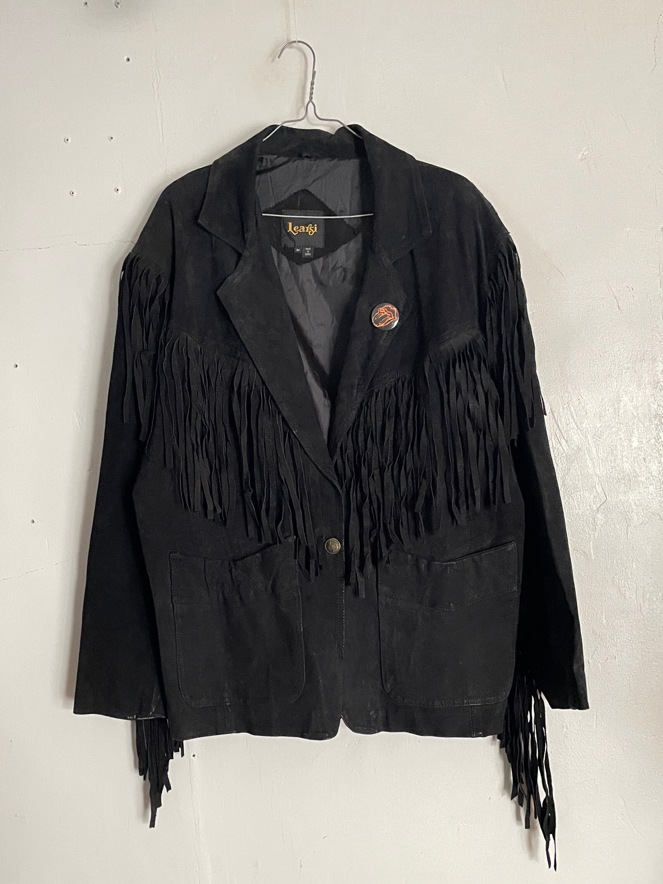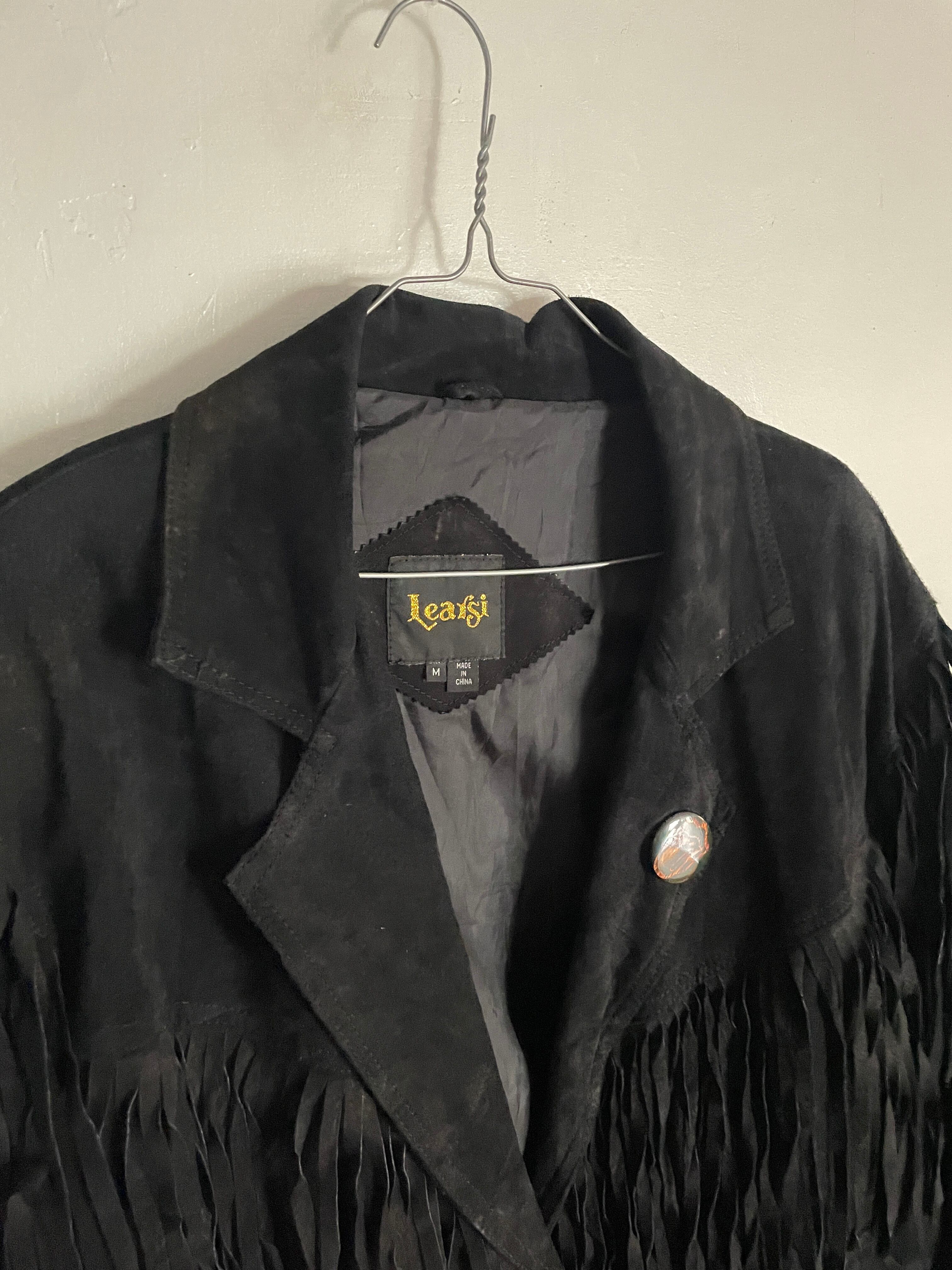 Old Learsi Black Fringe Badge Design Suede Leather Jacket