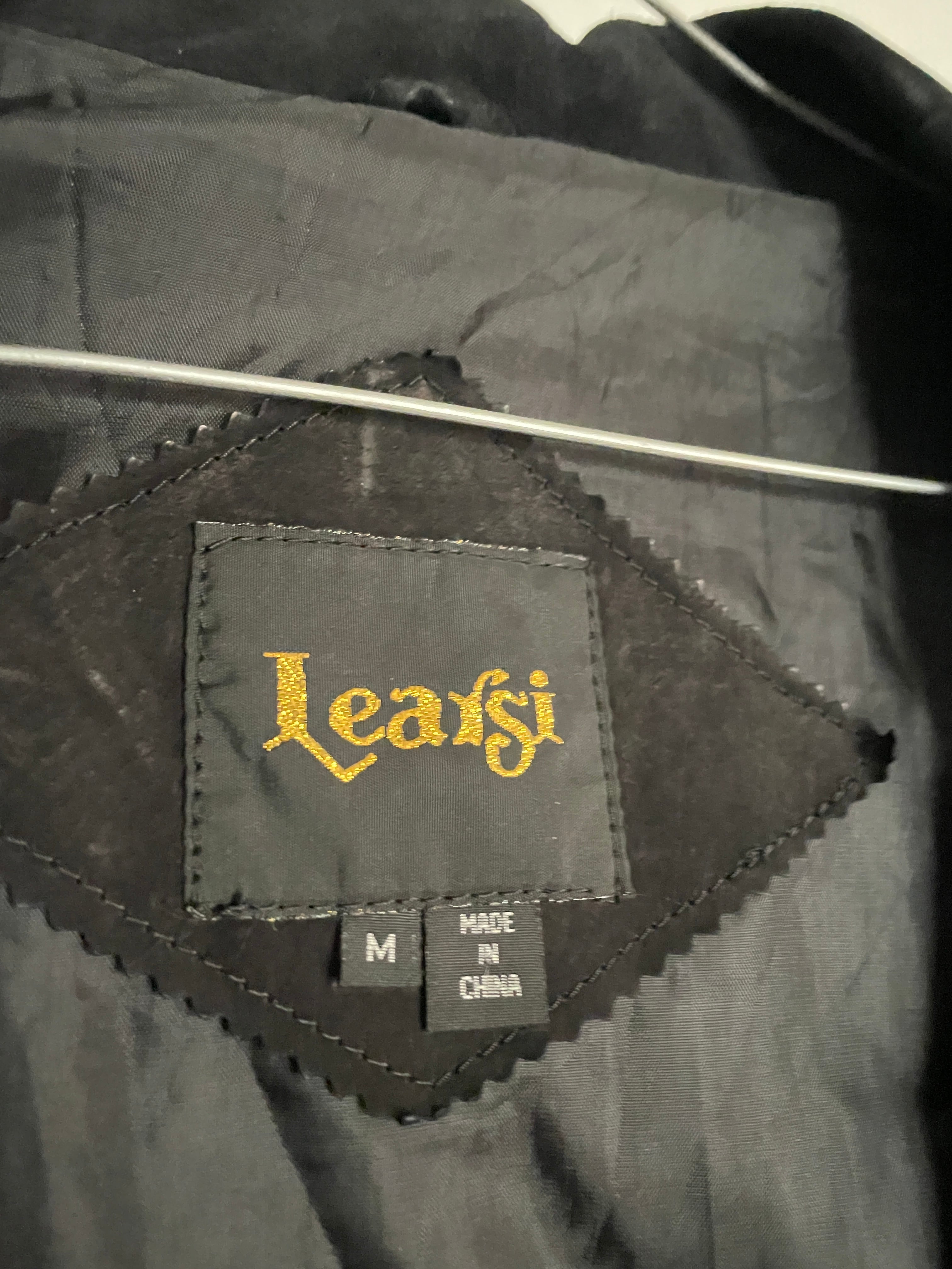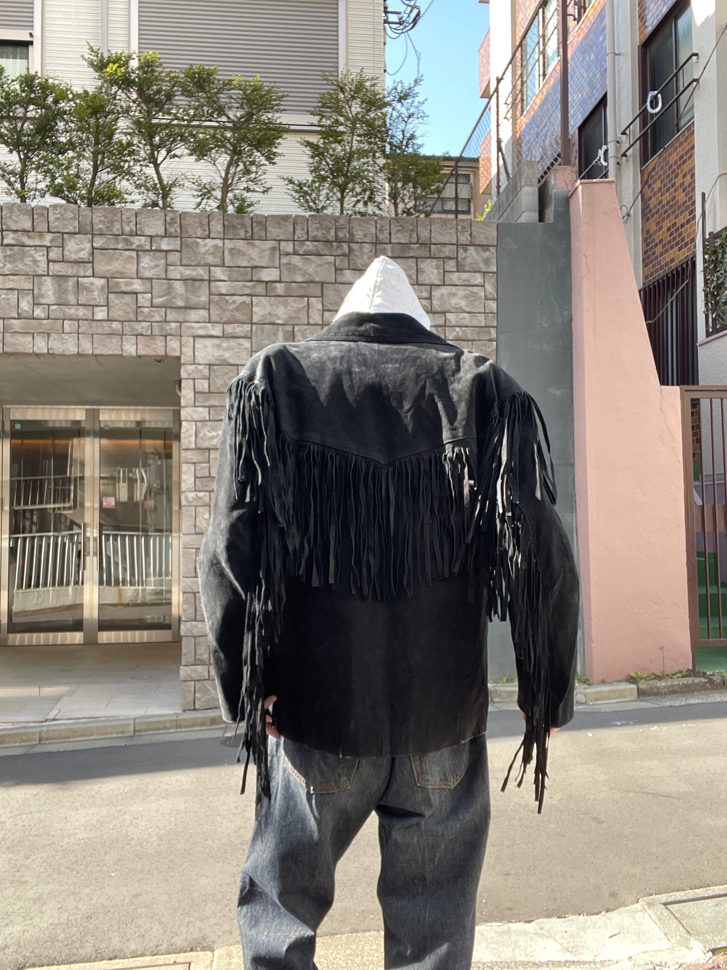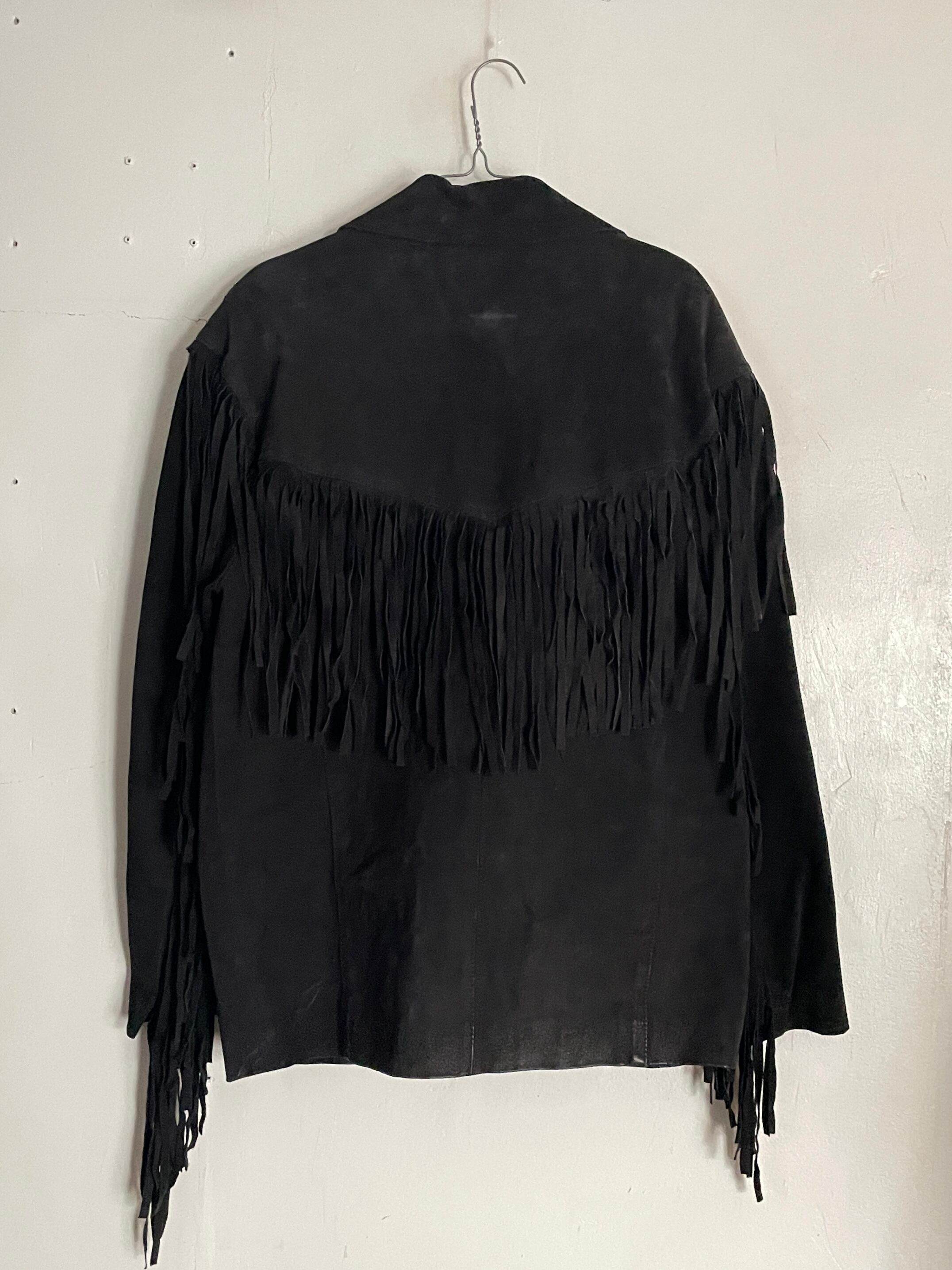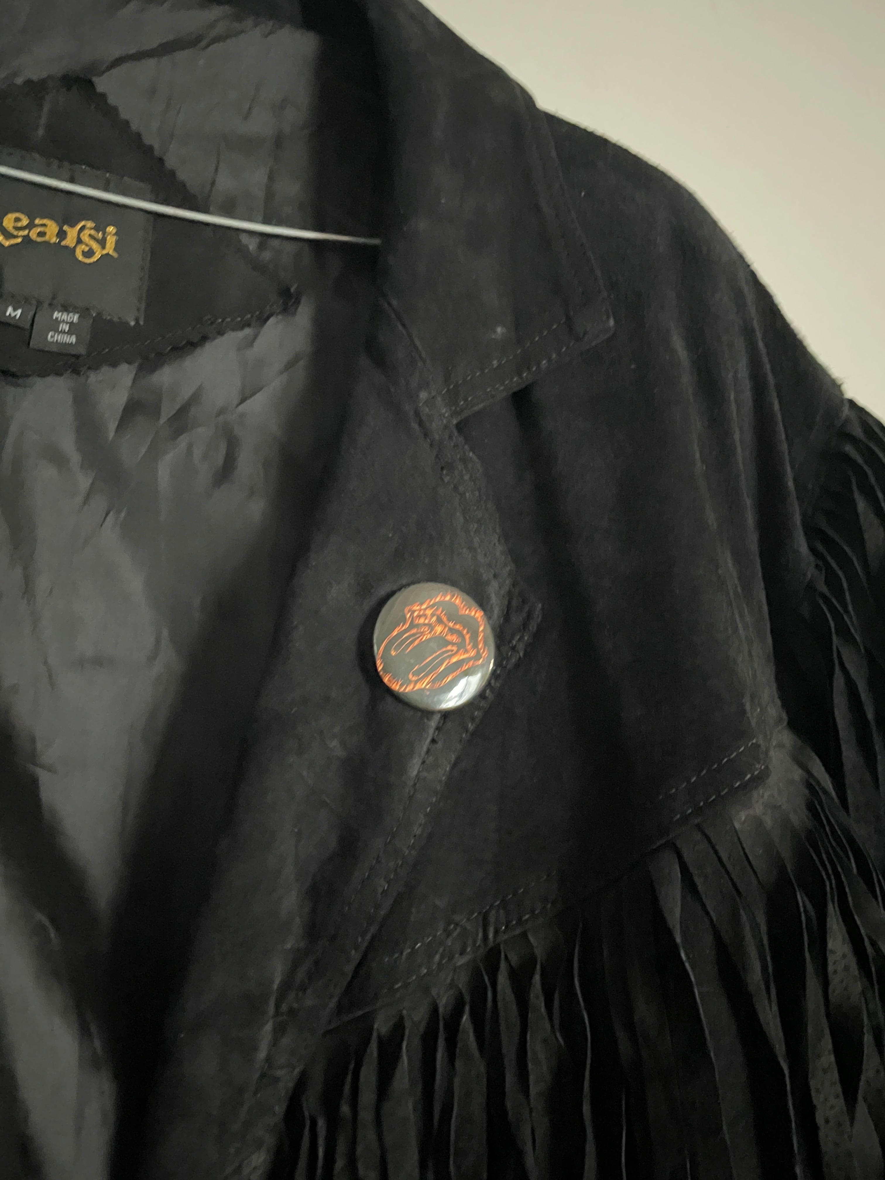 Old Learsi Black Fringe Badge Design Suede Leather Jacket