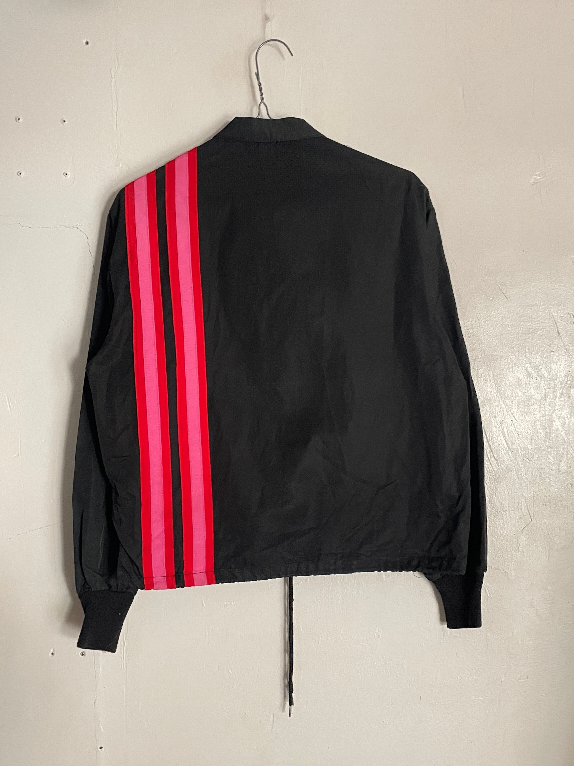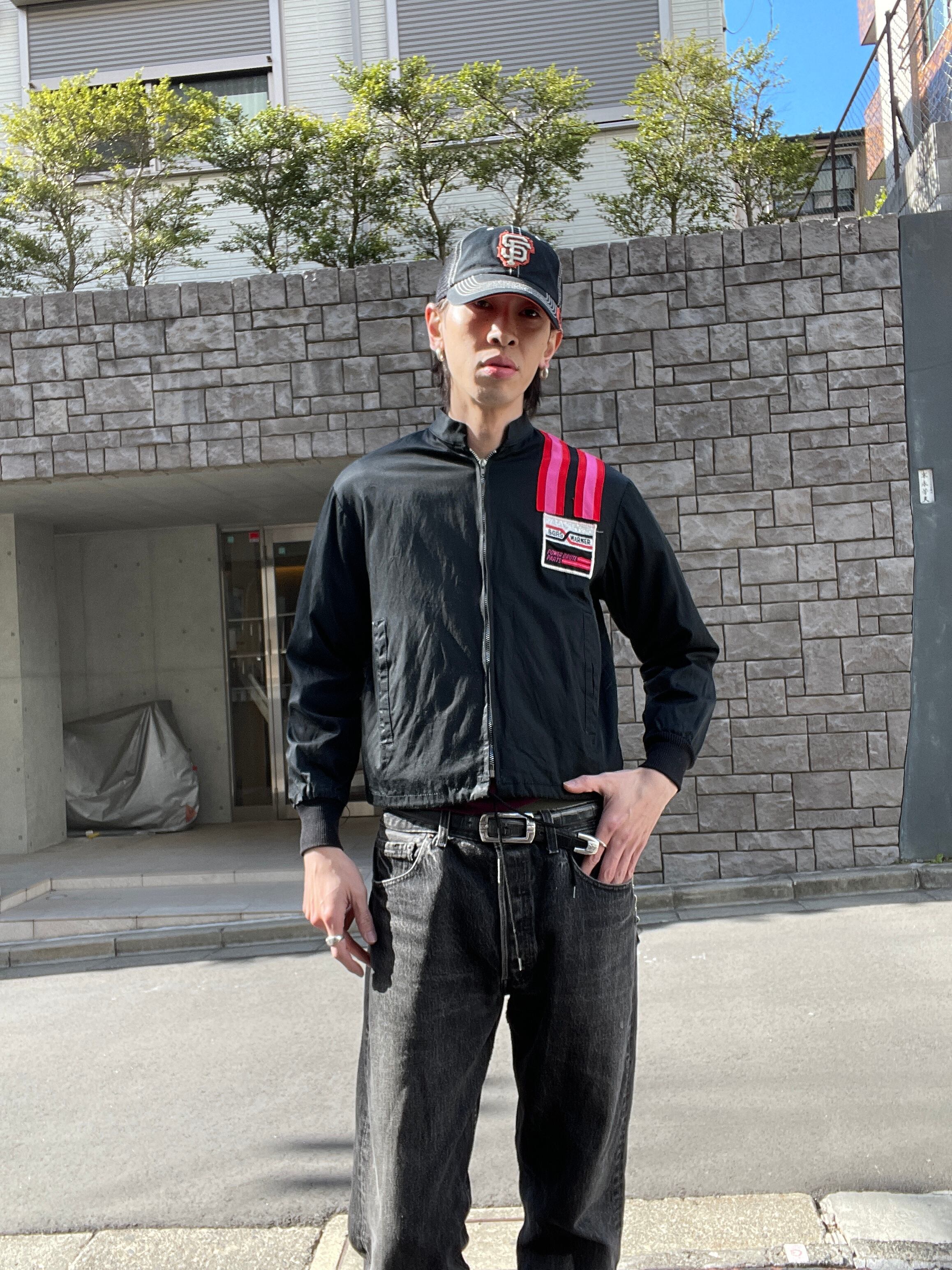 ブラックボディに、キラッとした”ボーグワーナー”のワッペンと。レッドとピンクのラインデザインが施された、スウィングスターのレーシングジャケット。フロント部分からバックにかけて、ラインパッチデザイン。配色がグッドです。サラッとした軽い質感で、今の時期にはインナーとしても活躍してくれそうです。短丈めでタイトめな今っぽいシルエット。