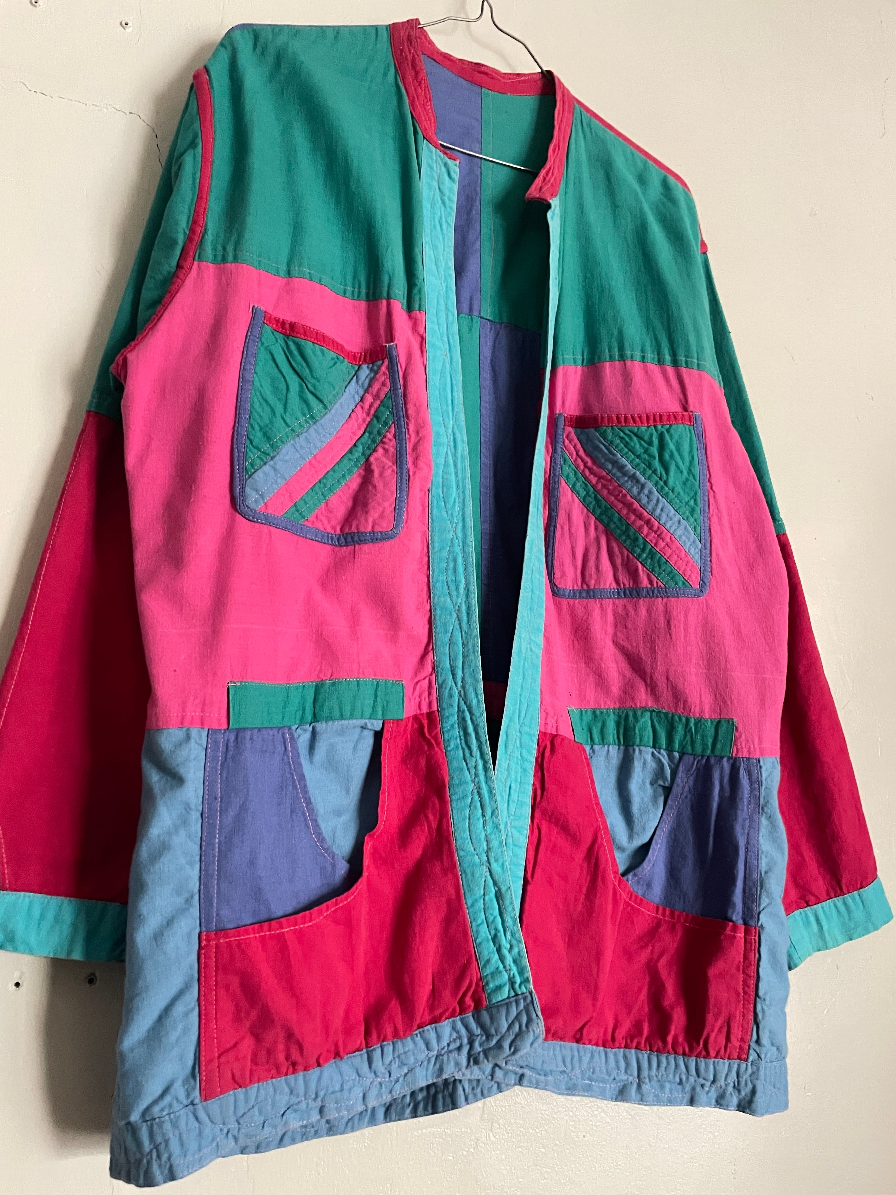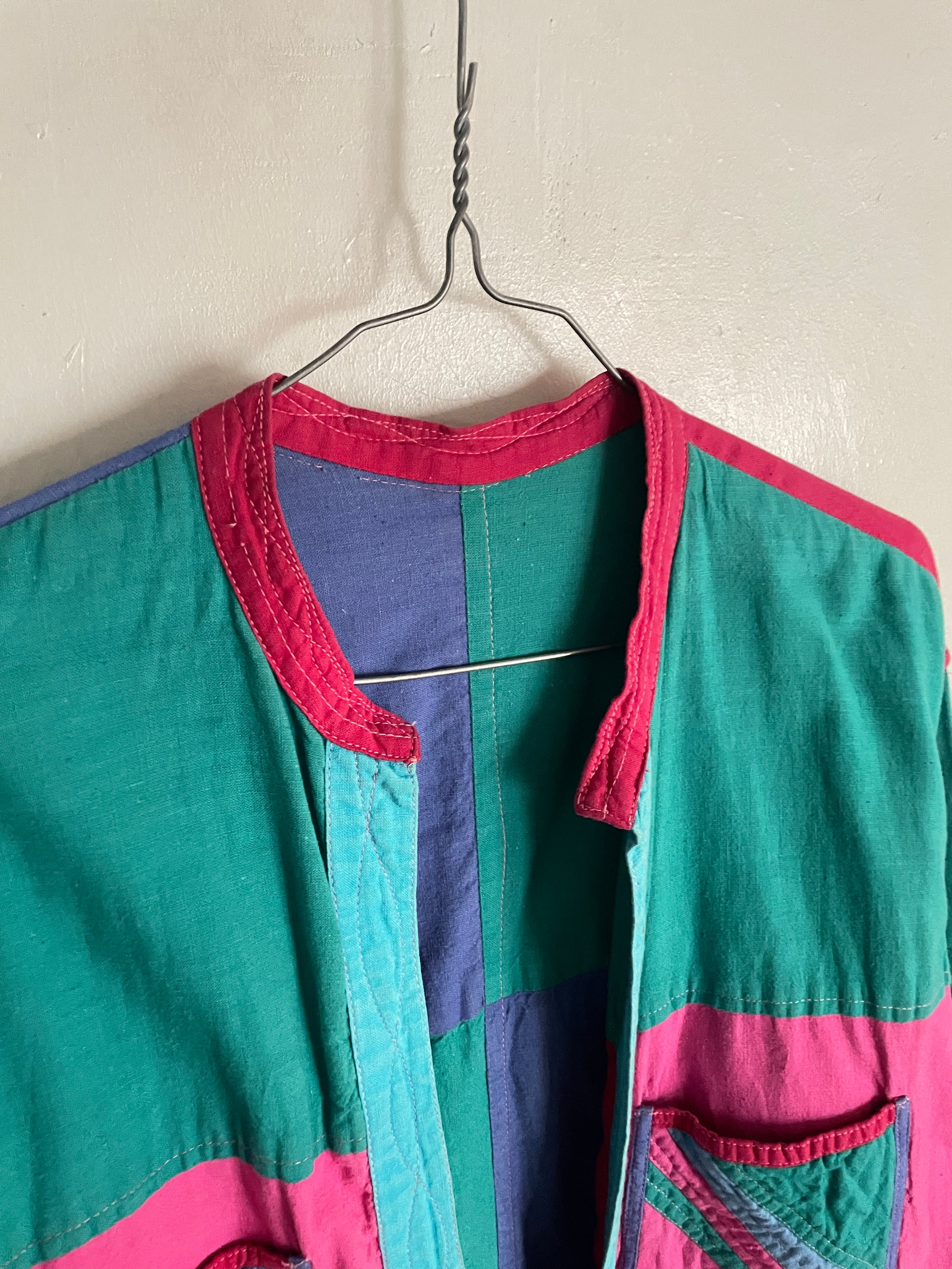 Old Colorful Patchwork Design Reversible Haori Shirt Jacket