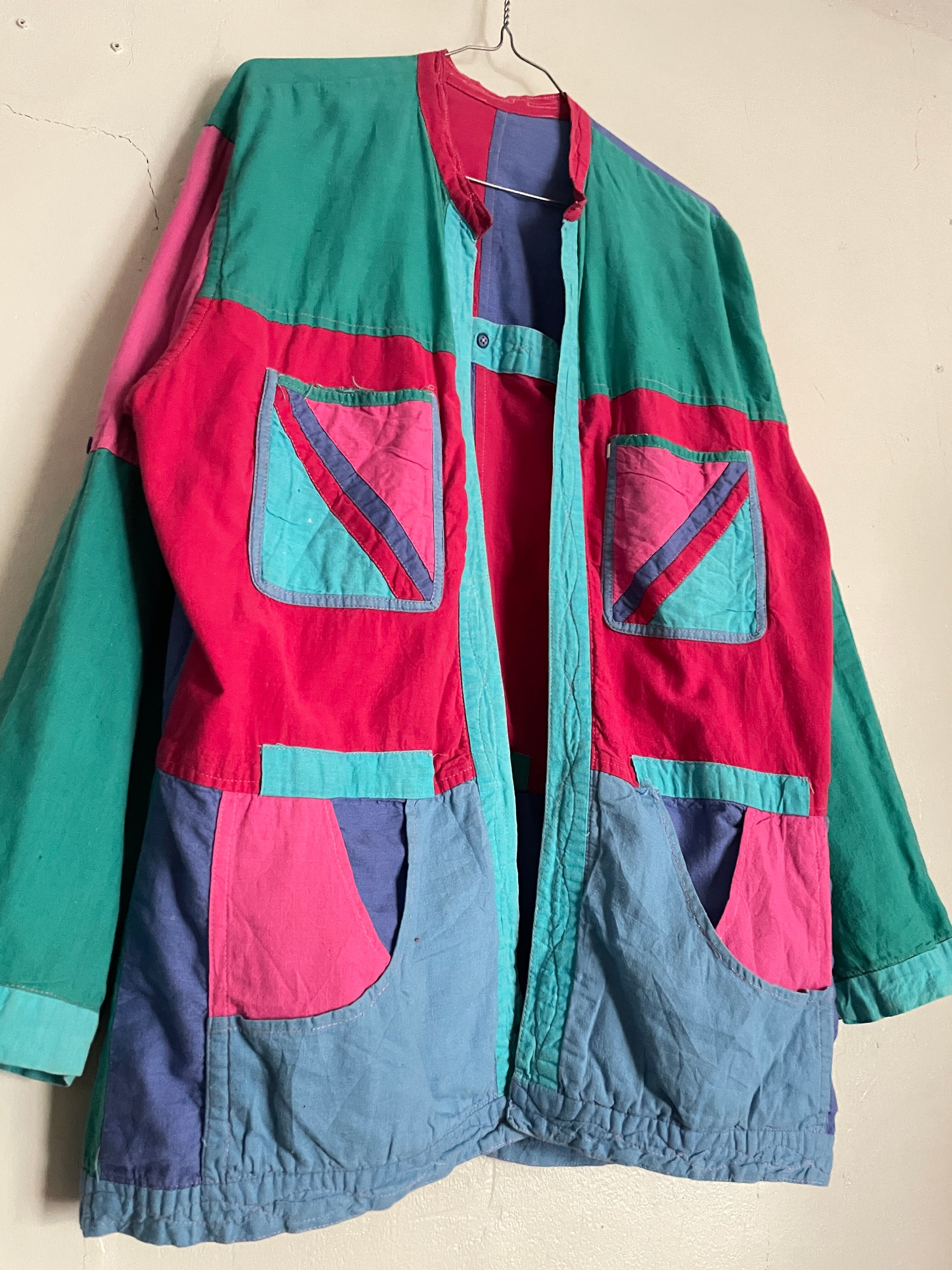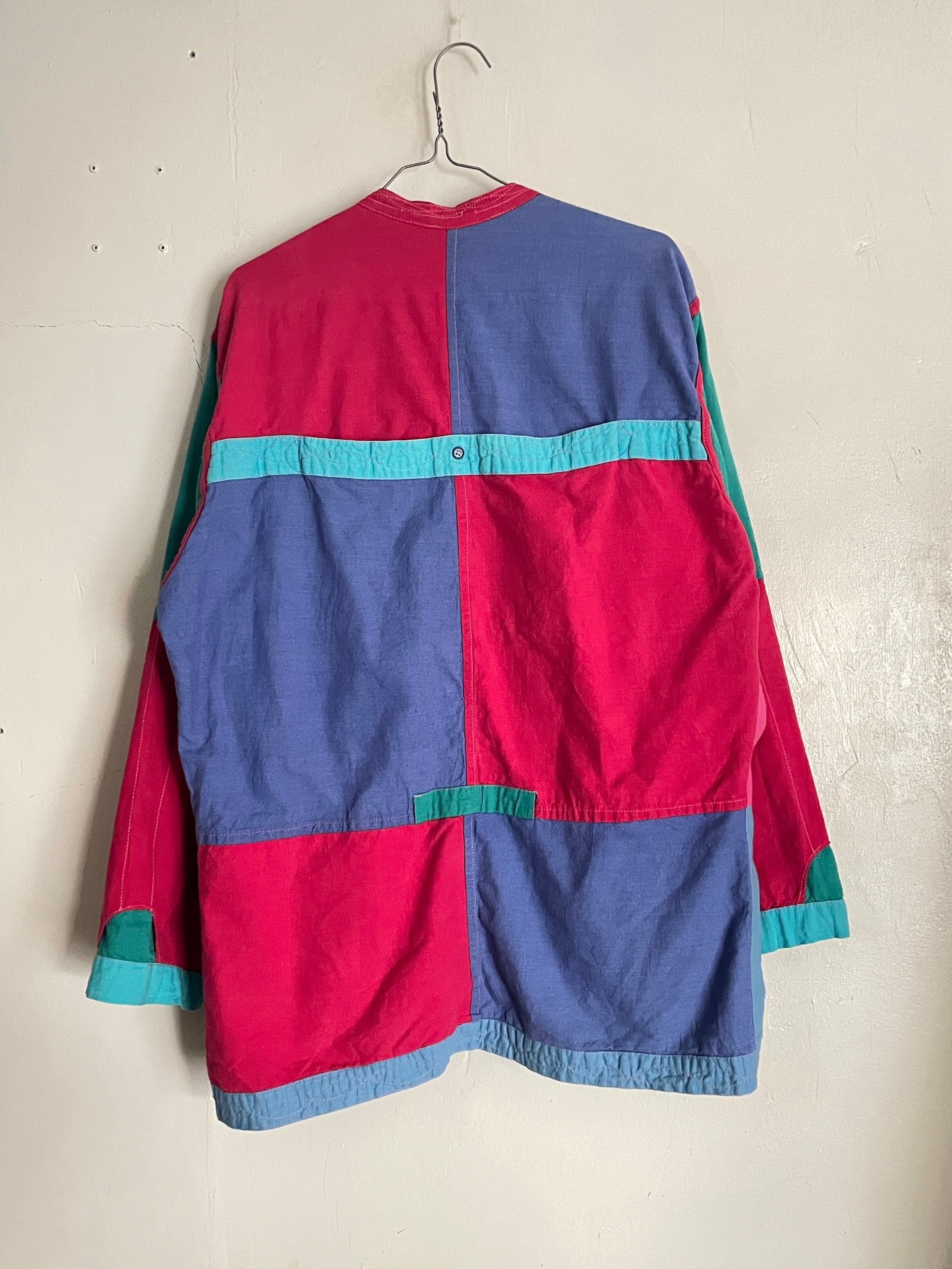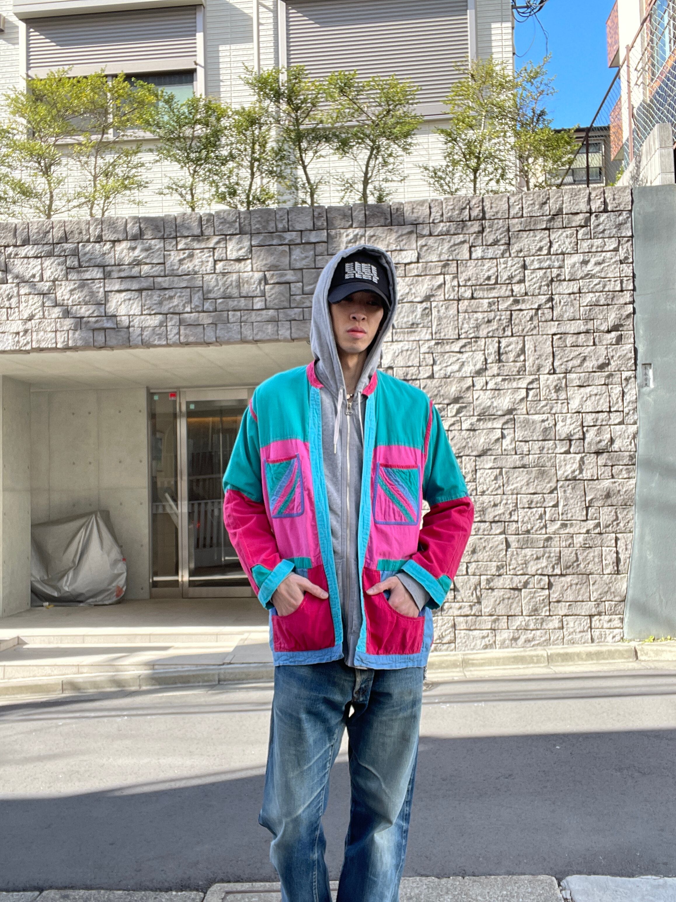 カラフルなパッチワークデザインがお洒落な、リバーシブルシャツジャケットボタンなどが無い羽織りタイプ。ハンドメイド感の感じられる可愛すぎるディテール。これだけの色が使われていてもしっかりと統一感が感じられます。気分によって、表裏使い分けられるお得感。これでポケットもかなり多めなのも嬉しいポイントです。ゆったりとしたサイズ感なので、ラフに着られて、今の時期にはインナーの差し色としても活躍してくれそうです。