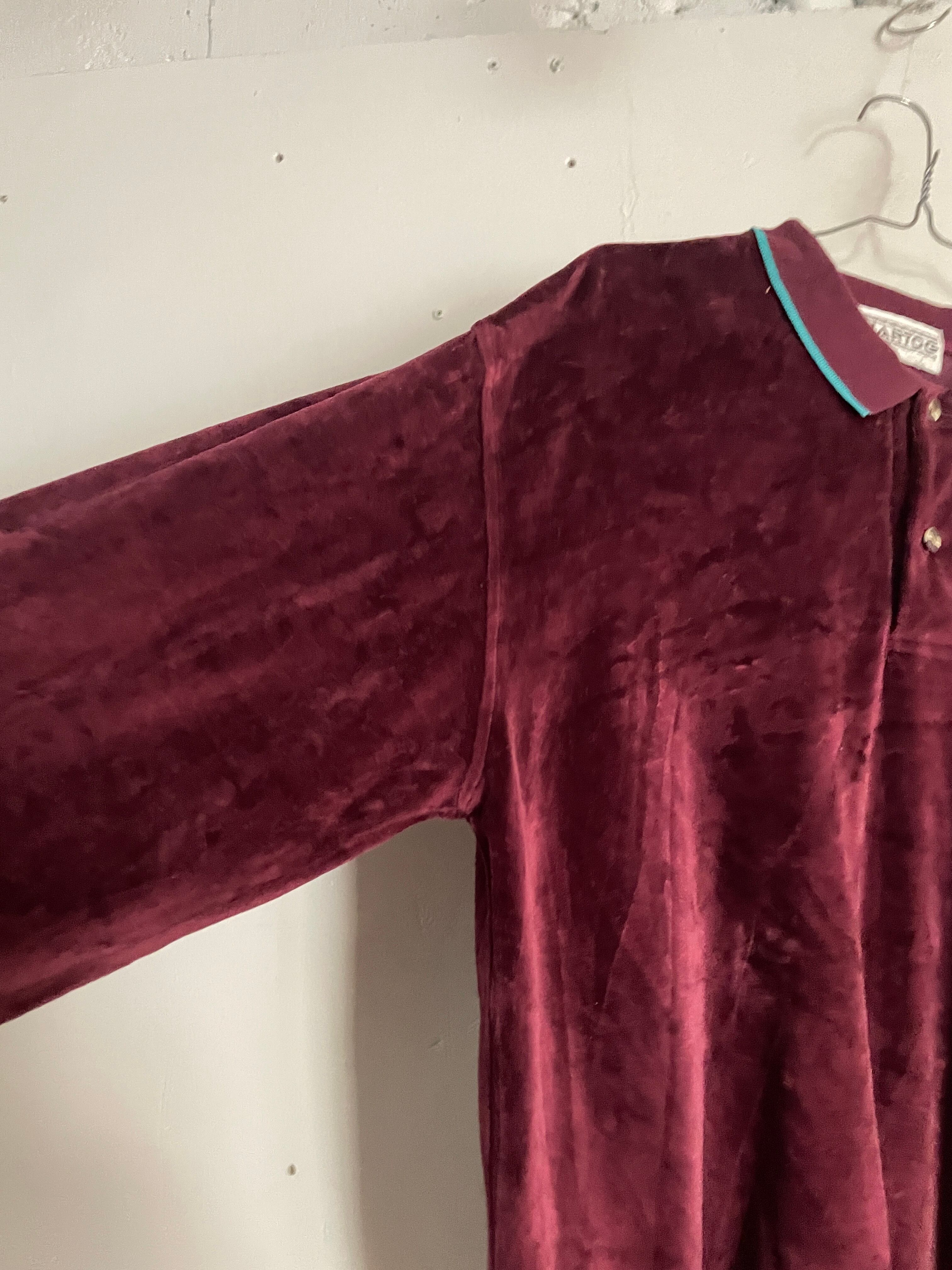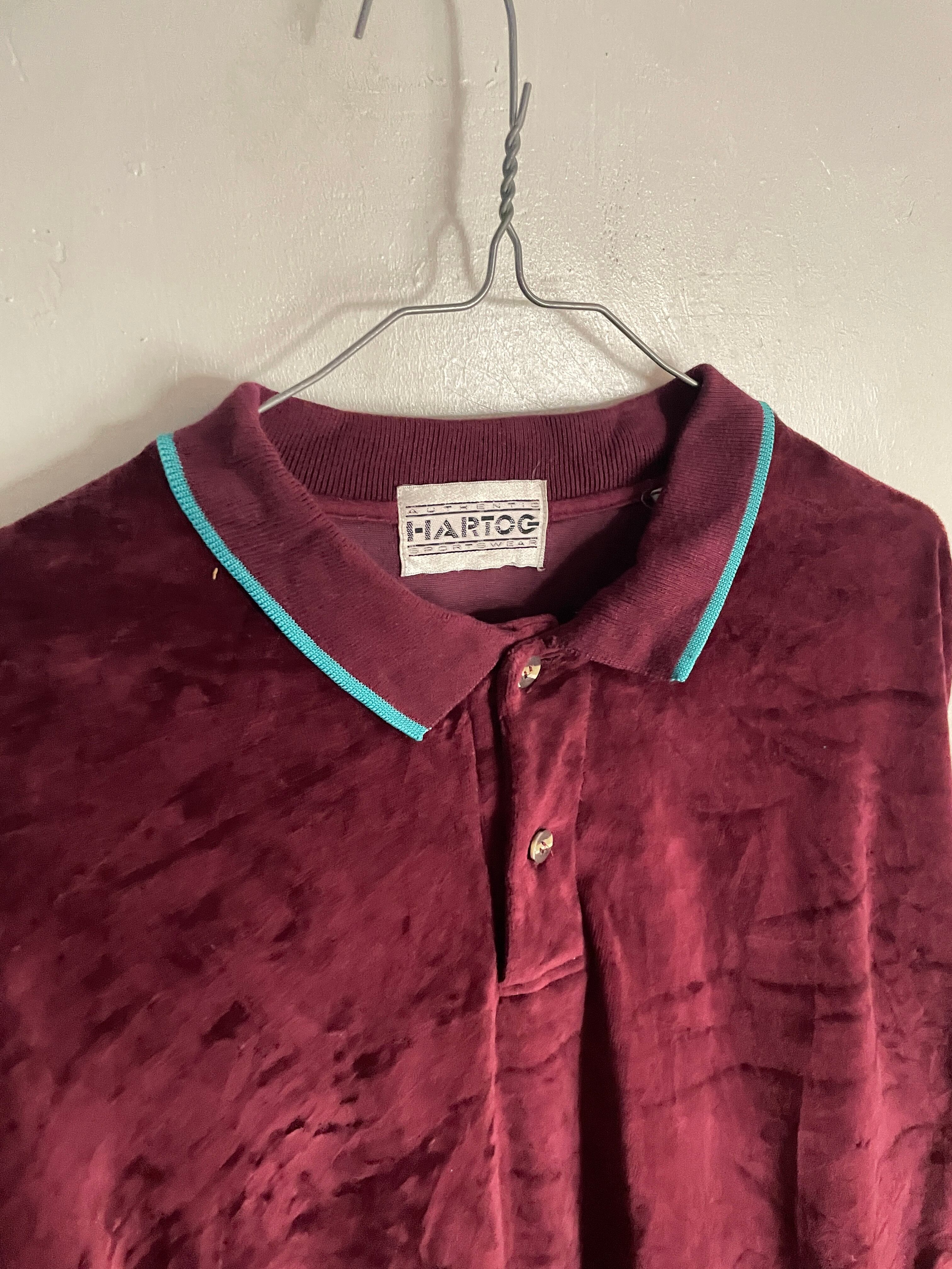 Old HARTOG Wine Red Velor Polo Shirt