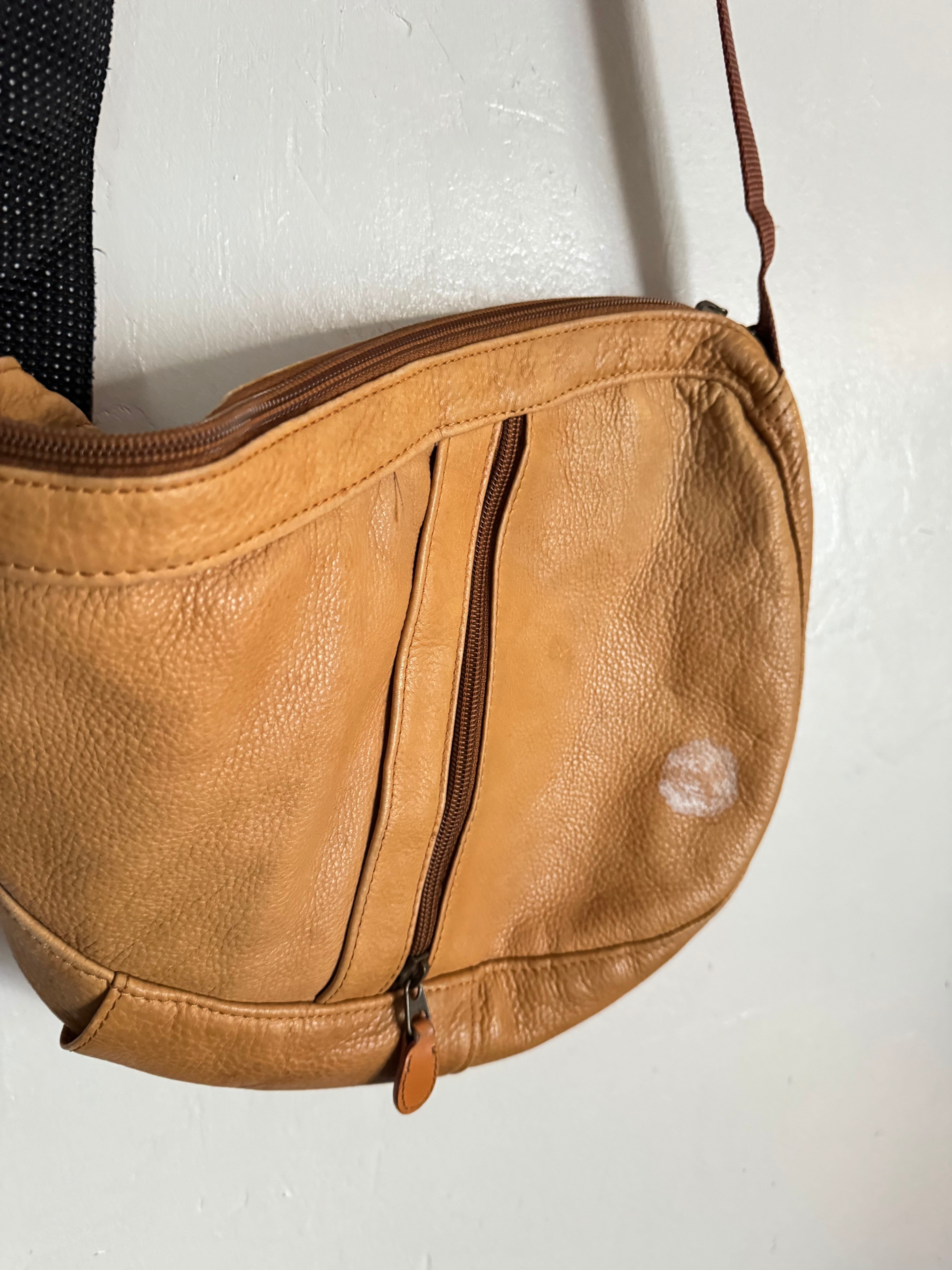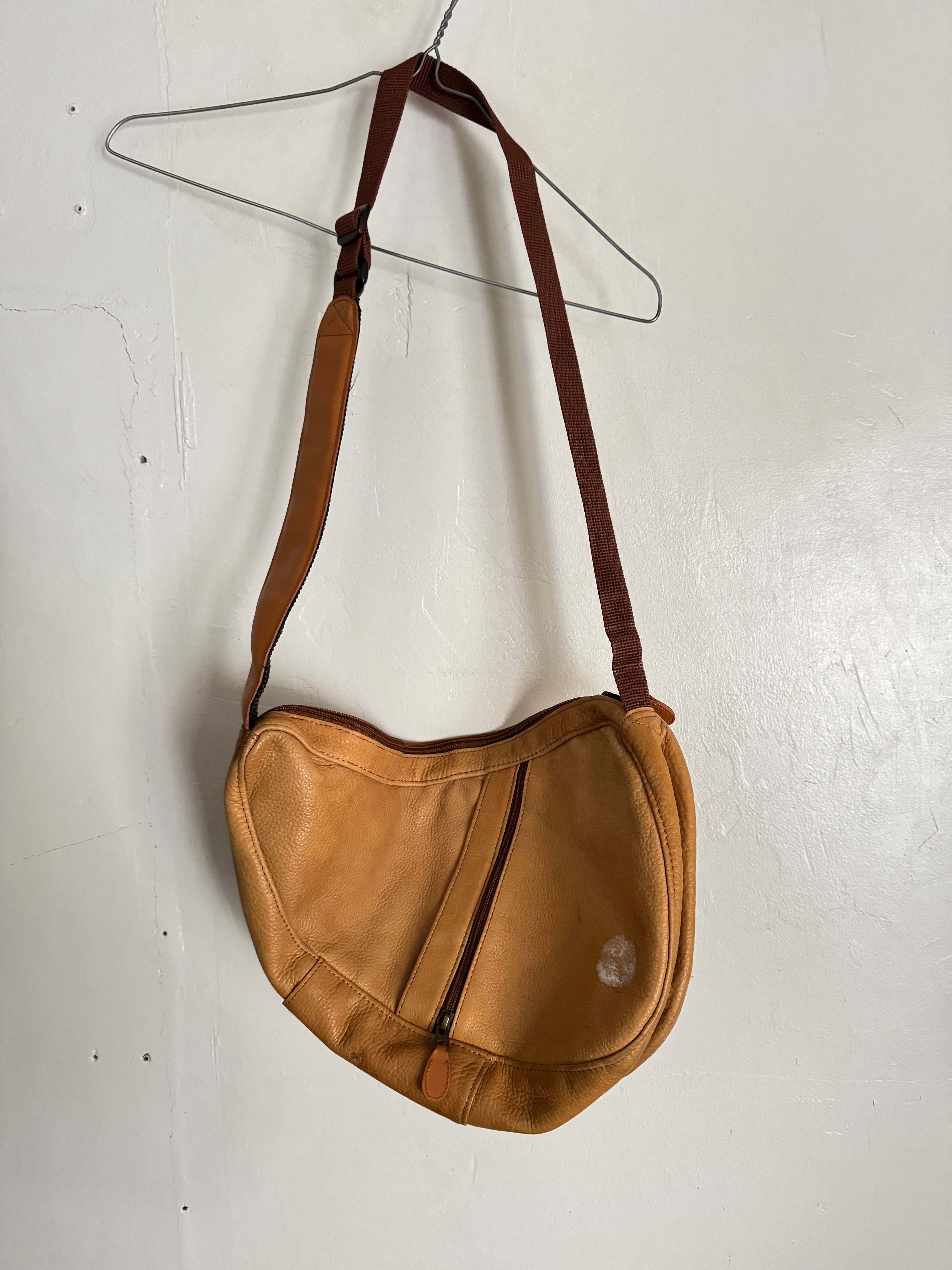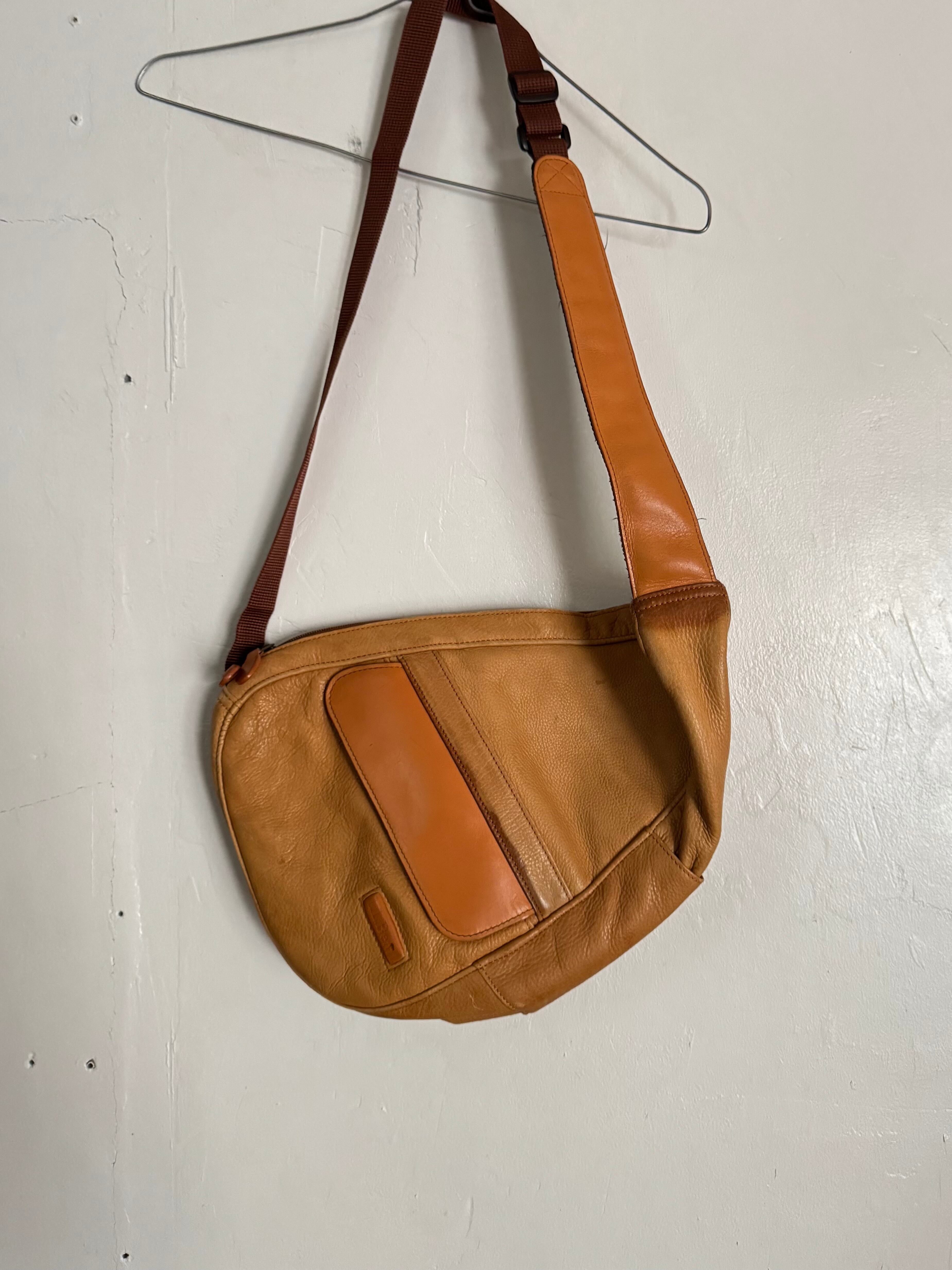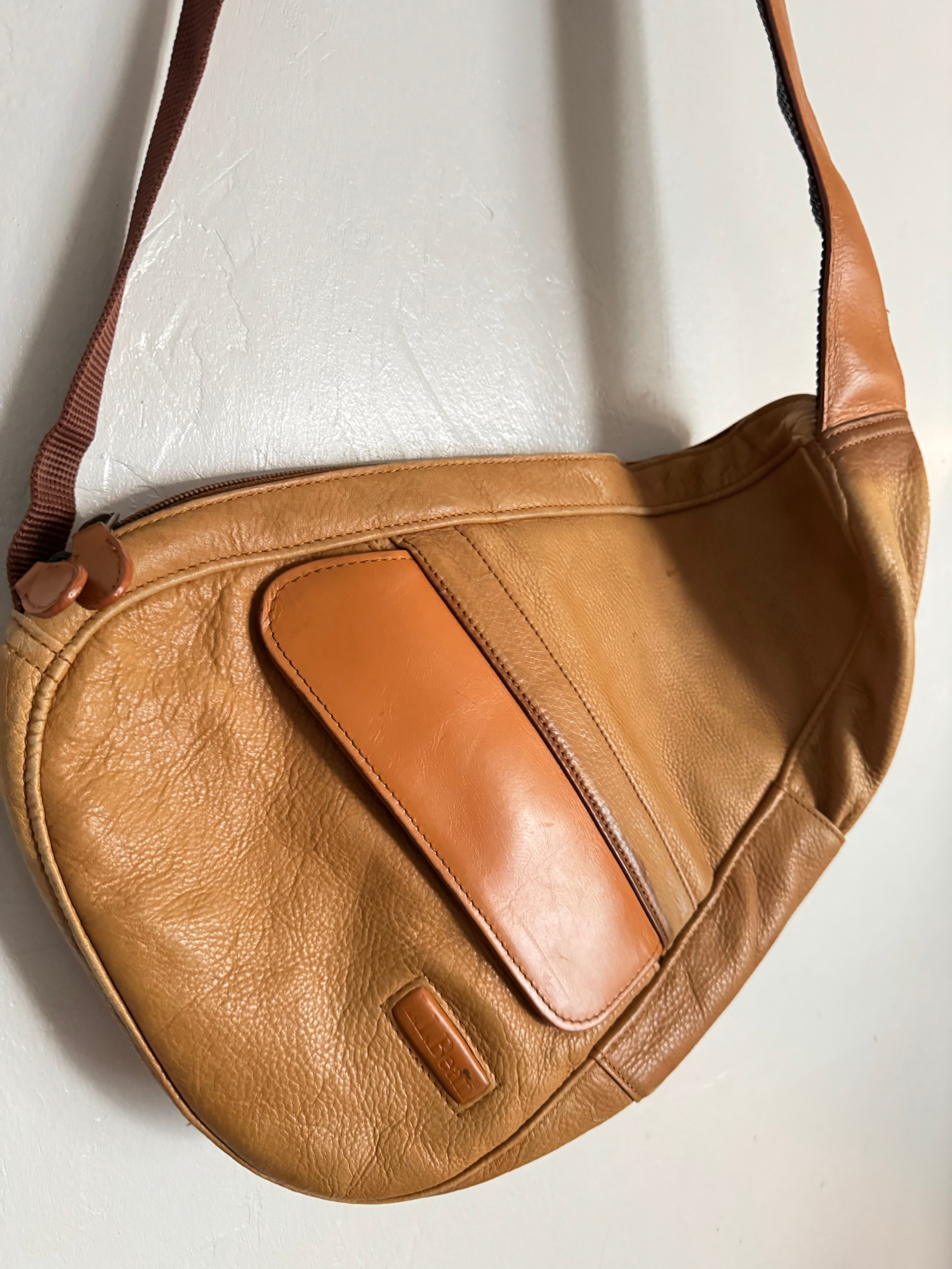 柔らかく馴染んだレザーを使用したヴィンテージショルダーバッグ。ナチュラルなブラウン系の色味と、切り替えデザインが程良いアクセントになっています。使い込まれた革ならではのシボ感と風合いが魅力的で、コーディネイトに自然な深みをプラス。デイリーに使いやすいサイズ感で、スタイルを選ばず取り入れられる一点です。