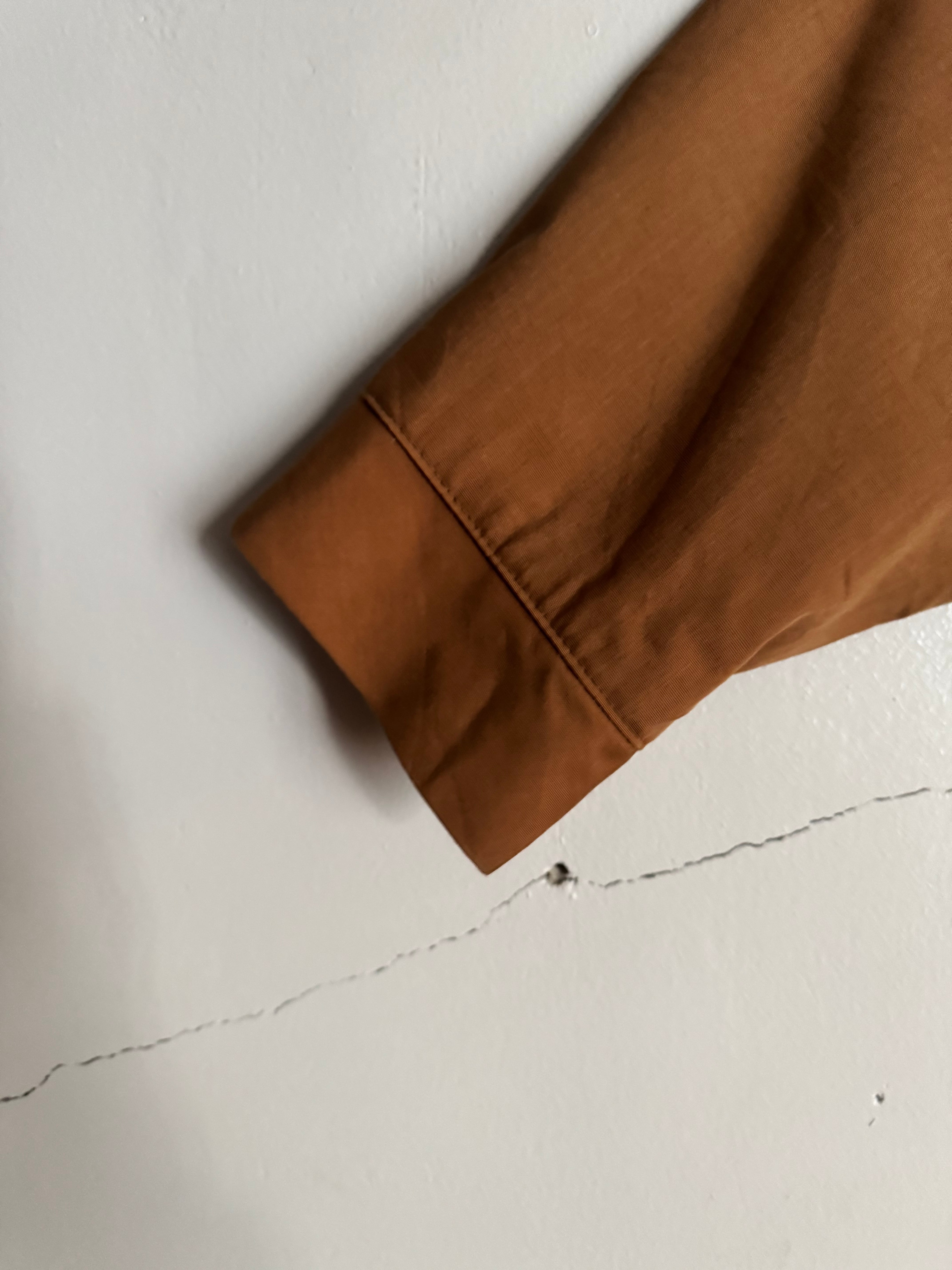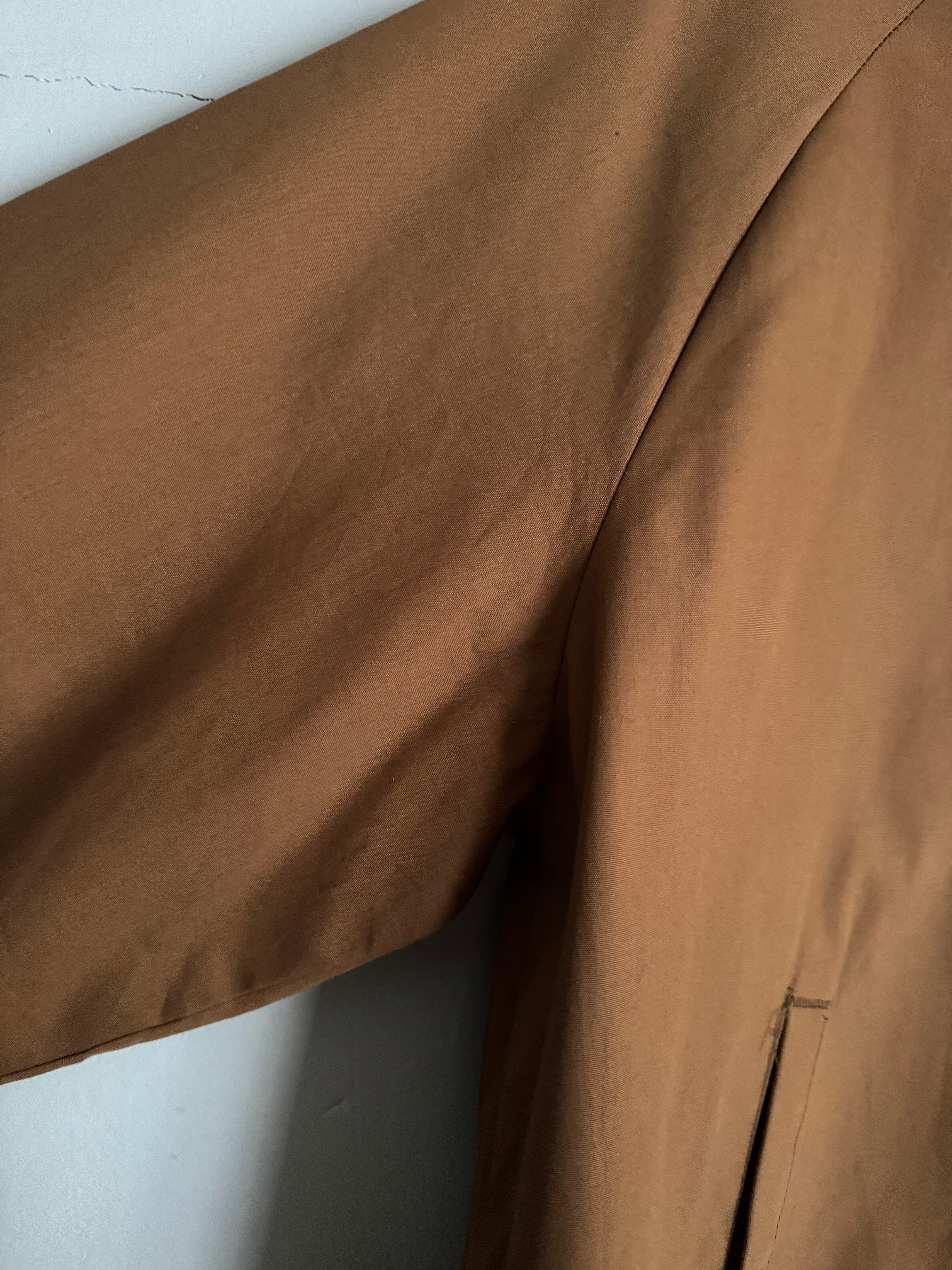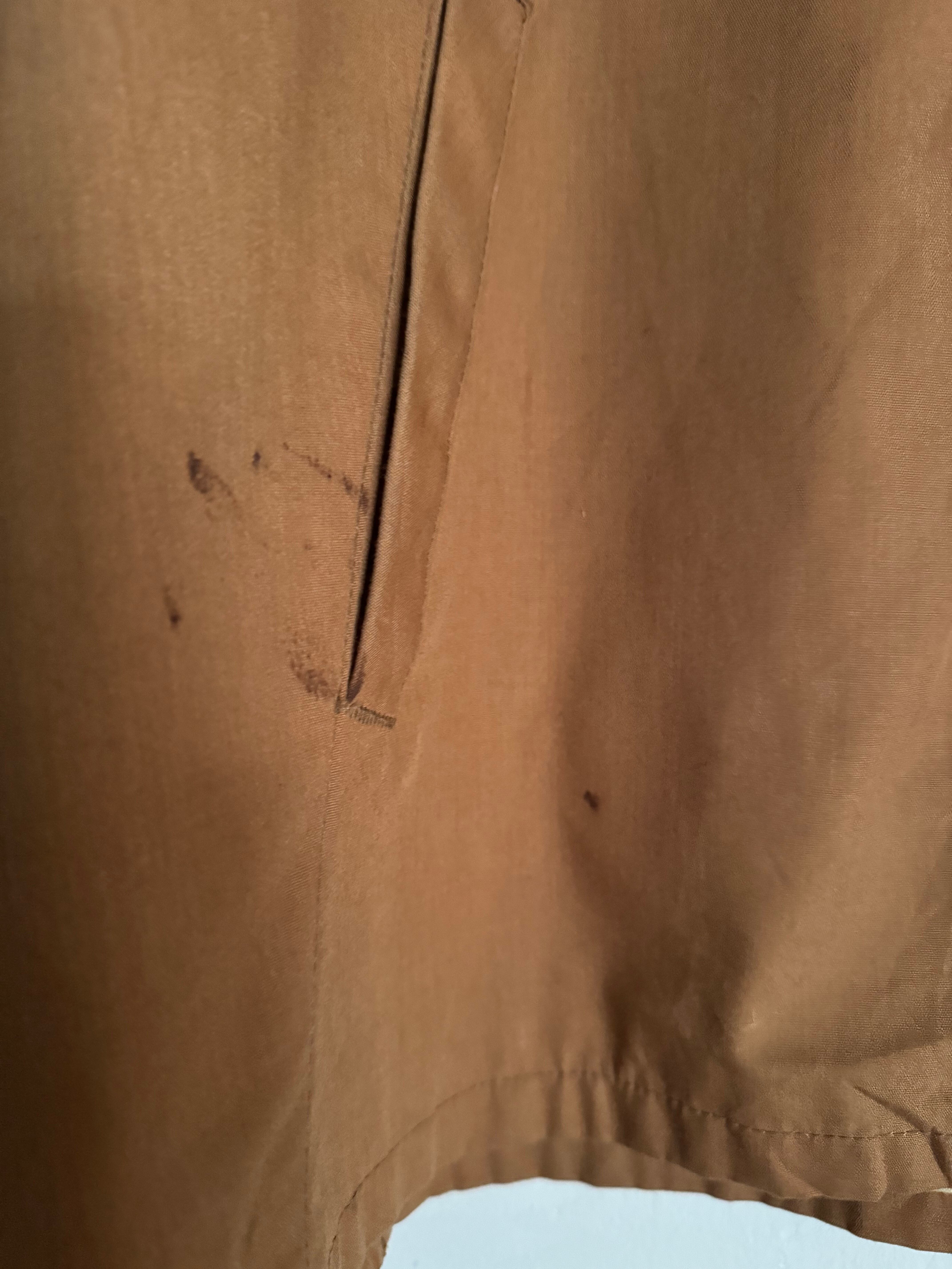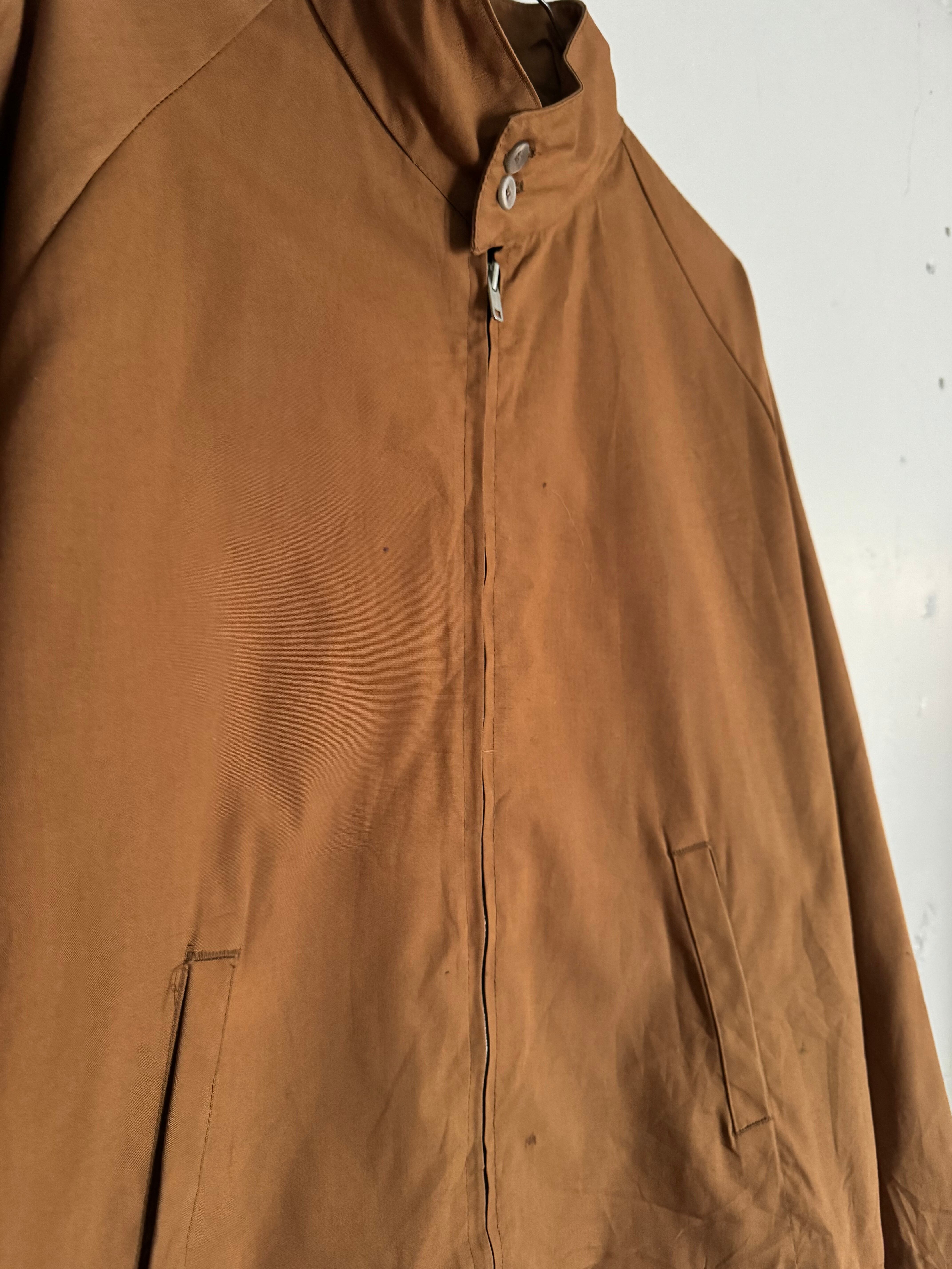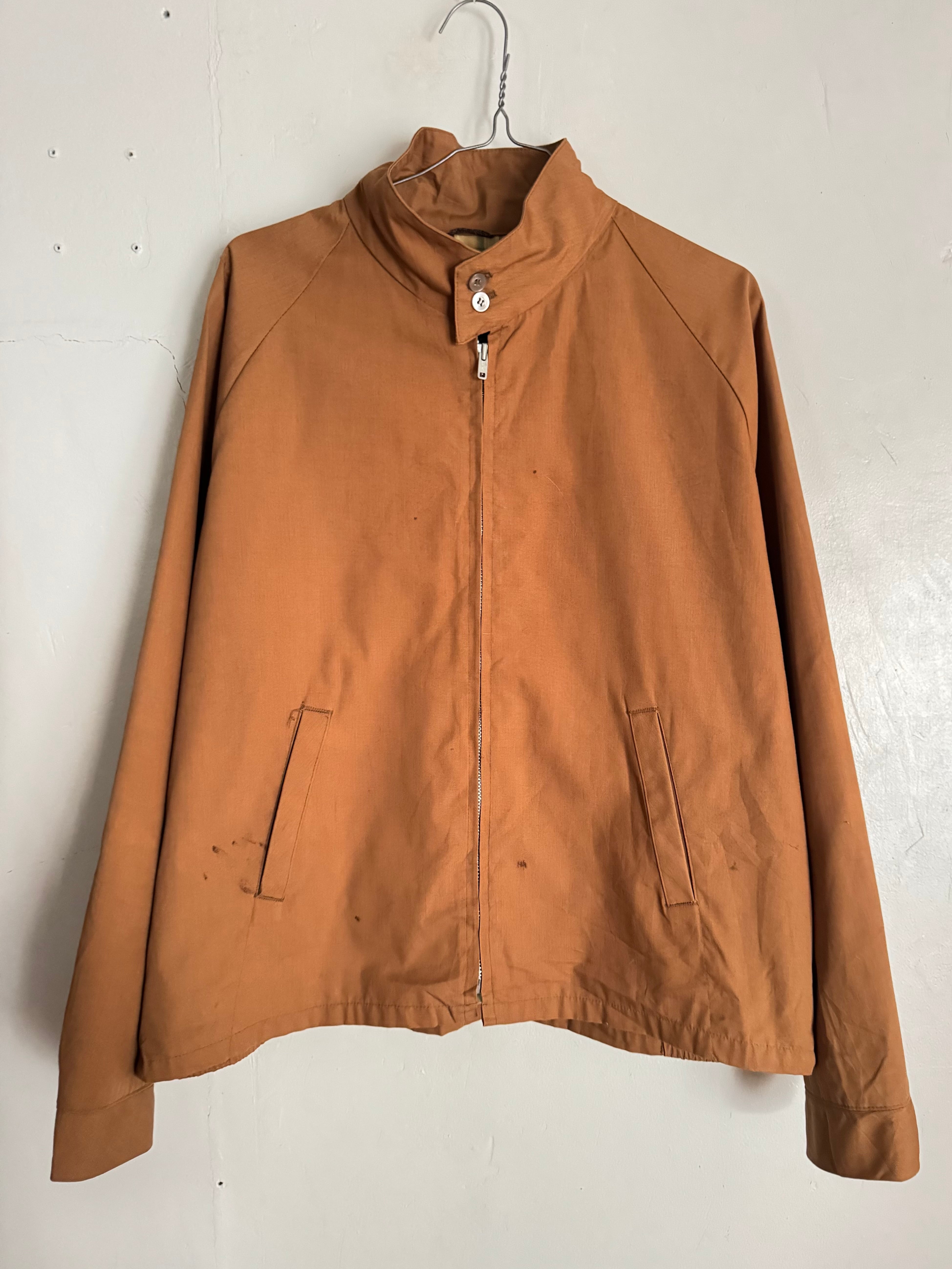 程良くフェードしたキャメルカラーが雰囲気のあるヴィンテージハリントンジャケット。無駄のないミニマルなデザインに、立ち上がりの良いスタンドカラーが特徴です。フロントジップのシンプルな構成で、スラックスからデニムまで幅広く合わせやすい一着です。