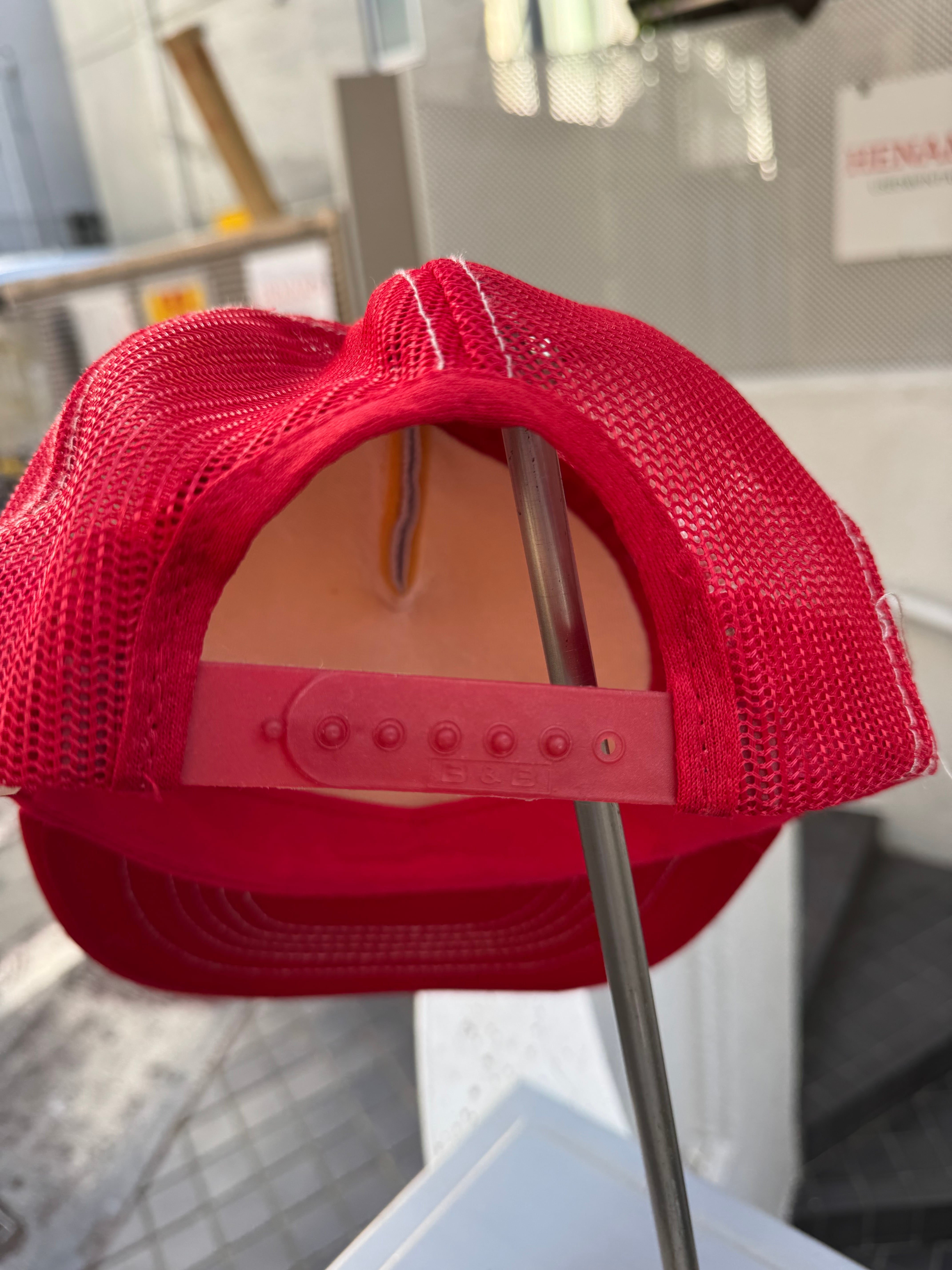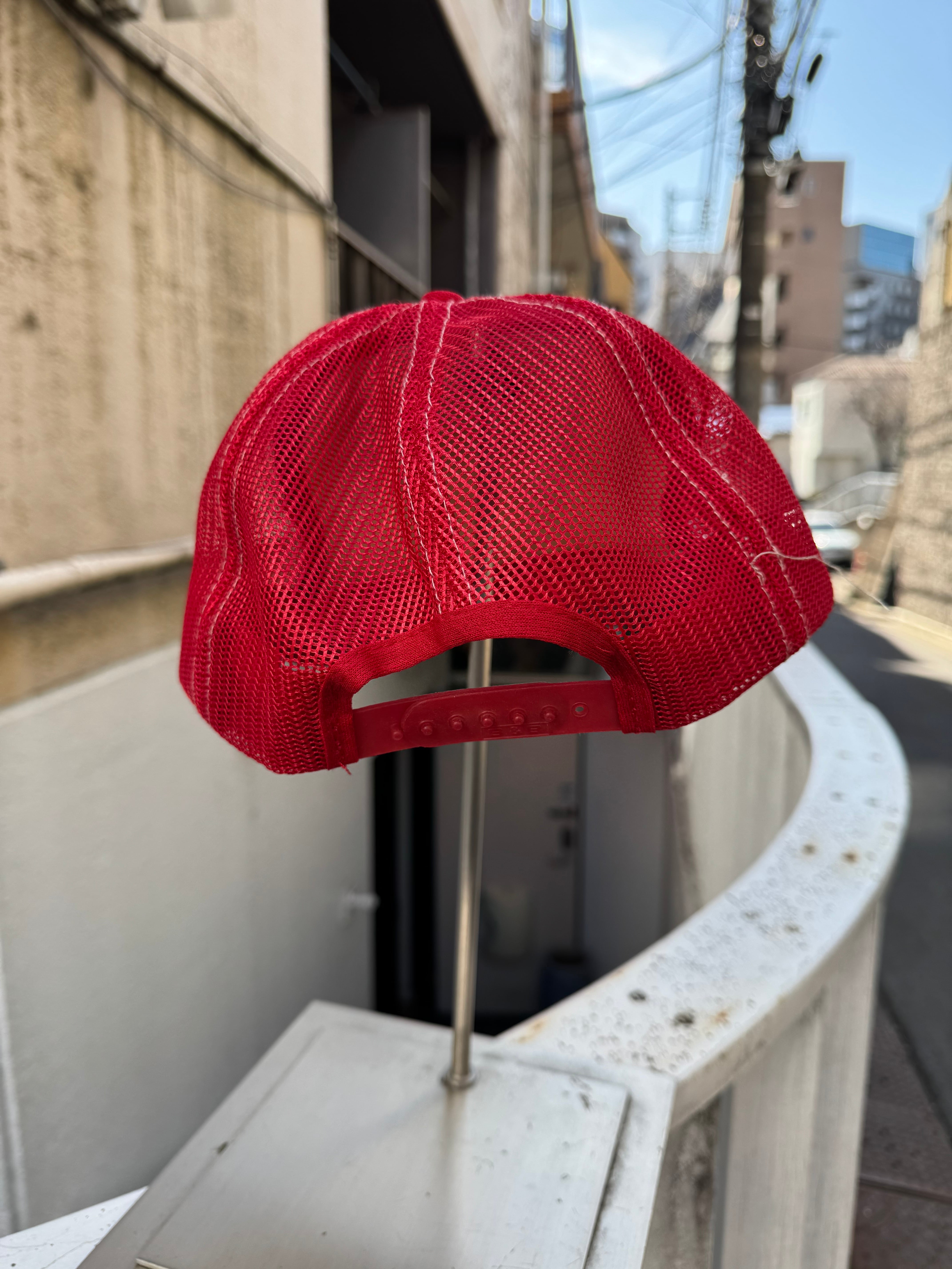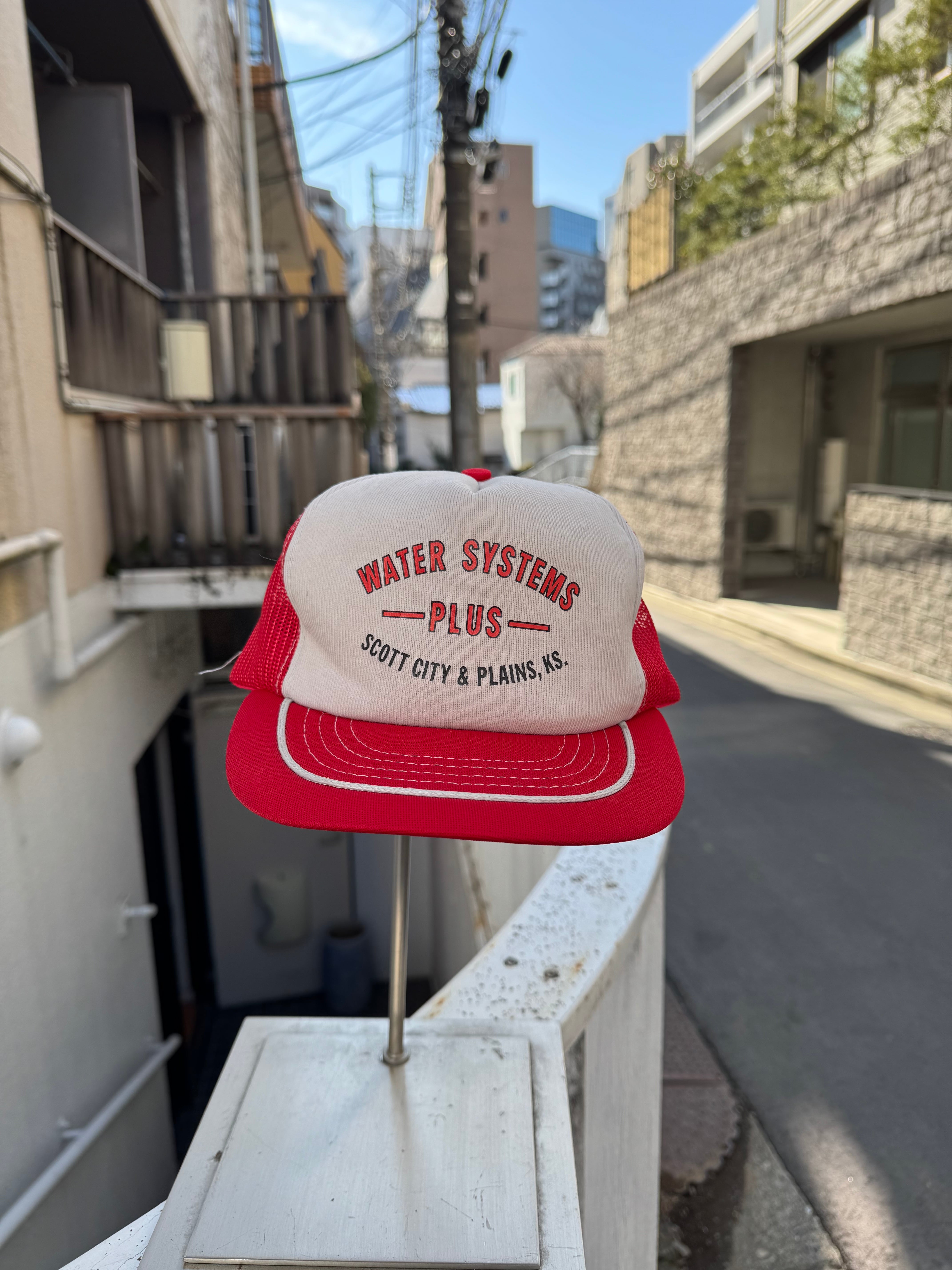 「WATER SYSTEMS PLUS」のロゴがフロントに入ったトラッカーキャップ。レッドとホワイトの配色が、アメリカンワークウェアらしいヴィンテージ感を演出します。フロントはフォーム仕様、外面はメッシュ素材で通気性も良く、軽快な被り心地。コーディネイトの外しとしても、スタイリングの主役としても使える一点です。