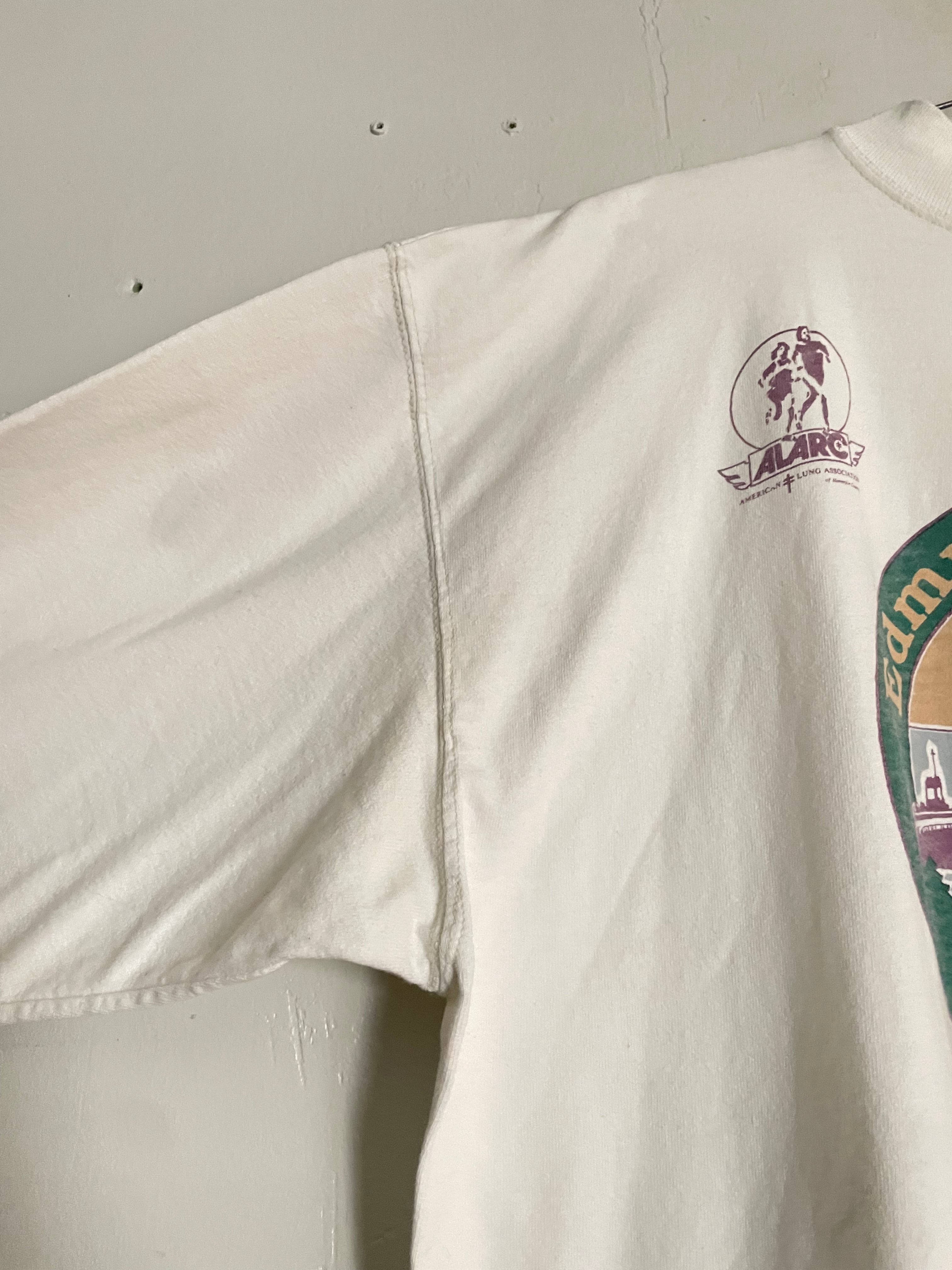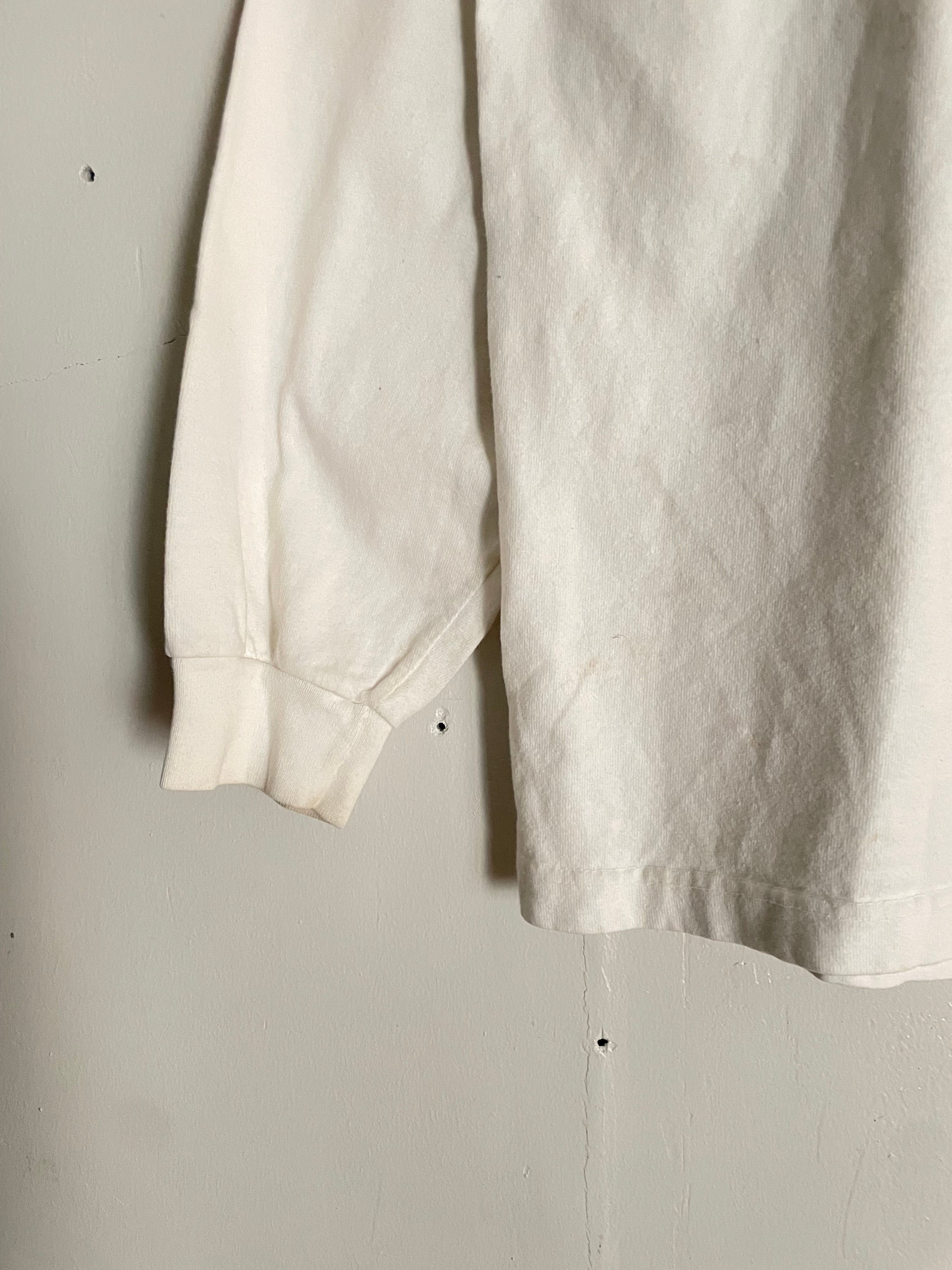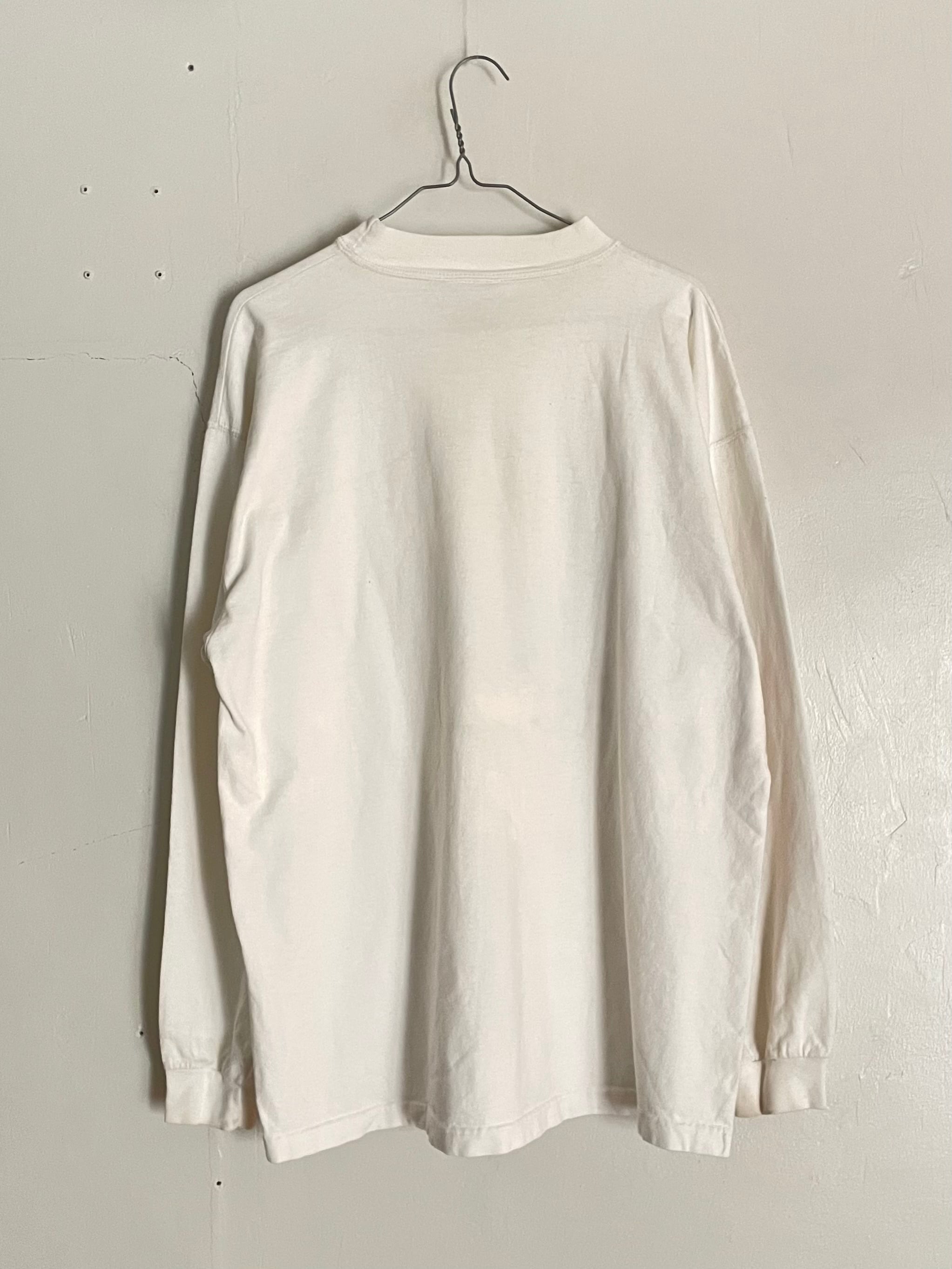 "Edmund Fitzgerald Ultra Marathon Team Relay"のグラフィックが施されたロングスリーブTシャツ。中央には船のイラストが大きくプリントされ、グリーン×パープルの配色が可愛い一枚。ナチュラルなアイボリーカラーのボディは、柔らかな風合いで着心地も◎。スポーツイベント系ののグラフィックが今のスタイルとも相性抜群です。
