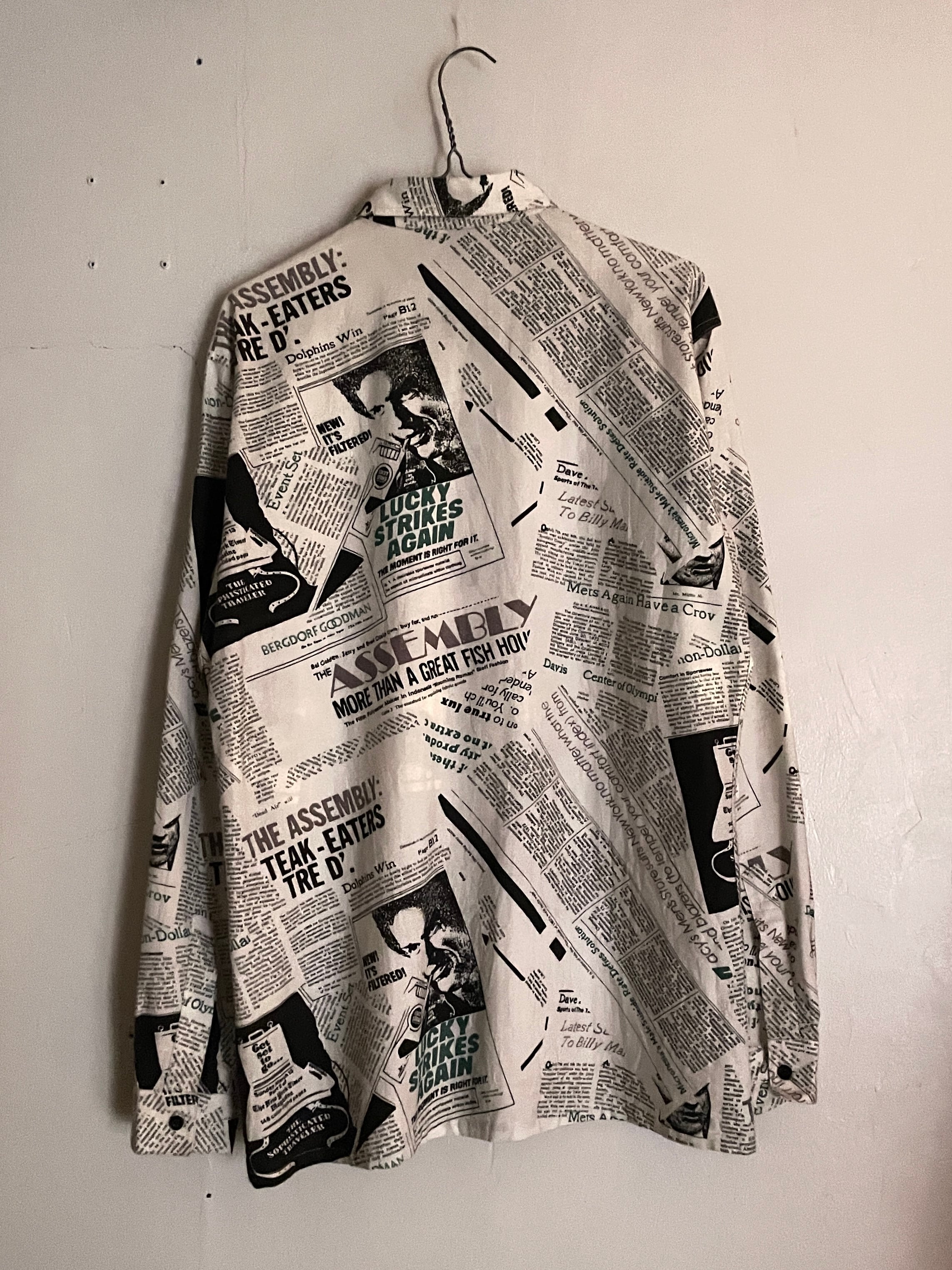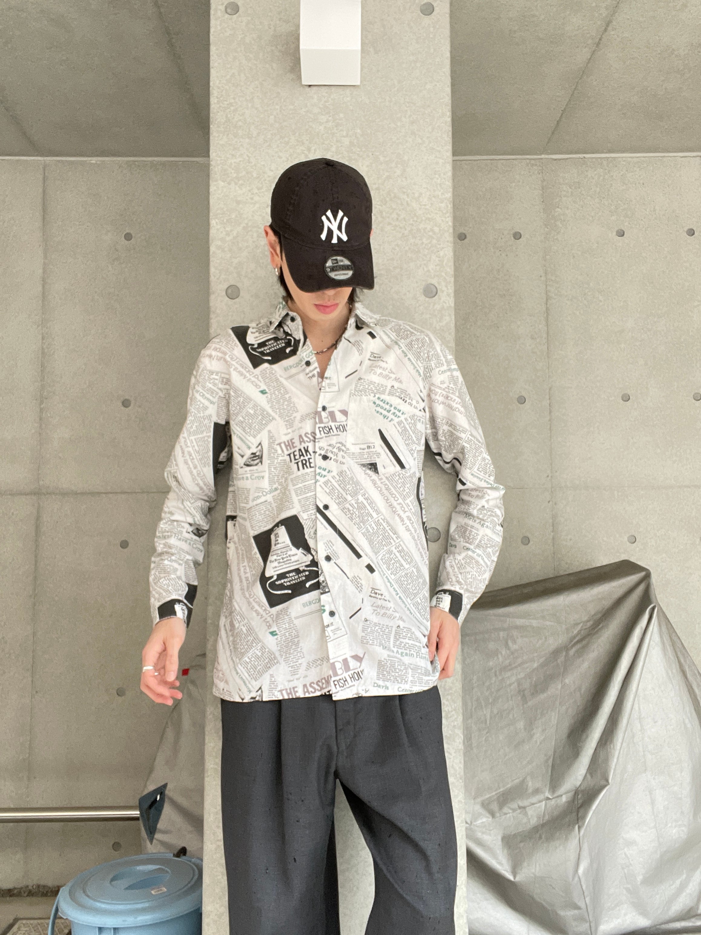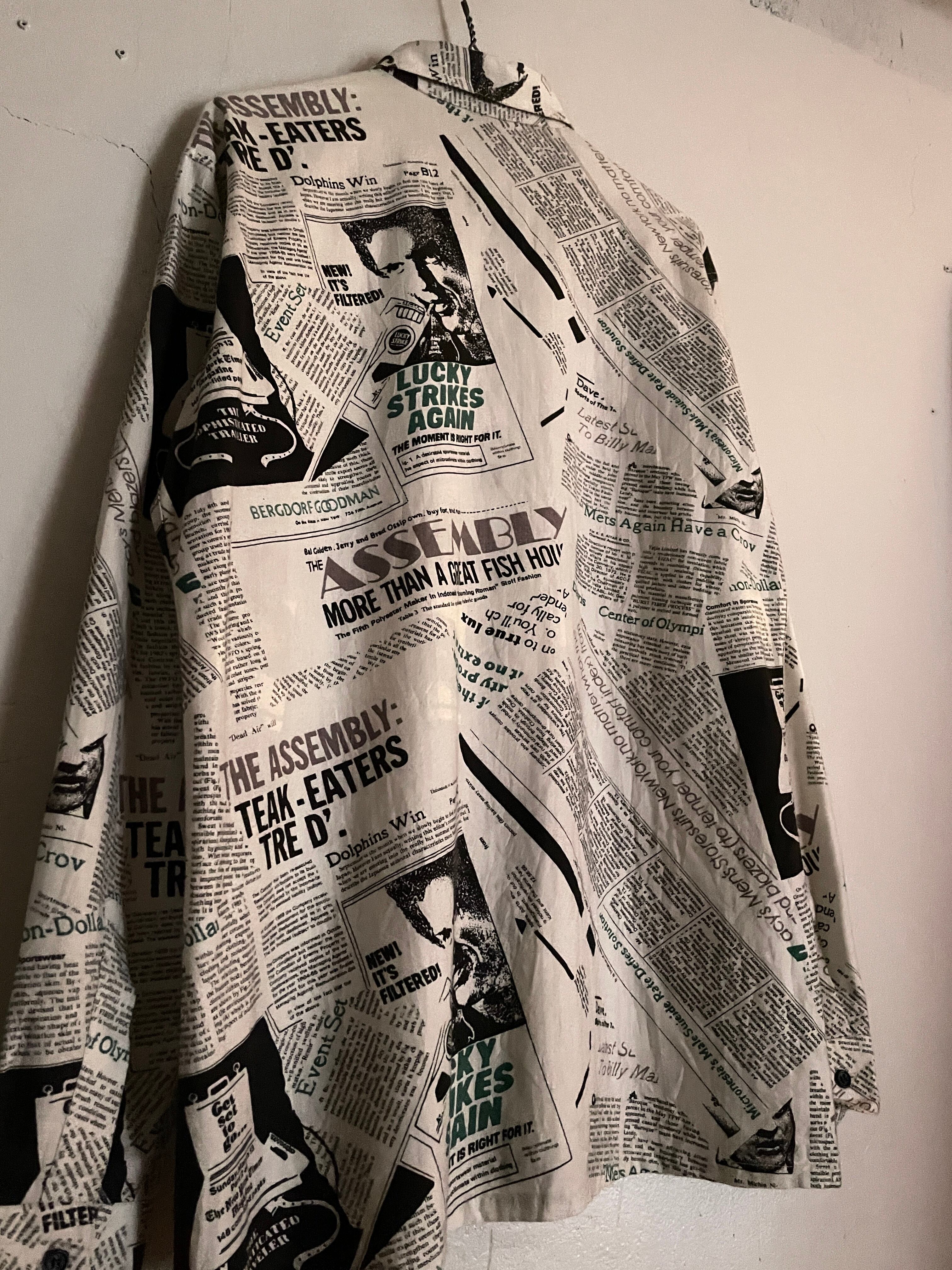 英字新聞をモチーフにした、ニュースペーパー柄デザインのシャツ。モノトーンベースのボディに、英文プリントや人物プリントなどが、全体にズラッとデザインされています。所々にグリーンが入っている事によって、良いアクセントになってくれています。ゆったりとしたサイズ感で、ラフに着られるのもポイントが高いです。春にはファッションの主役として、今の時期にはインナーとしても活躍してくれるシャツです。