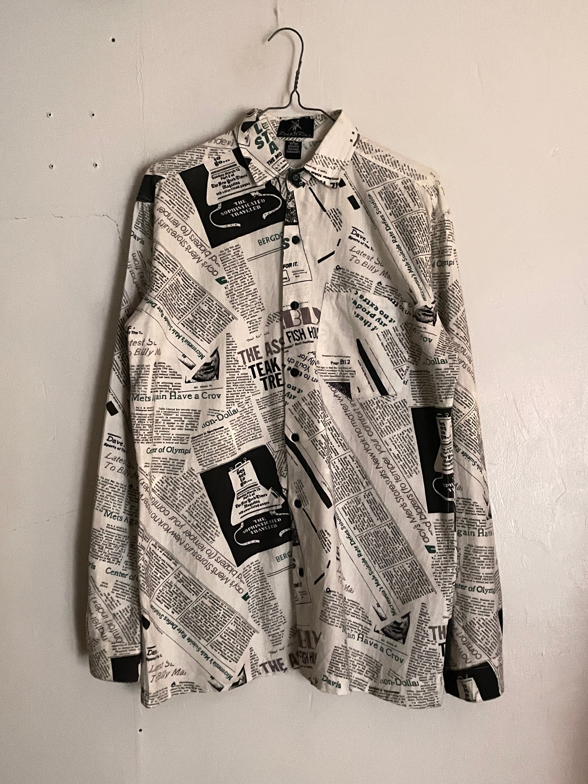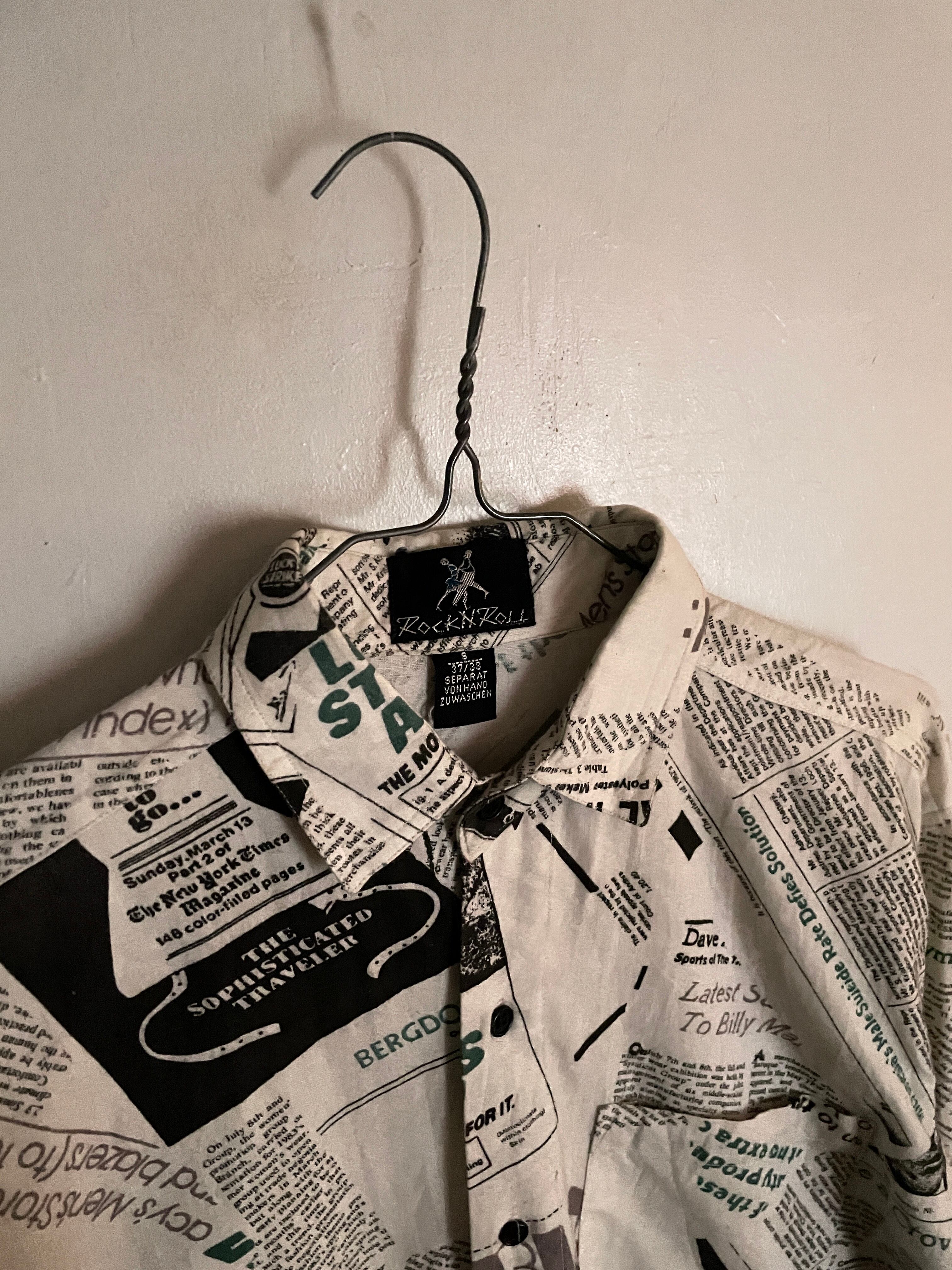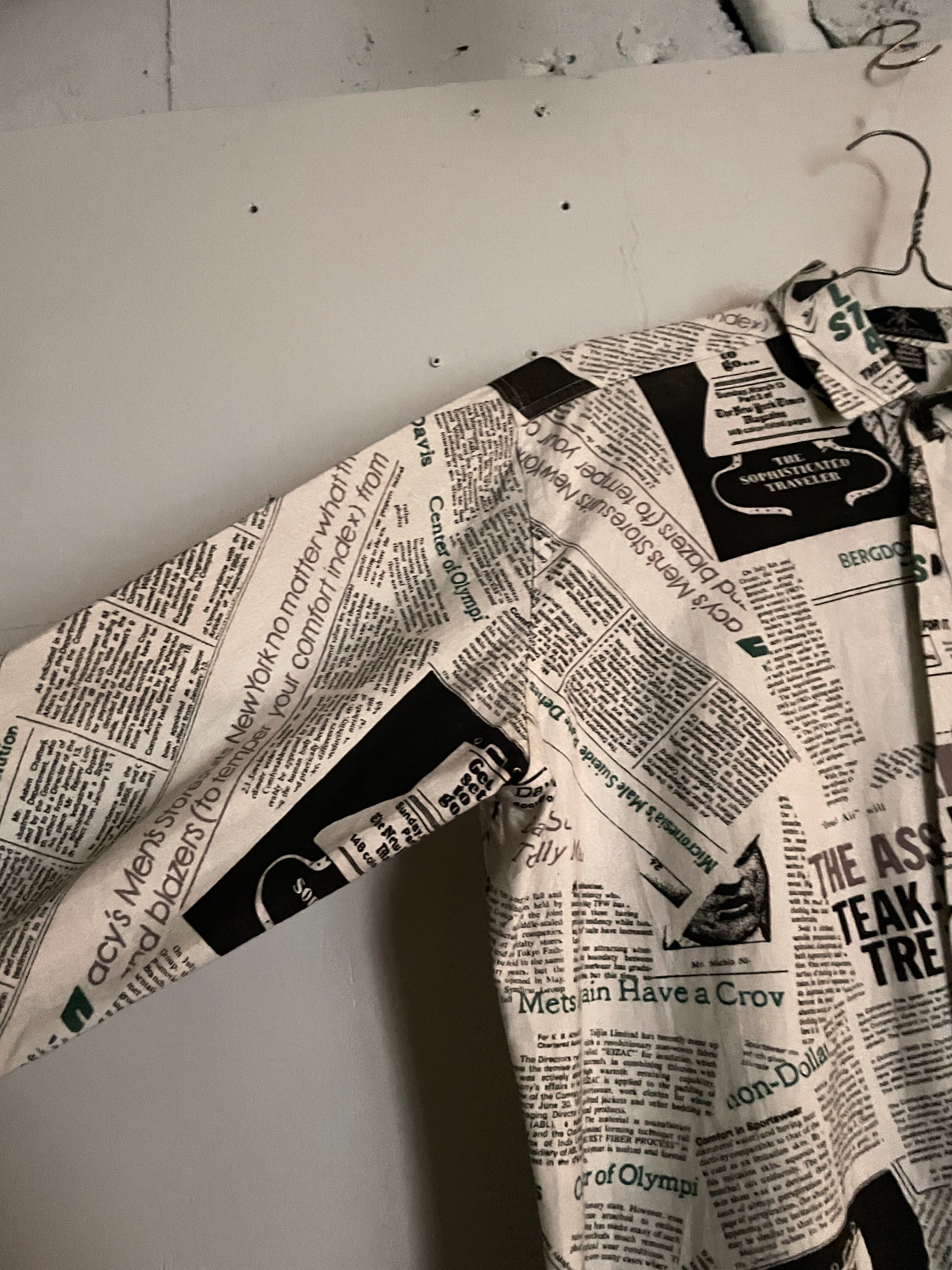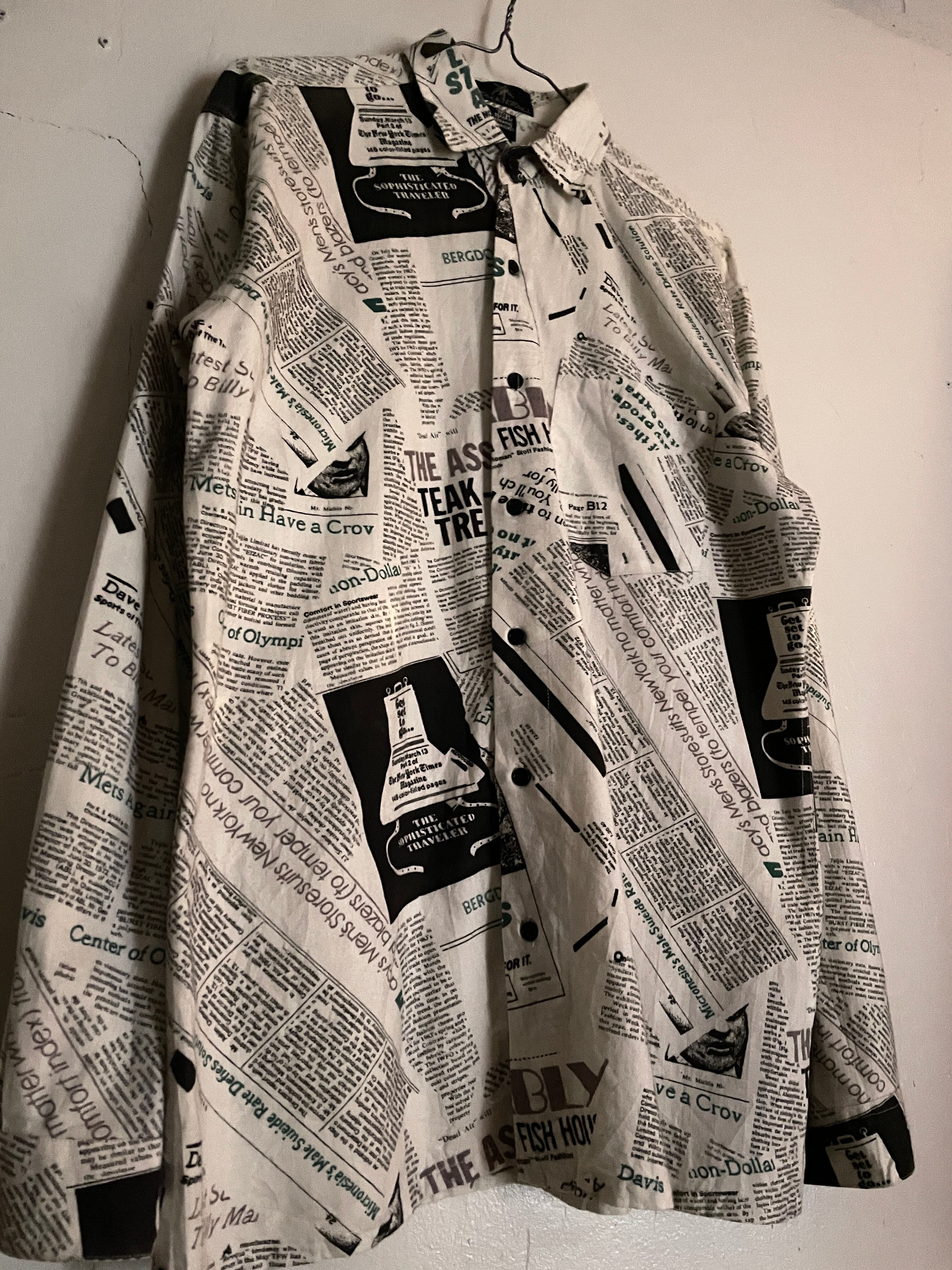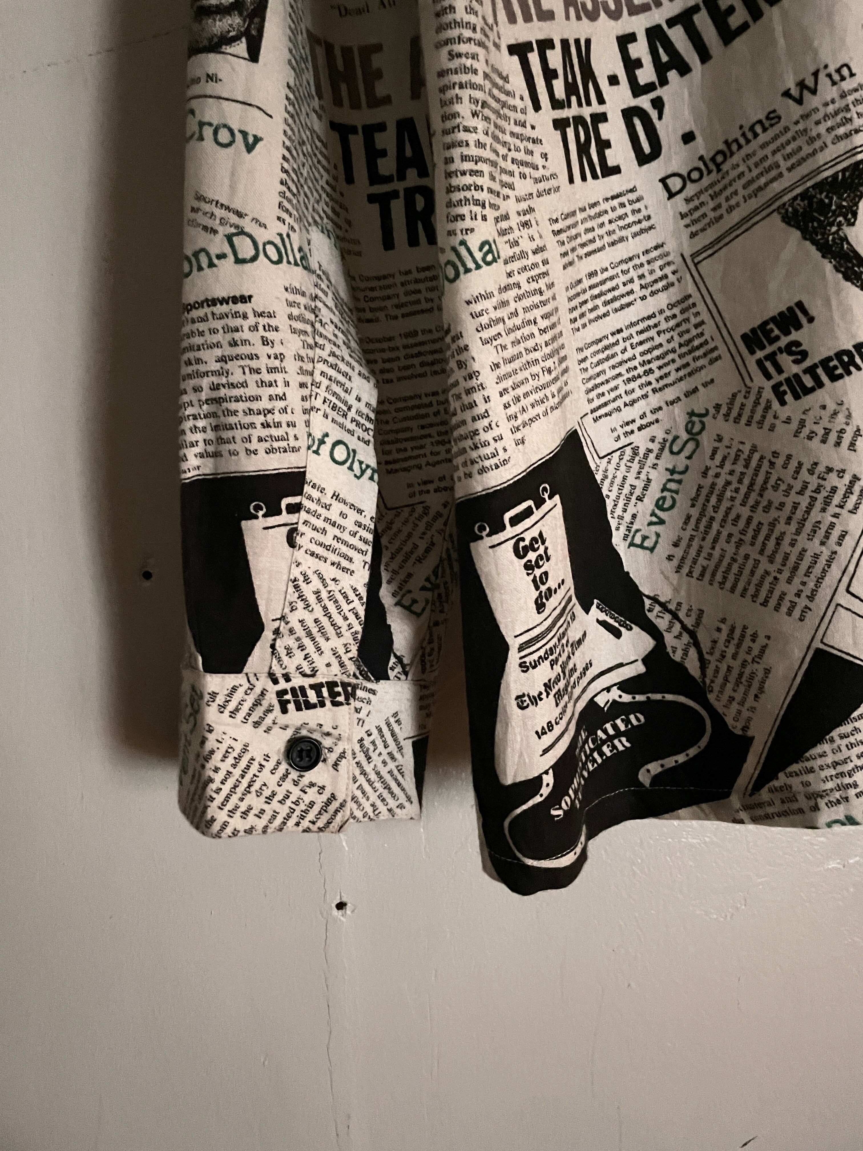 Old News Paper Pattern Design Cotton L/S Shirt