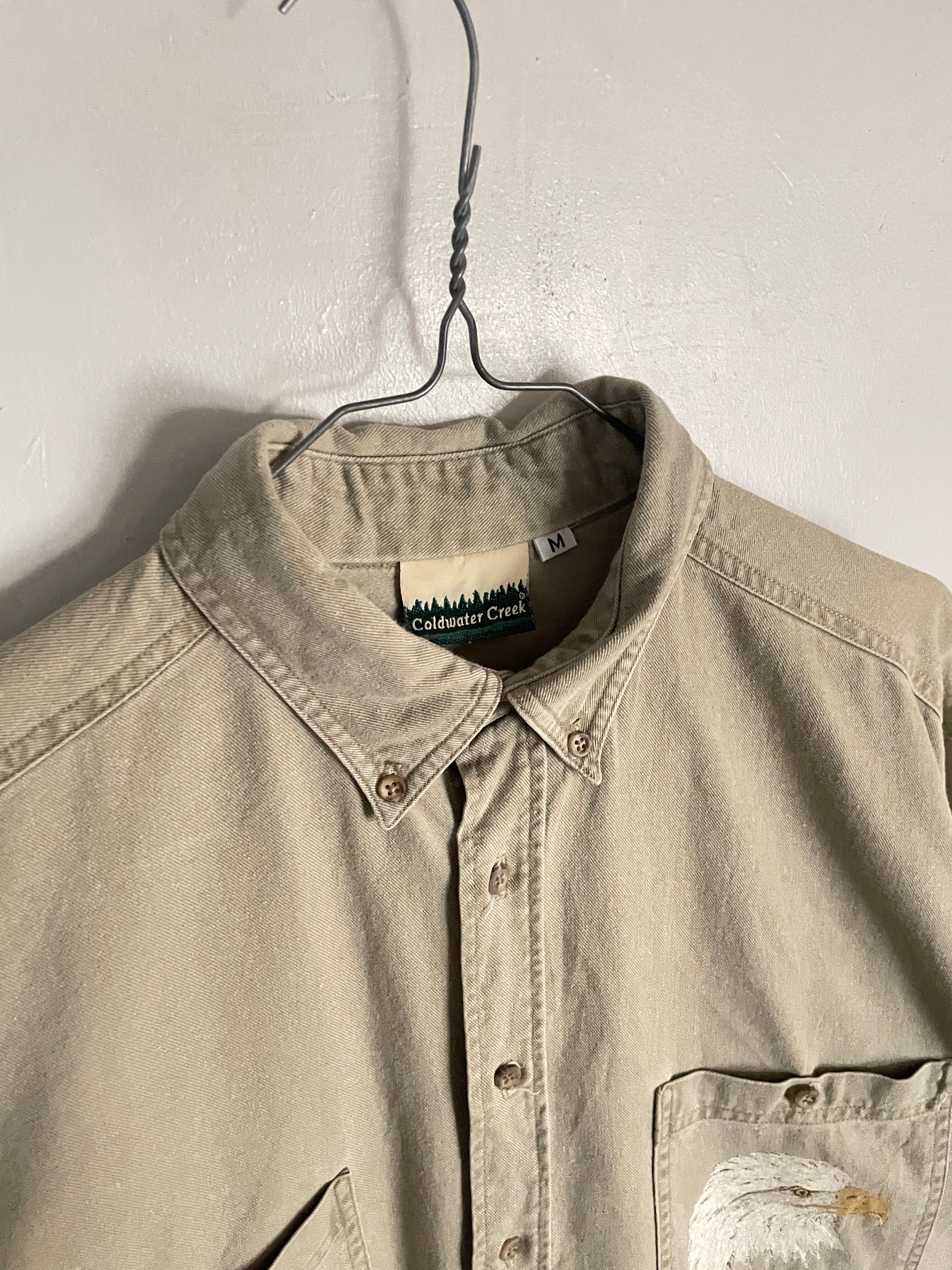 Old Coldwater Creek Beige Eagle Native American Printed Cotton L/S Shirt