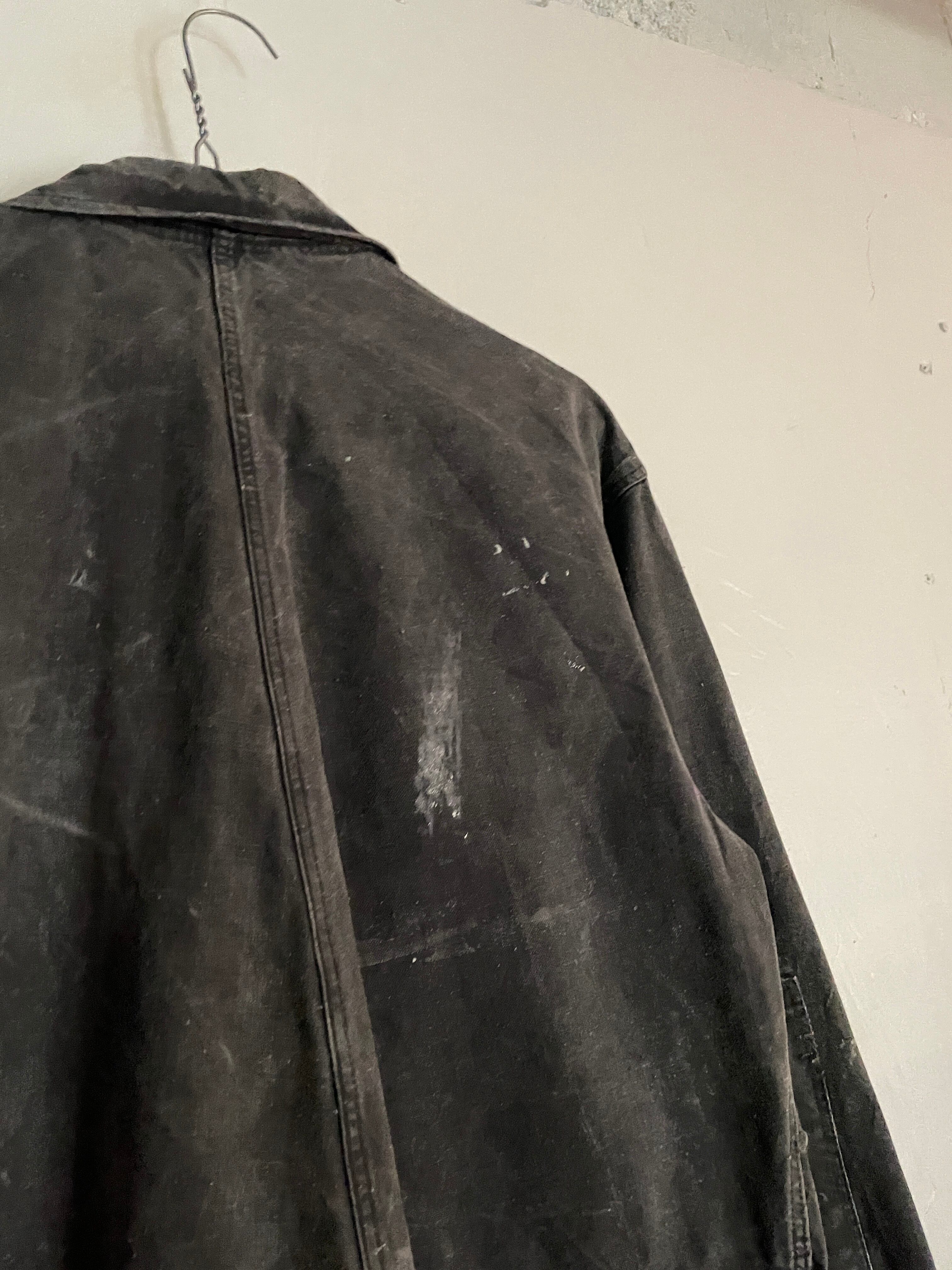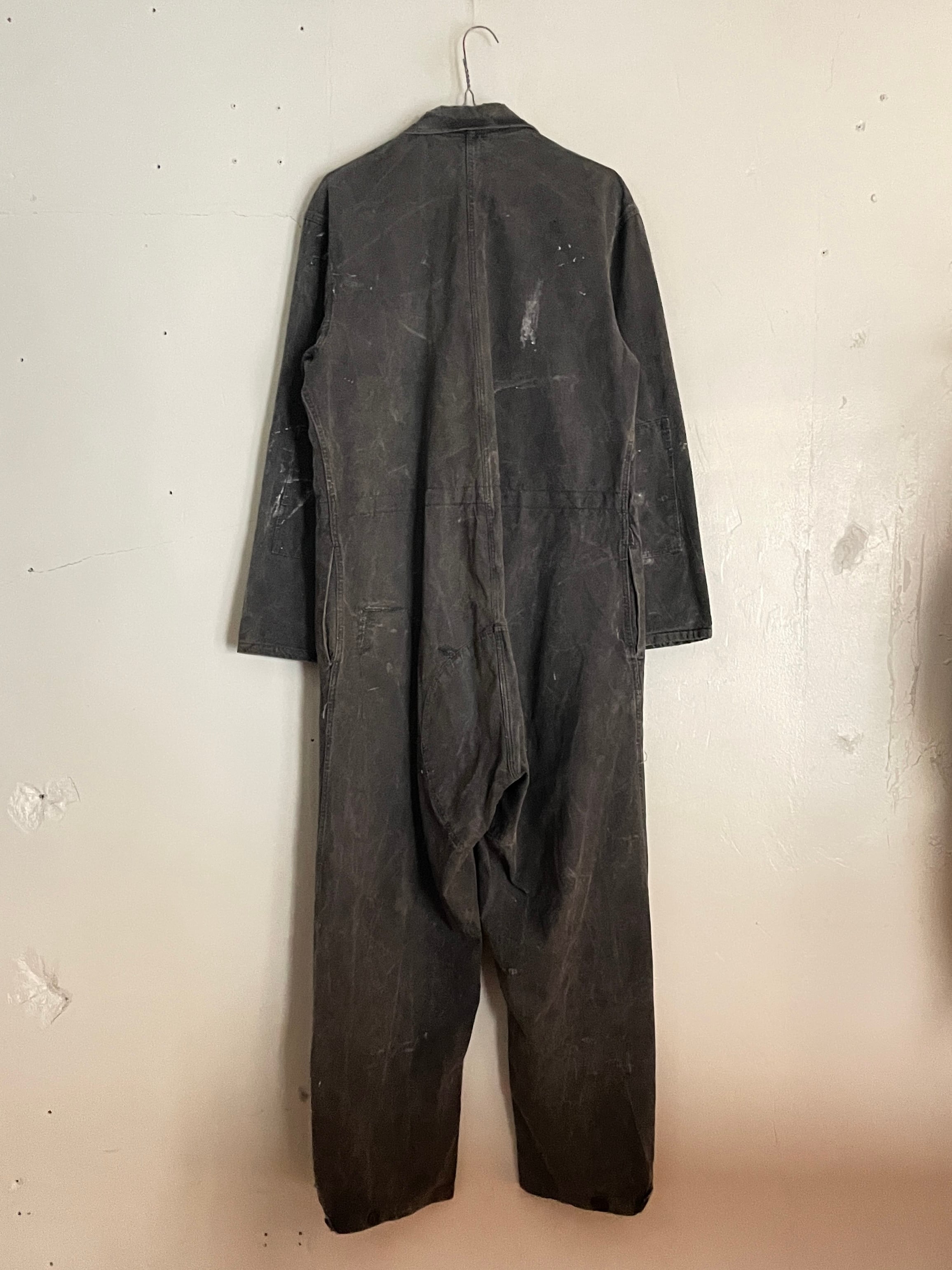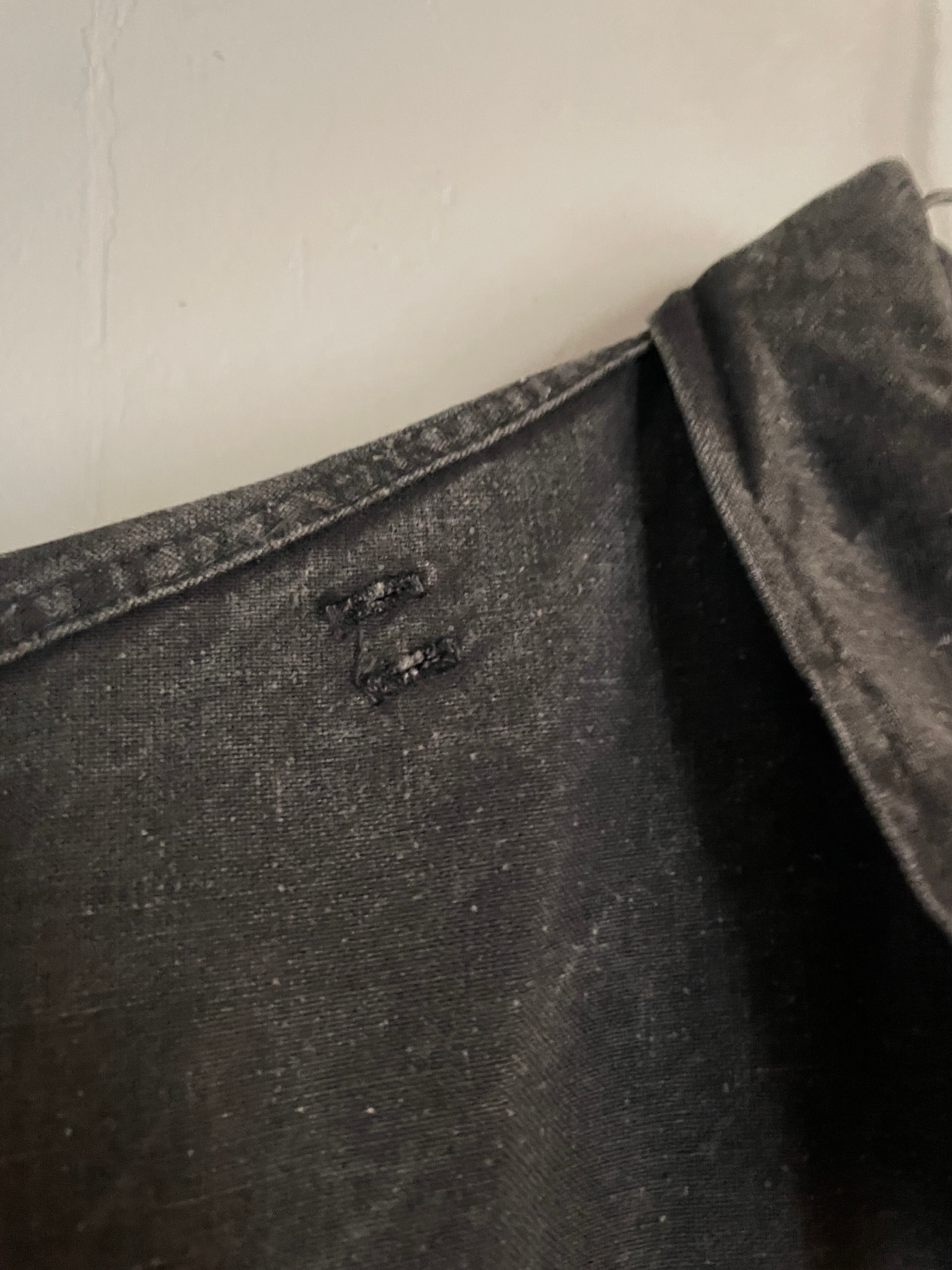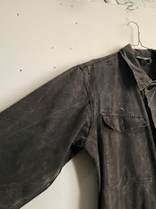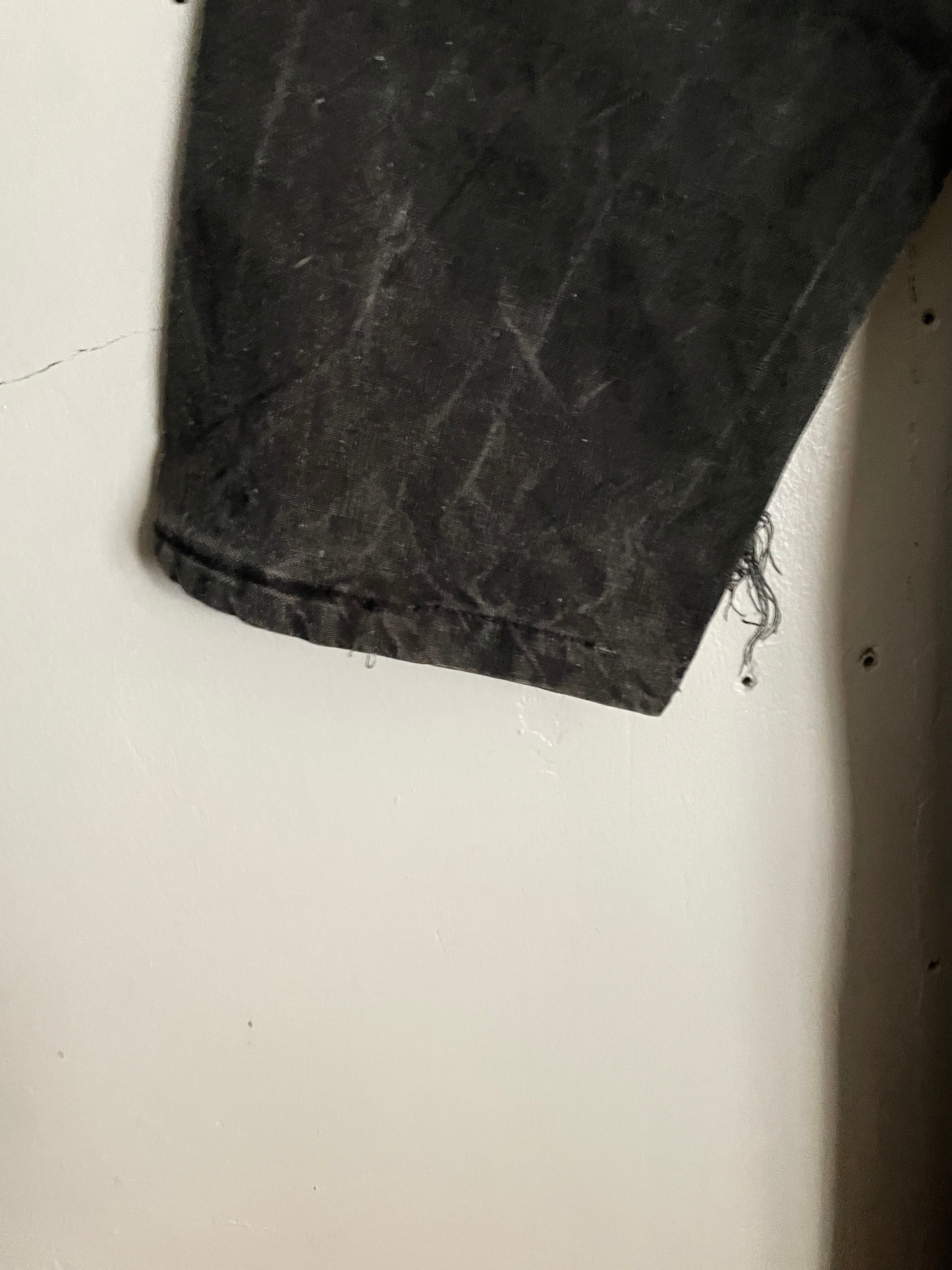 フェードがかったブラックカラーで、所々のペイントデザインが堪らなくかっこいい、東ドイツ軍のオールインワン。膝部分はオールインワンには珍しいダブルニー仕様。露骨な雰囲気が色っぽく、間違いなくファッションのメインになる一着かと思います。小さなダメージが多少見られますが、それも込みで雰囲気抜群のアイテムです。右胸ポケットのボタンが欠損しています。