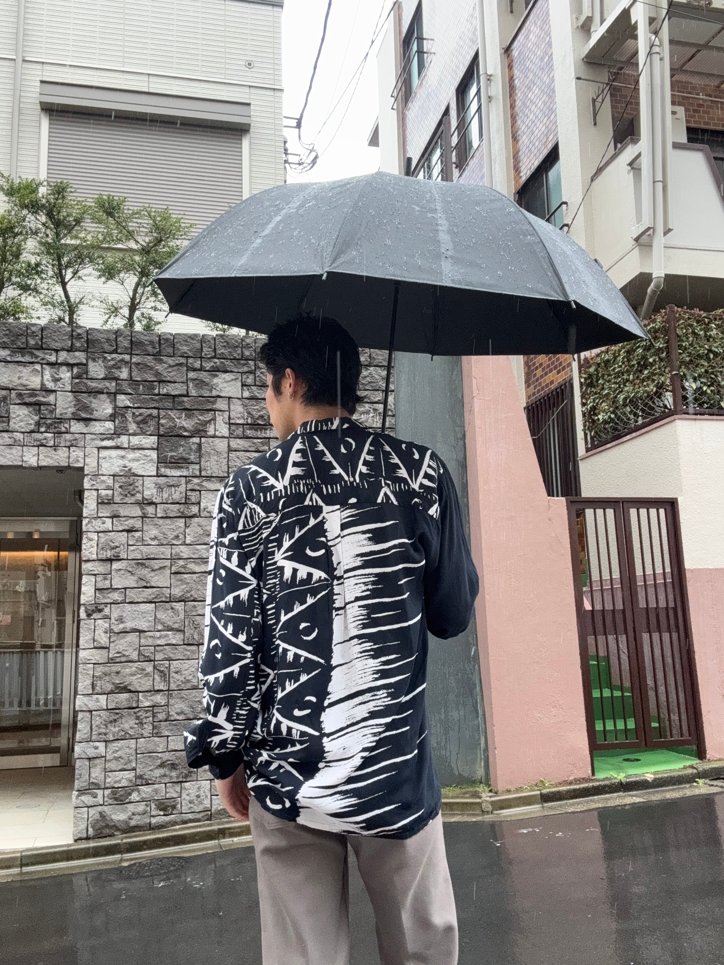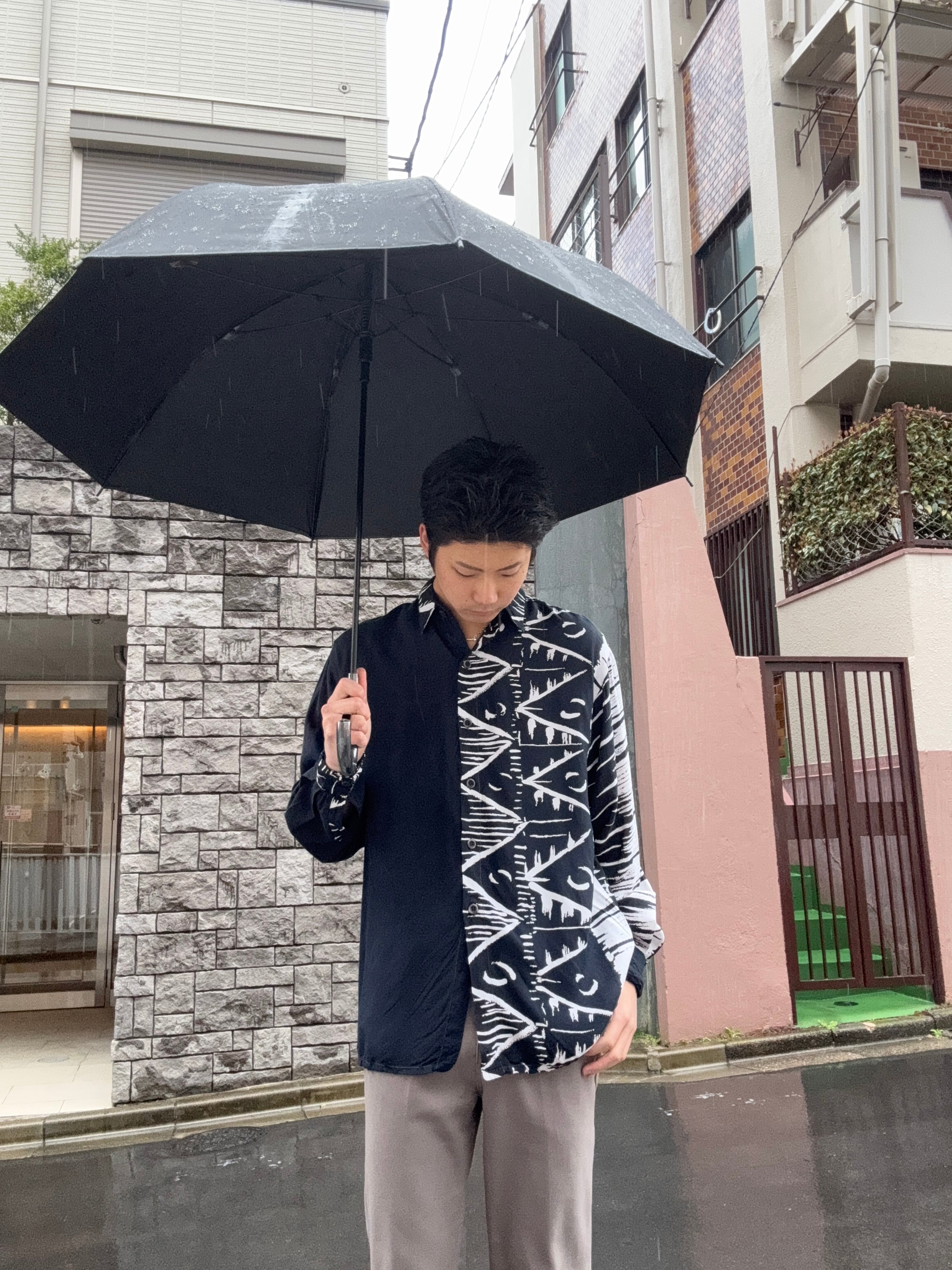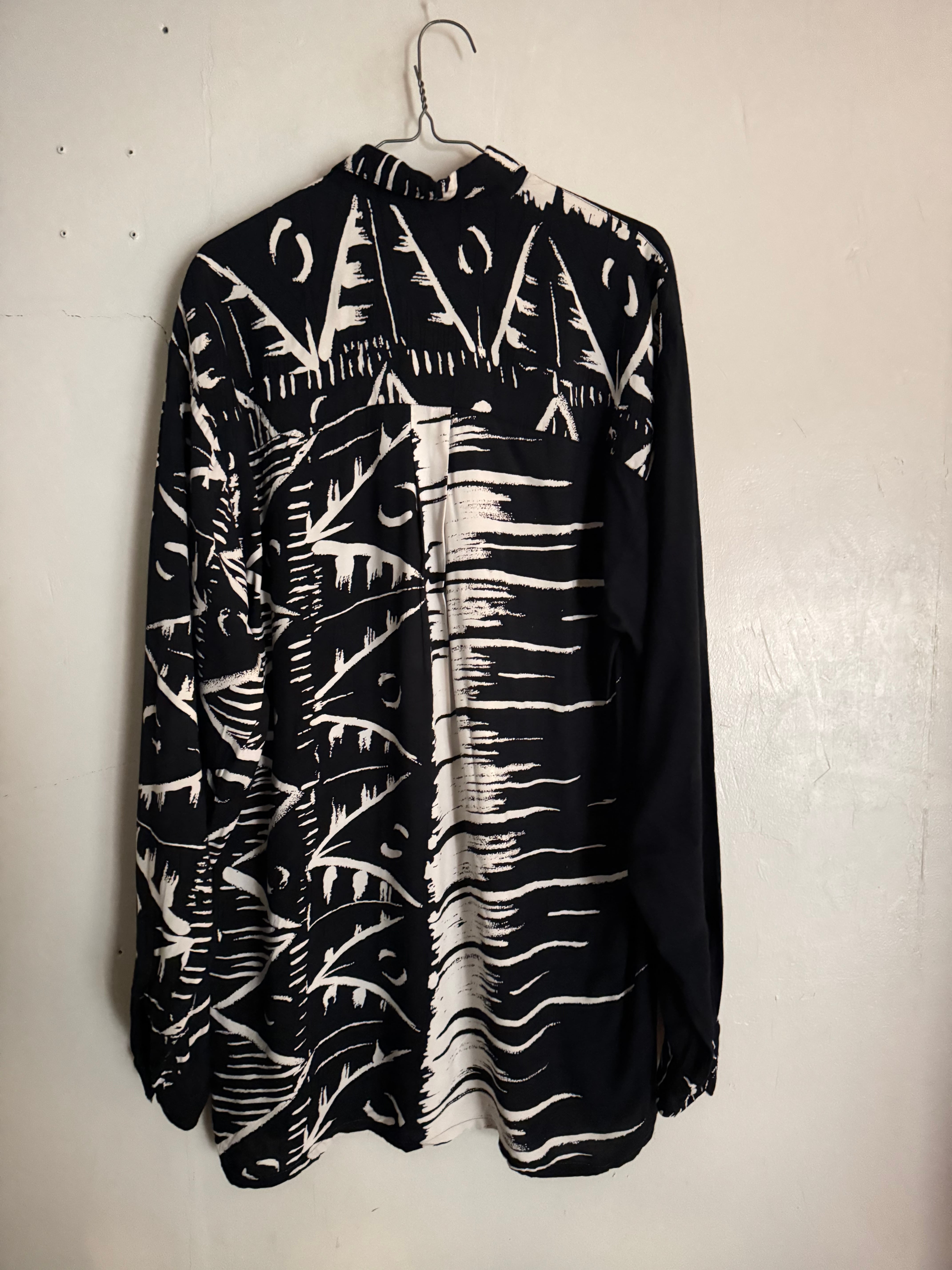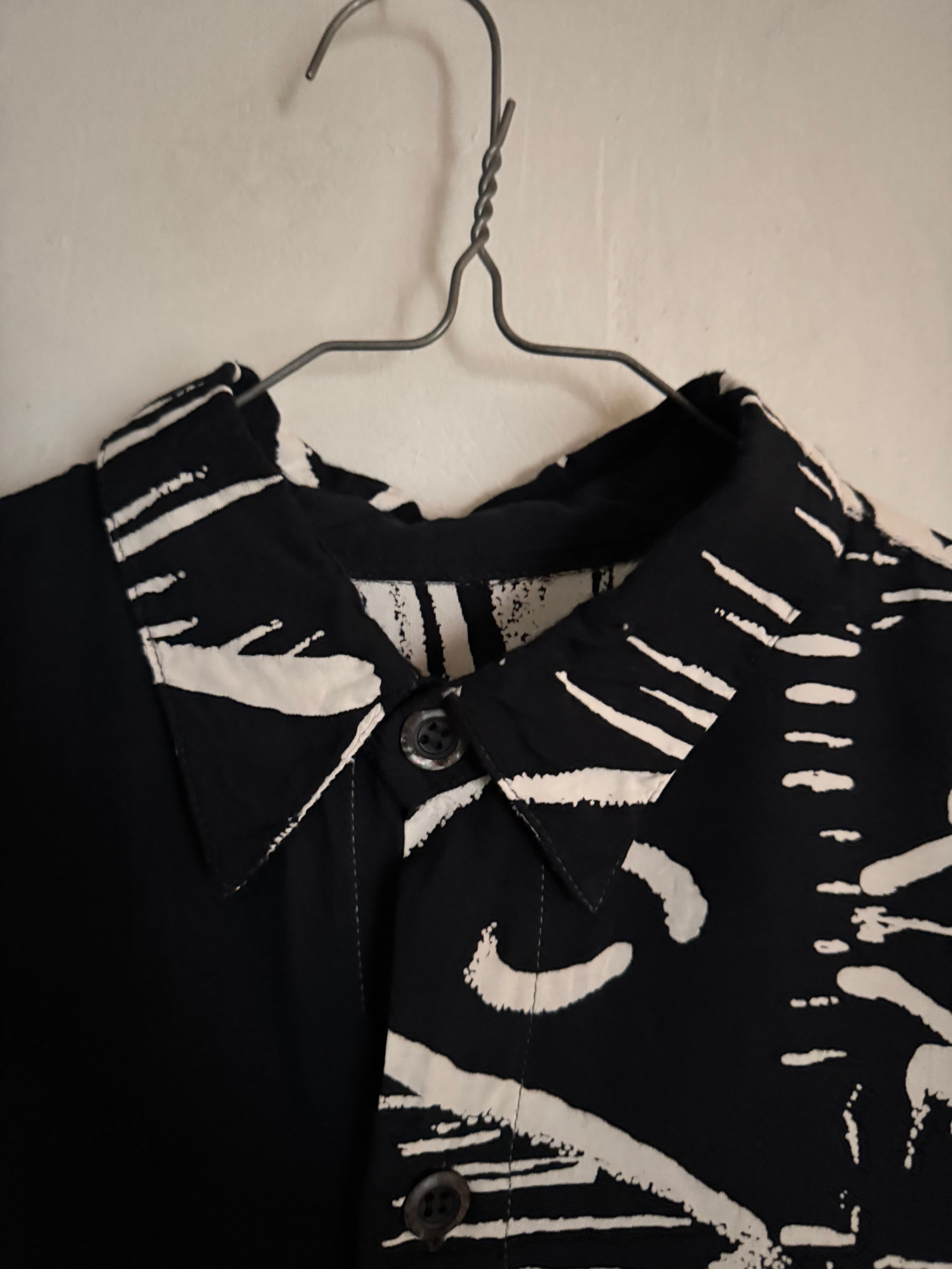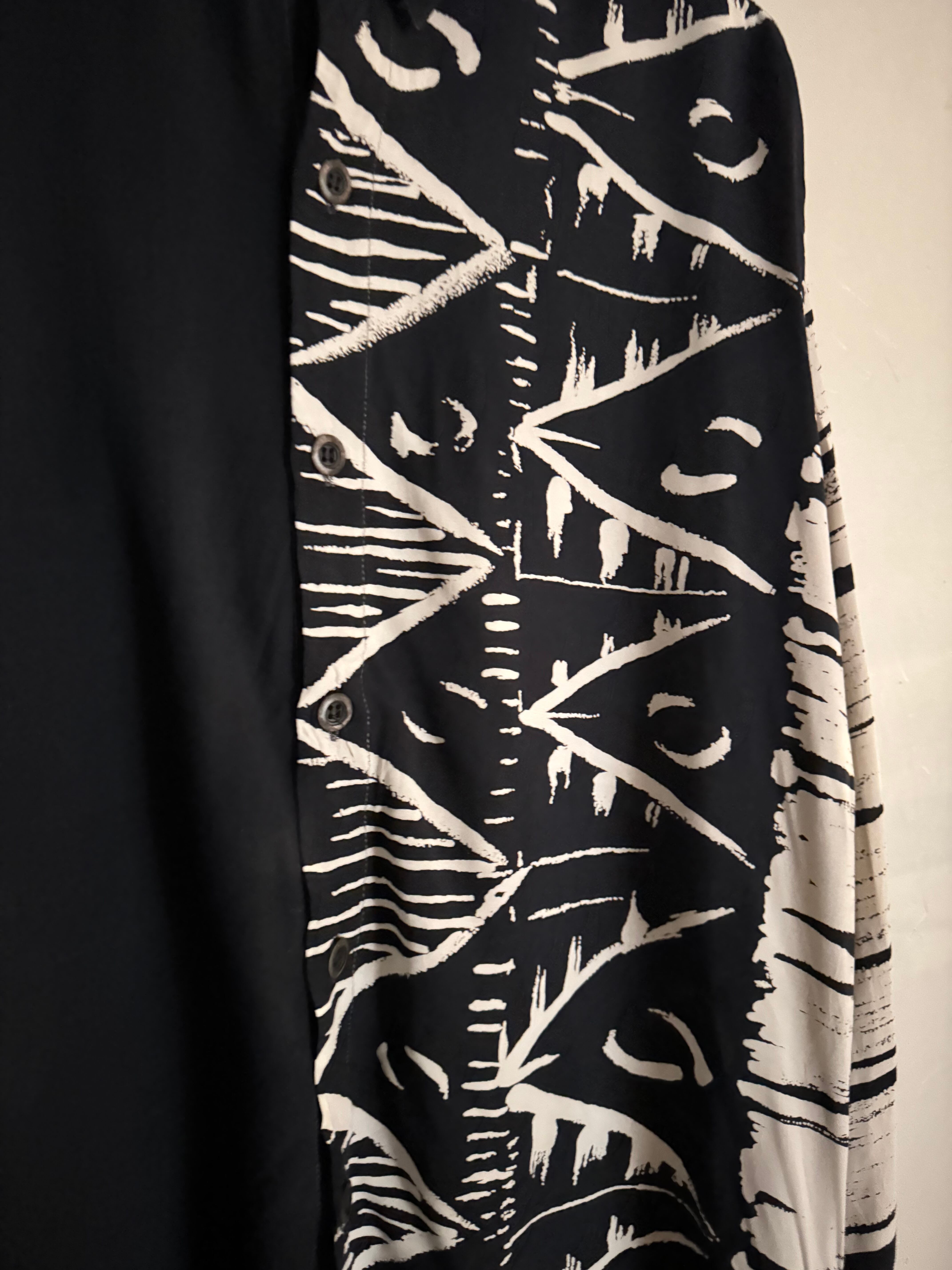 ASTER CLASSICのデザインシャツ。ブラックとホワイトを基調とした大胆なパターンが印象的で、左右異なるデザインを組み合わせたアシンメトリー仕様が特徴の一着です。アートワークのような総柄がコーディネートの主役として存在感を放ち、シンプルなボトムスと合わせるだけでスタイリングが完成します。ゆったりとしたシルエットでリラックス感のある着心地も魅力。普段のコーディネートにアクセントを加えてくれる存在感のある一着です。