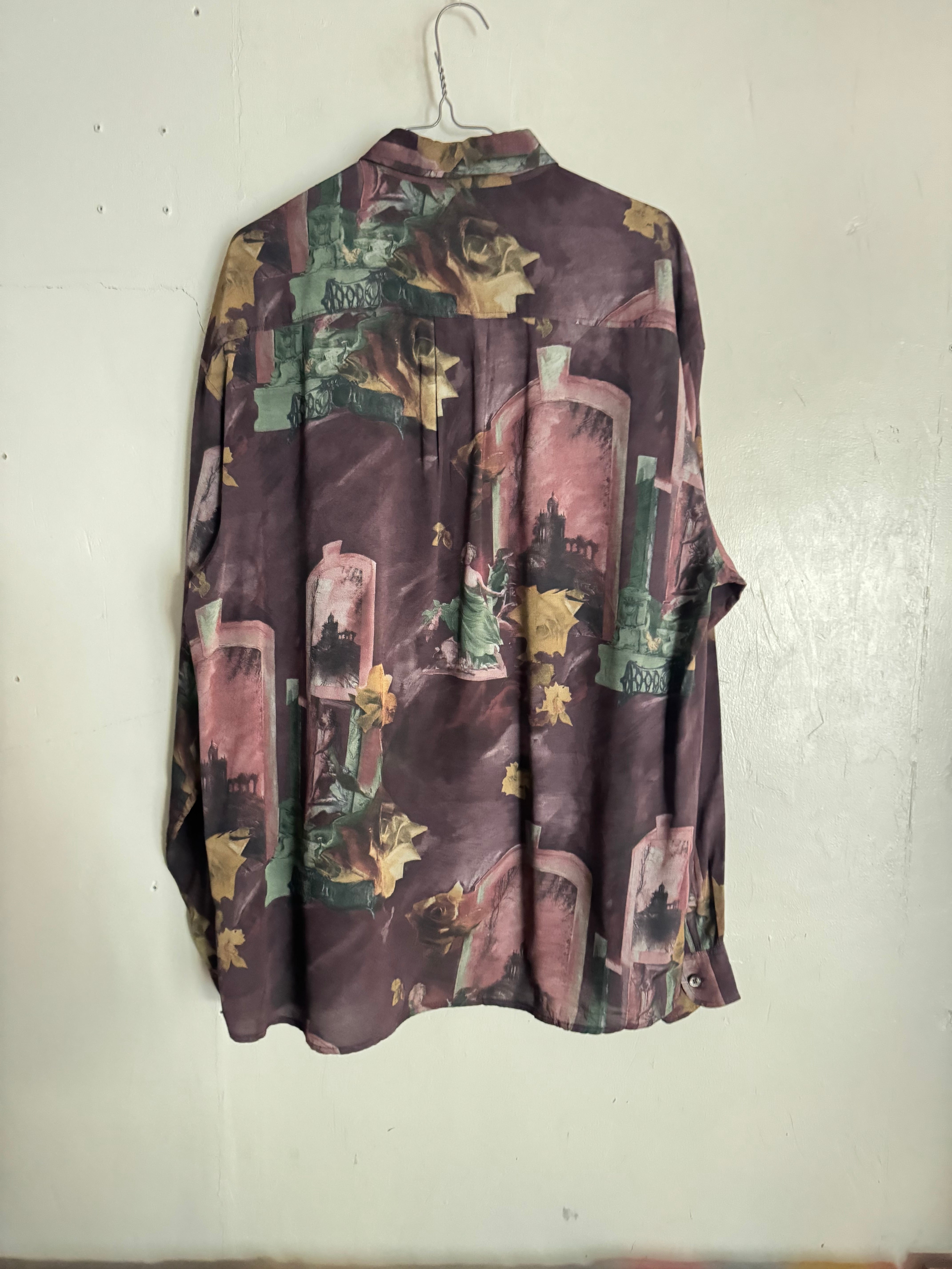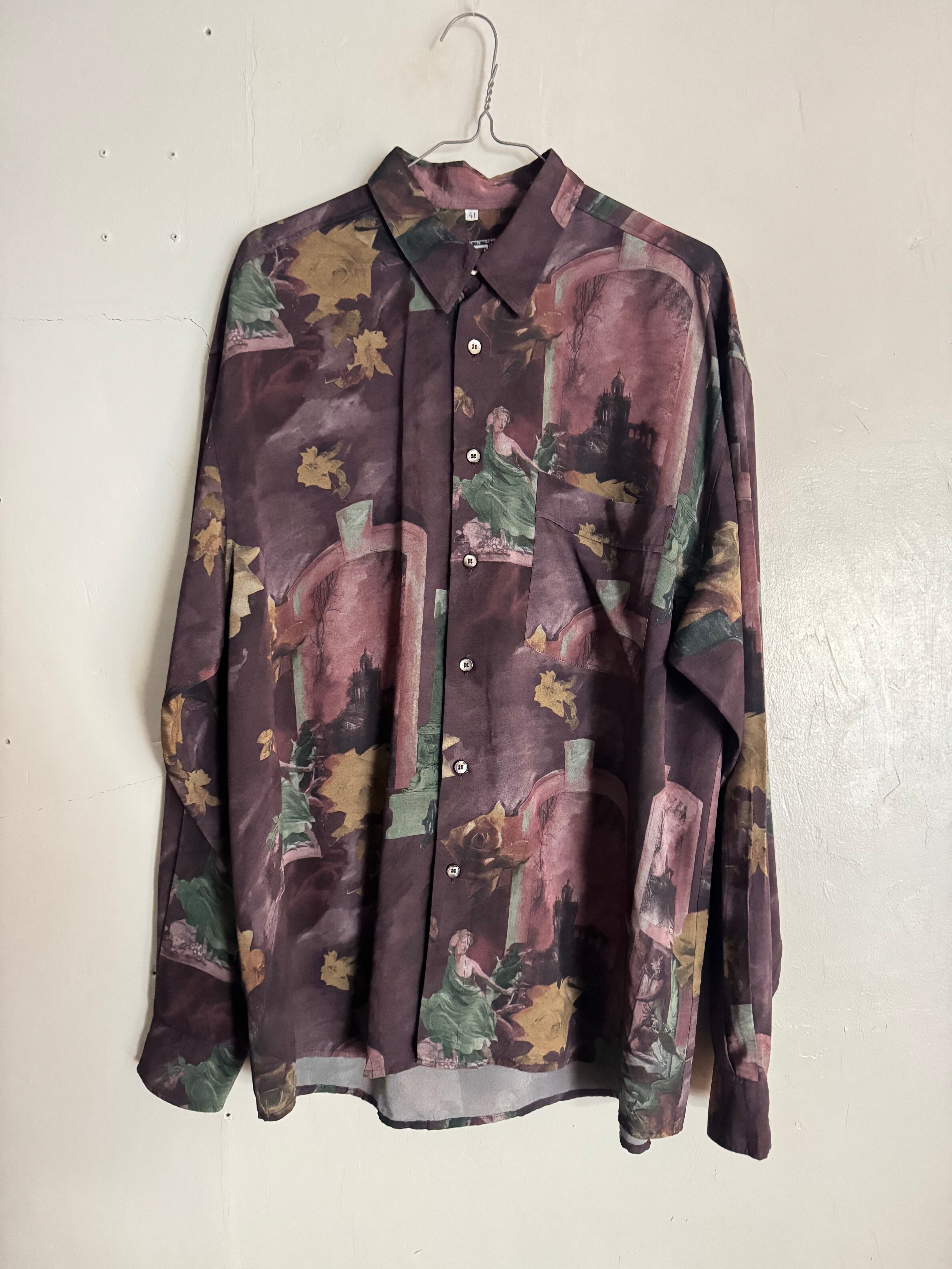 クラシックなアートモチーフが全面にプリントされた「Jean Maseric」の総柄シャツ。人物像や建物、植物がコラージュのように配置されたデザインは、まるで一枚の絵画のような雰囲気を持った個性的な一着です。ややゆとりのあるシルエットでサラッと羽織ることもでき、スタイリングの主役として存在感を発揮。シンプルなボトムスと合わせるだけでコーディネートが完成するアイテムです。