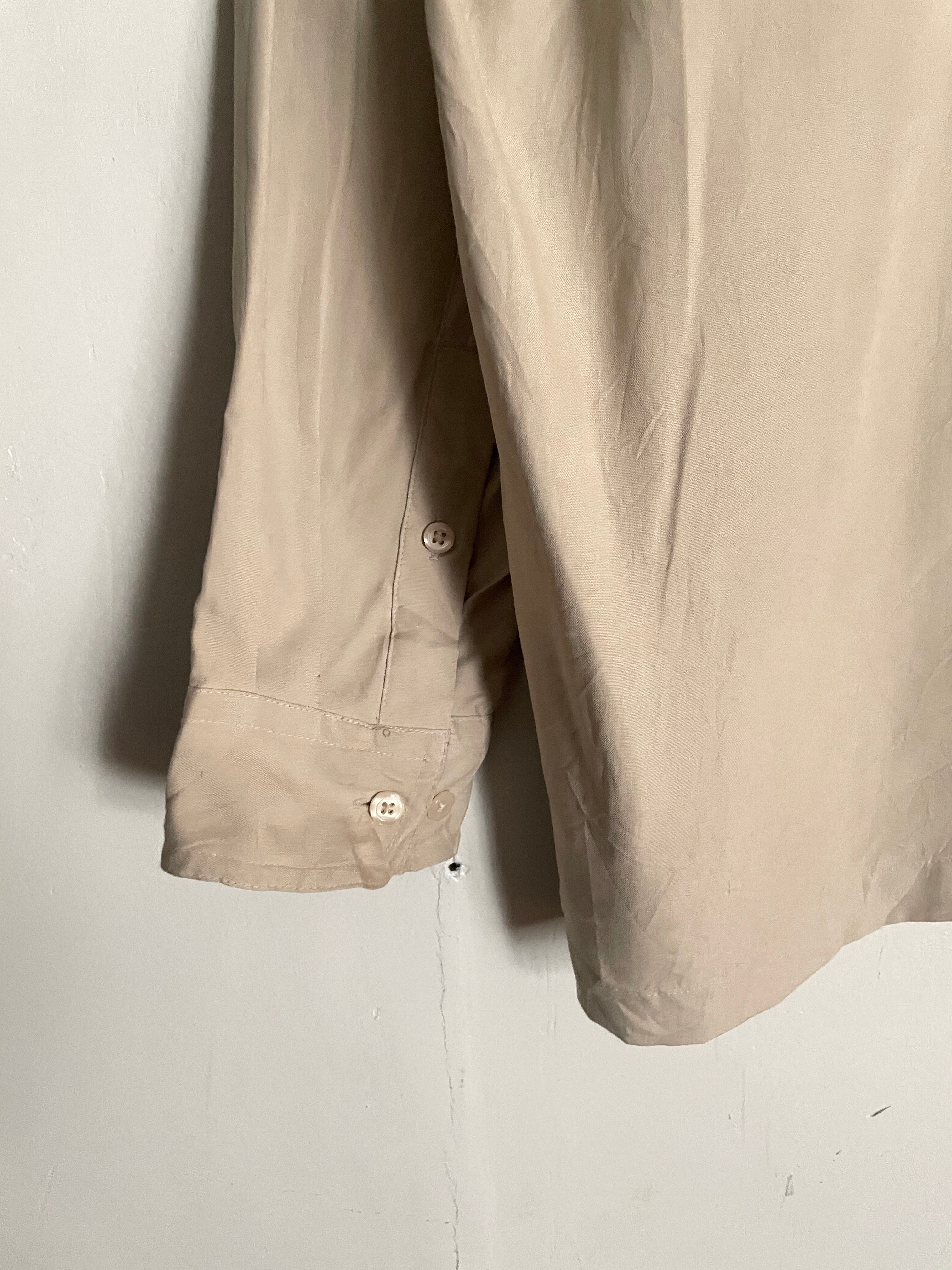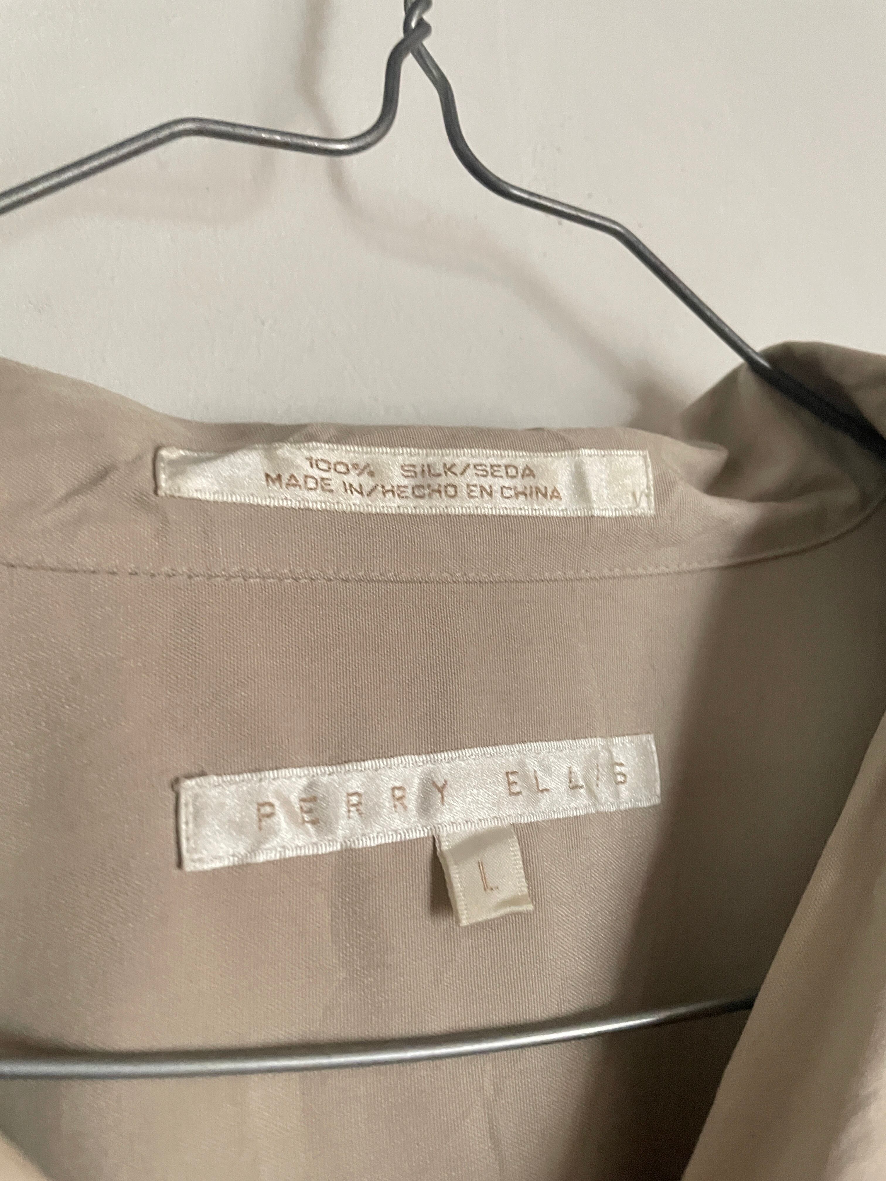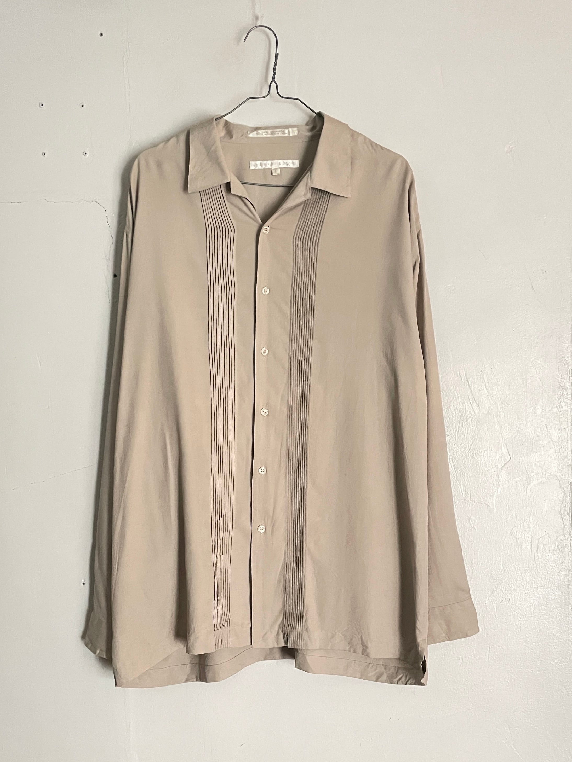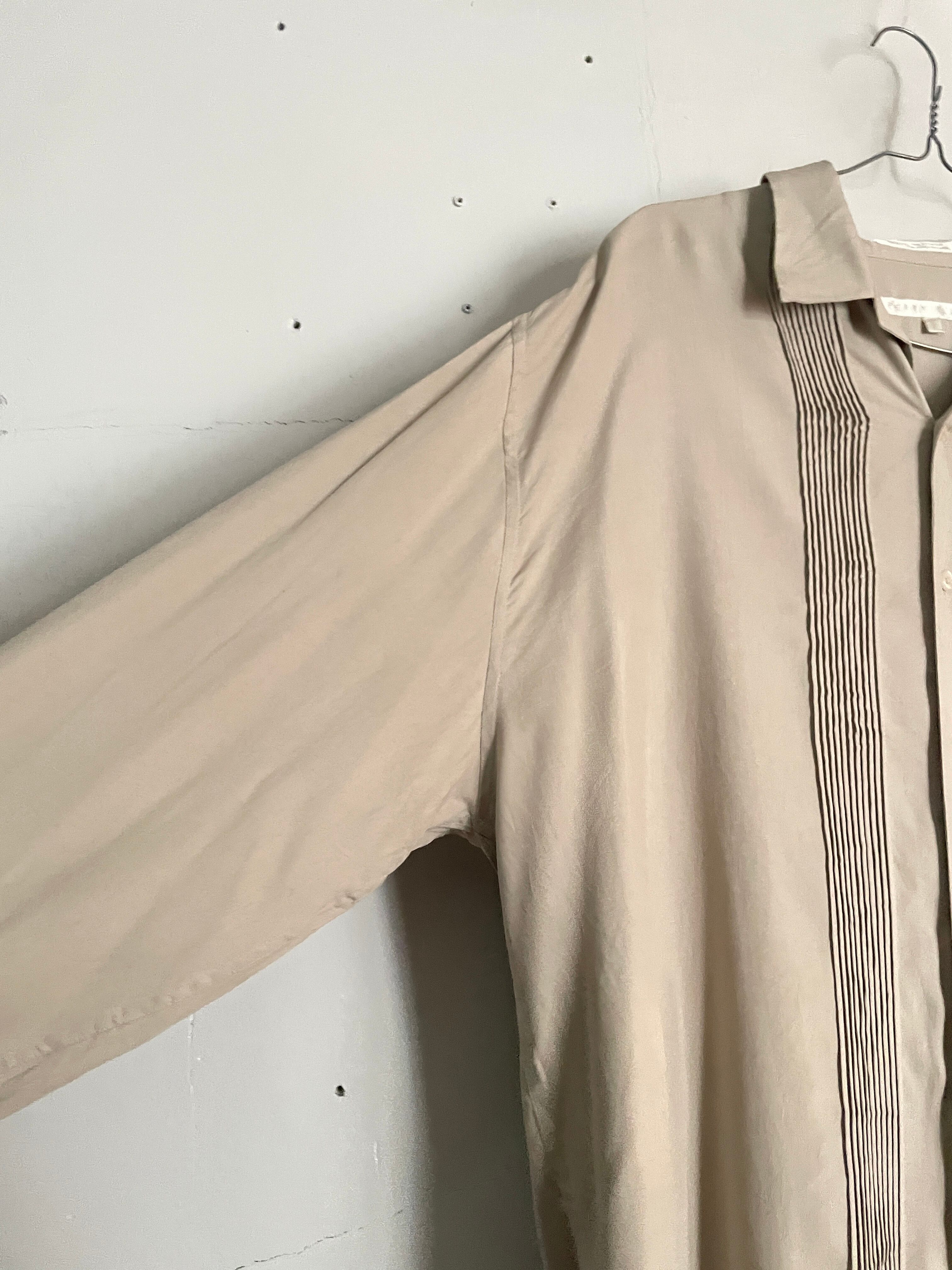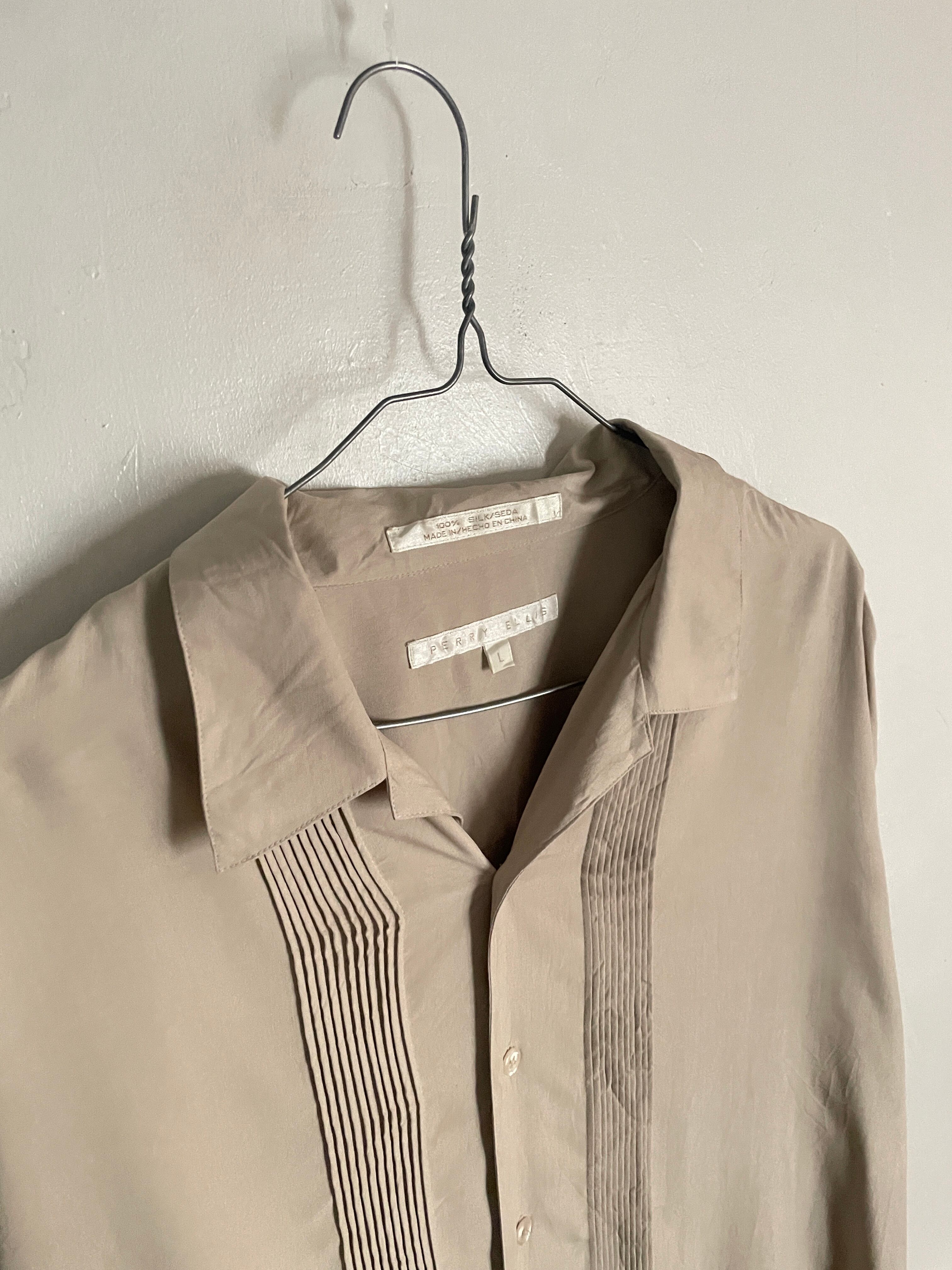 Old PERRY ELLIS Beige Pleats Design Silk L/S Shirt