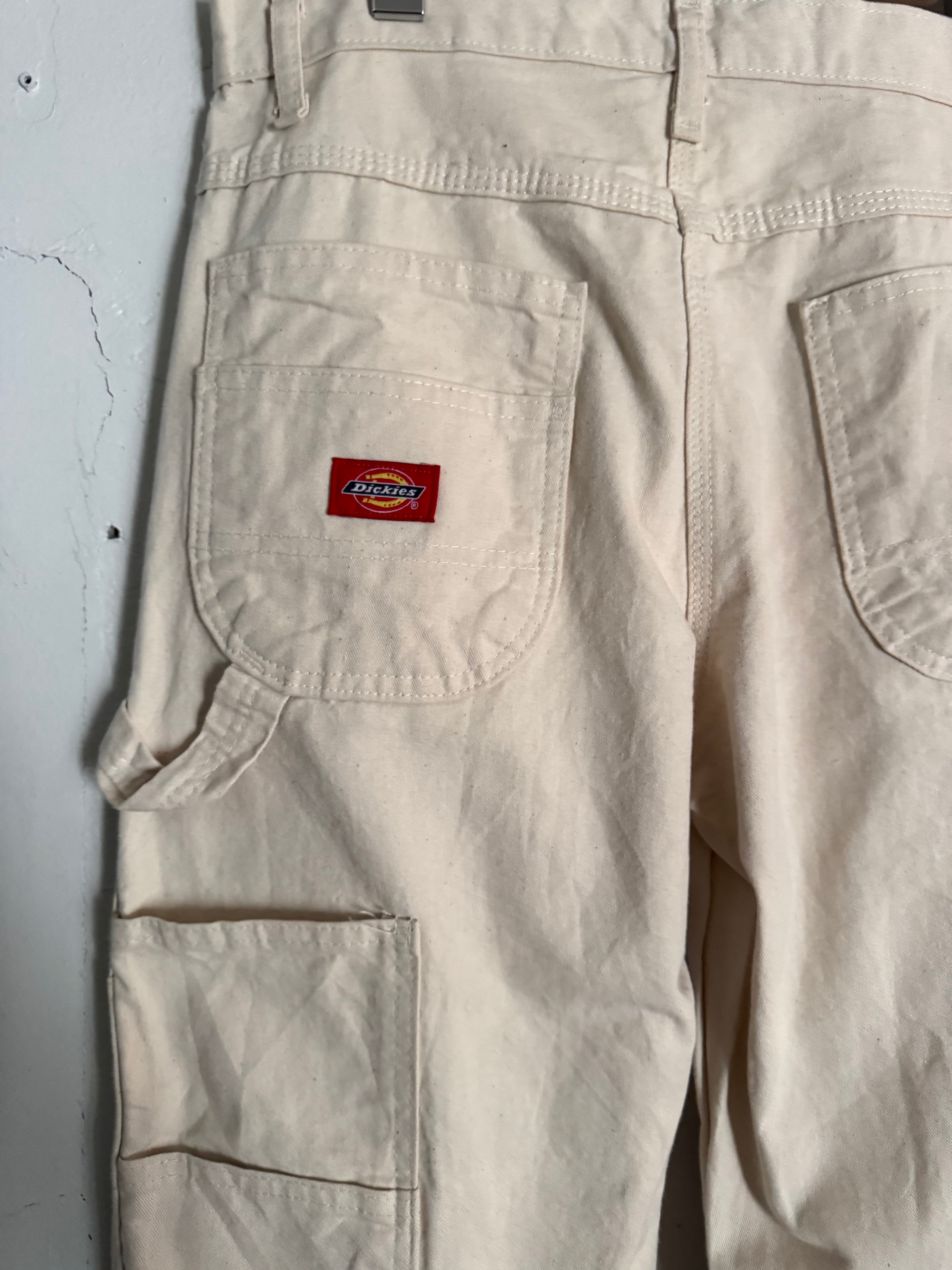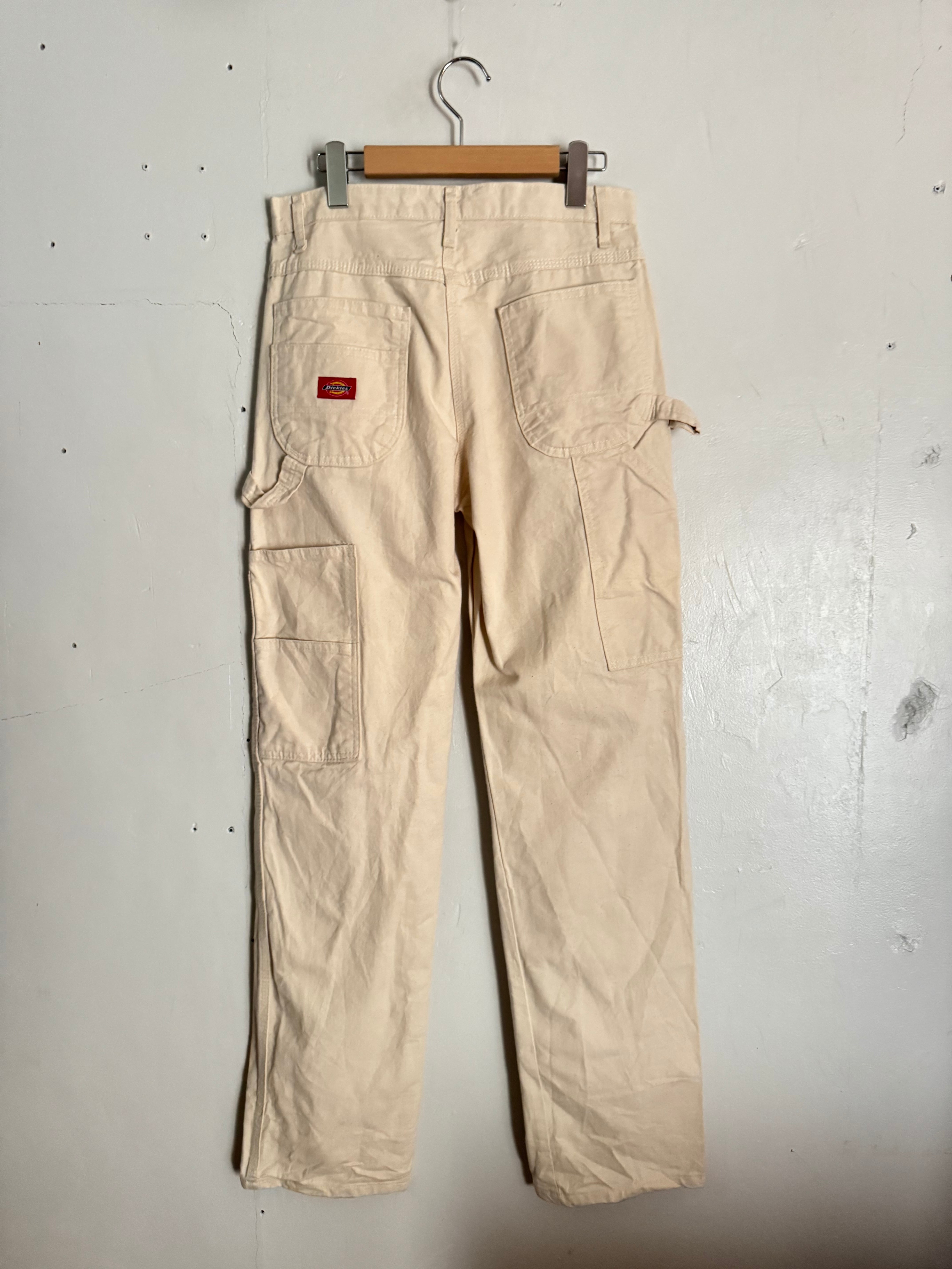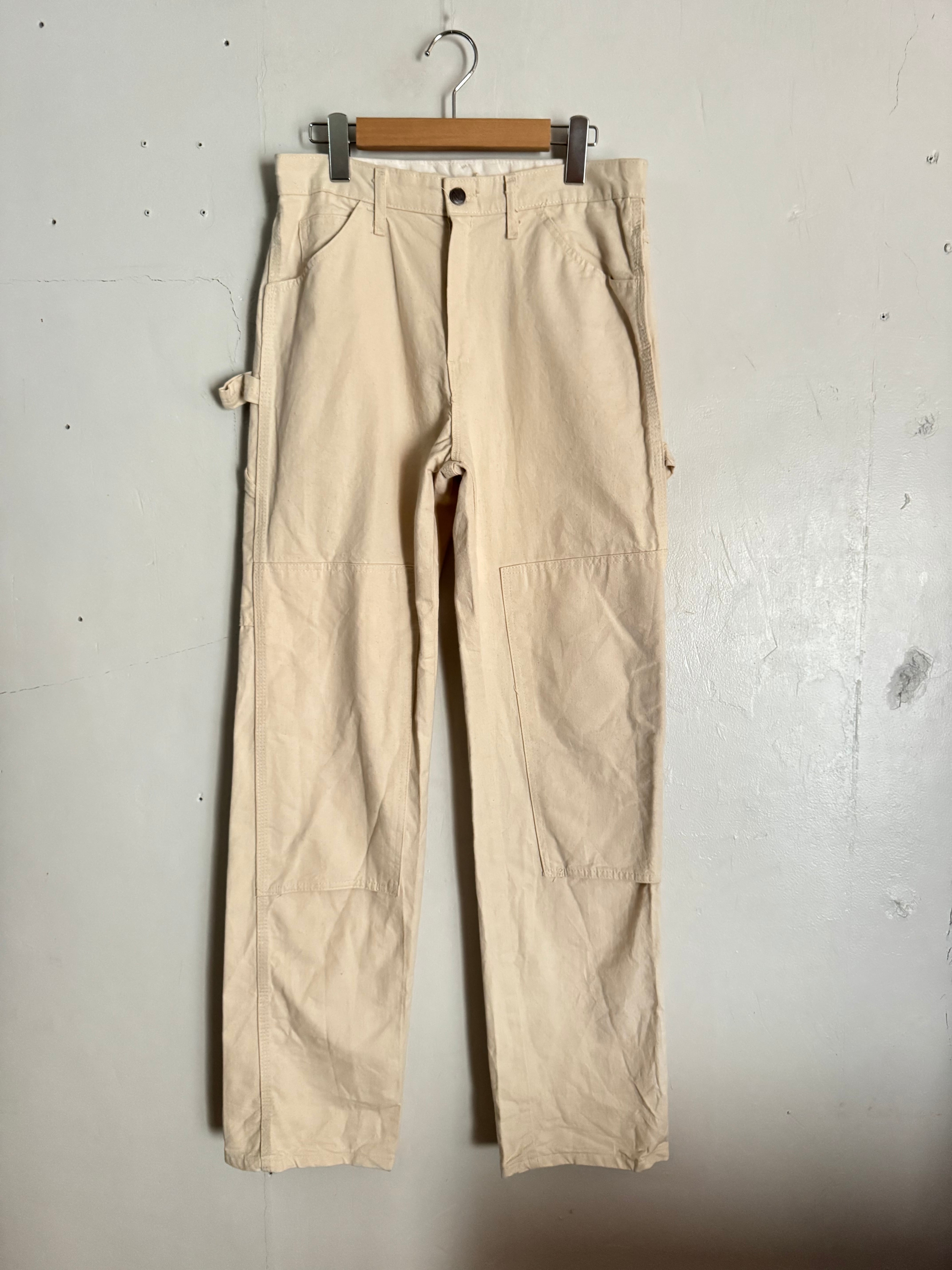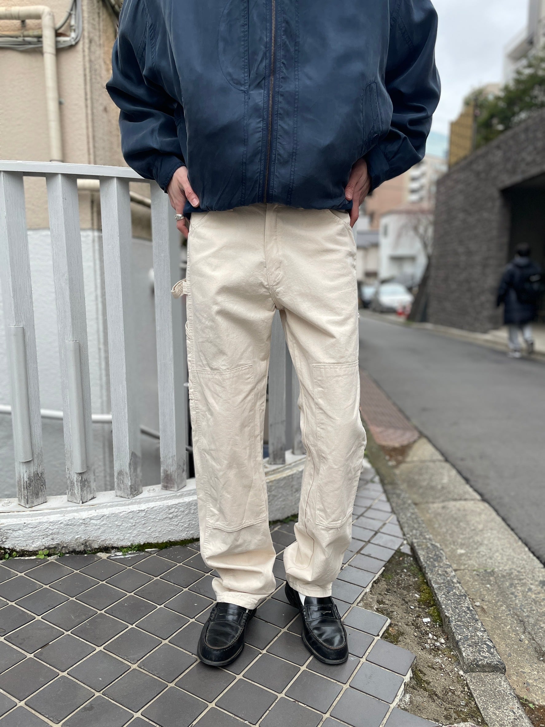 ディッキーズのホワイトカラーのダブルニーペインターパンツ。膝部分を二重に補強したダブルニー仕様は、本来は作業時の耐久性を高めるためのディテールで、タフな作りと無骨さが魅力です。さらにハンマーループやツールポケットなど、ペインターパンツ特有の実用的なディテールも備えています。ゆったりとしたストレートシルエットで、ワークスタイルはもちろん、ストリートや古着コーデにも取り入れやすい一本です。