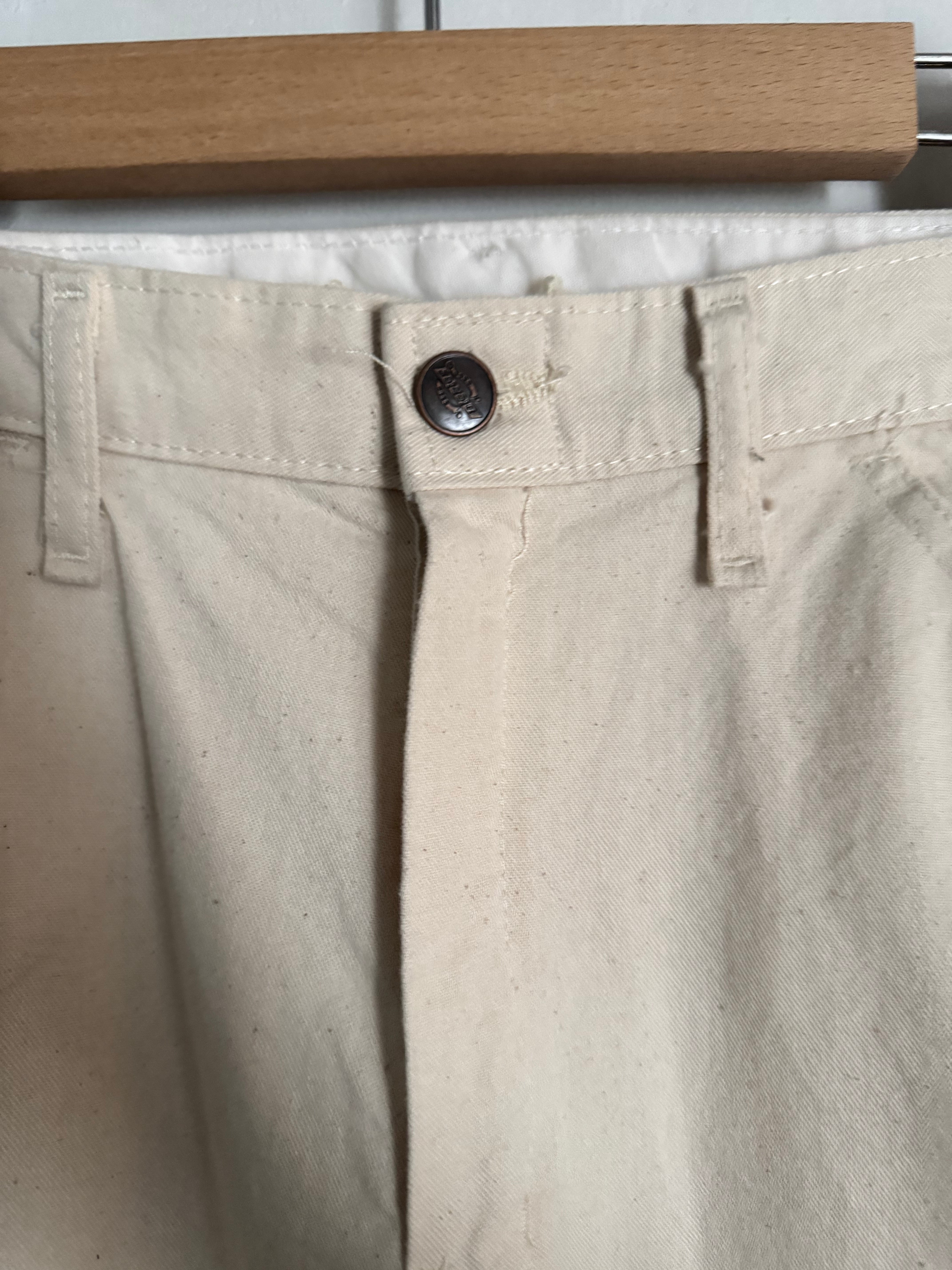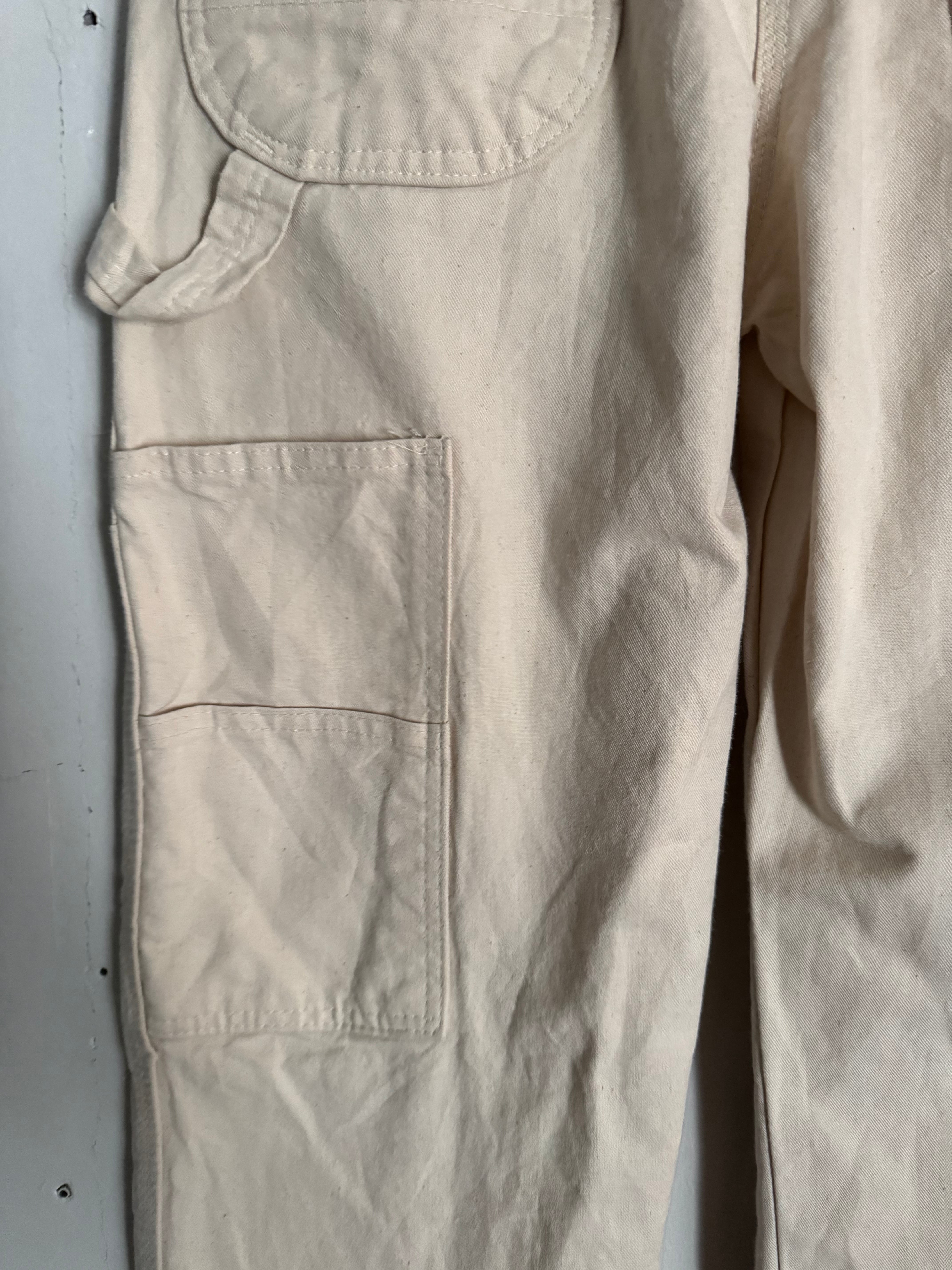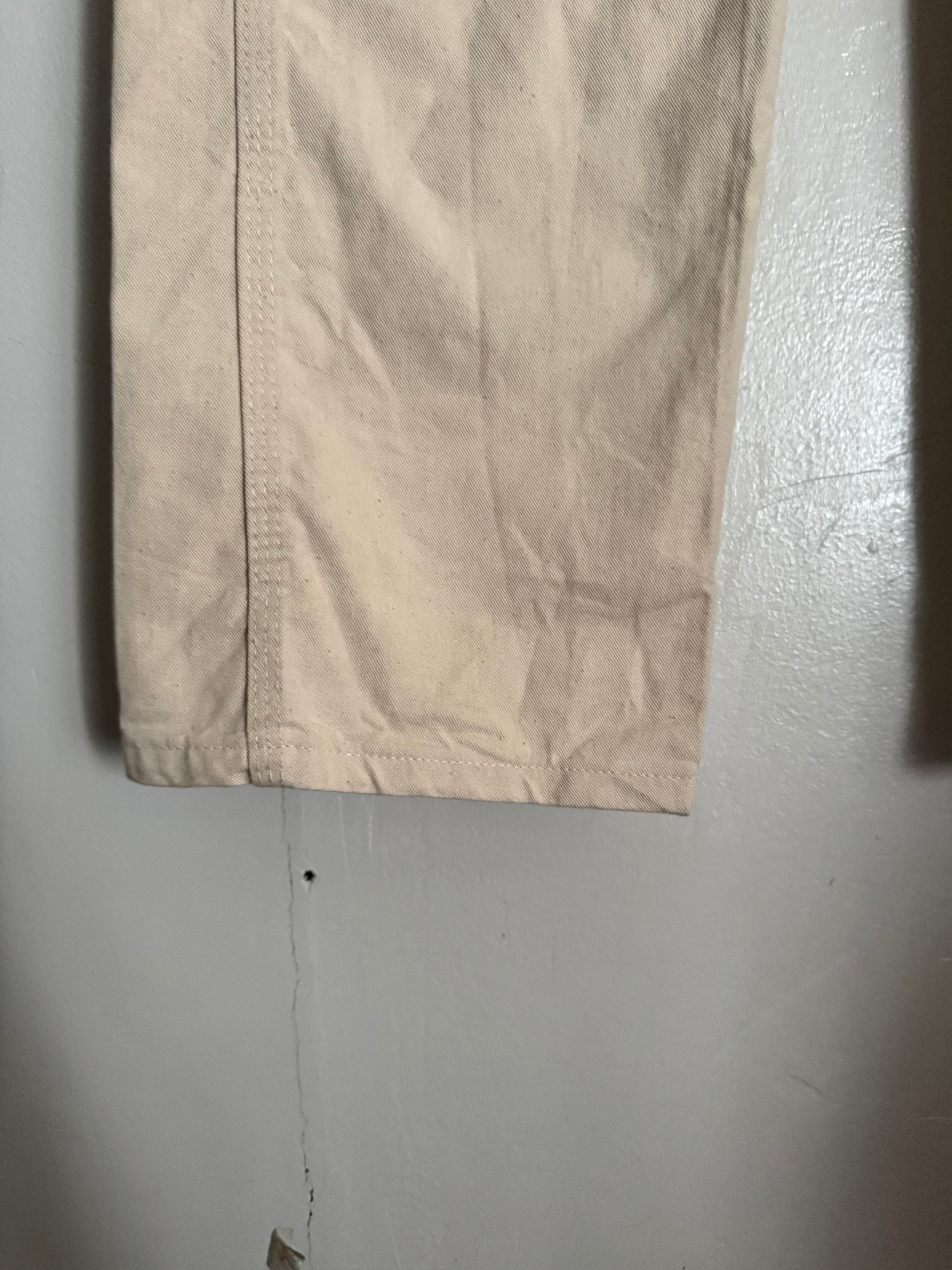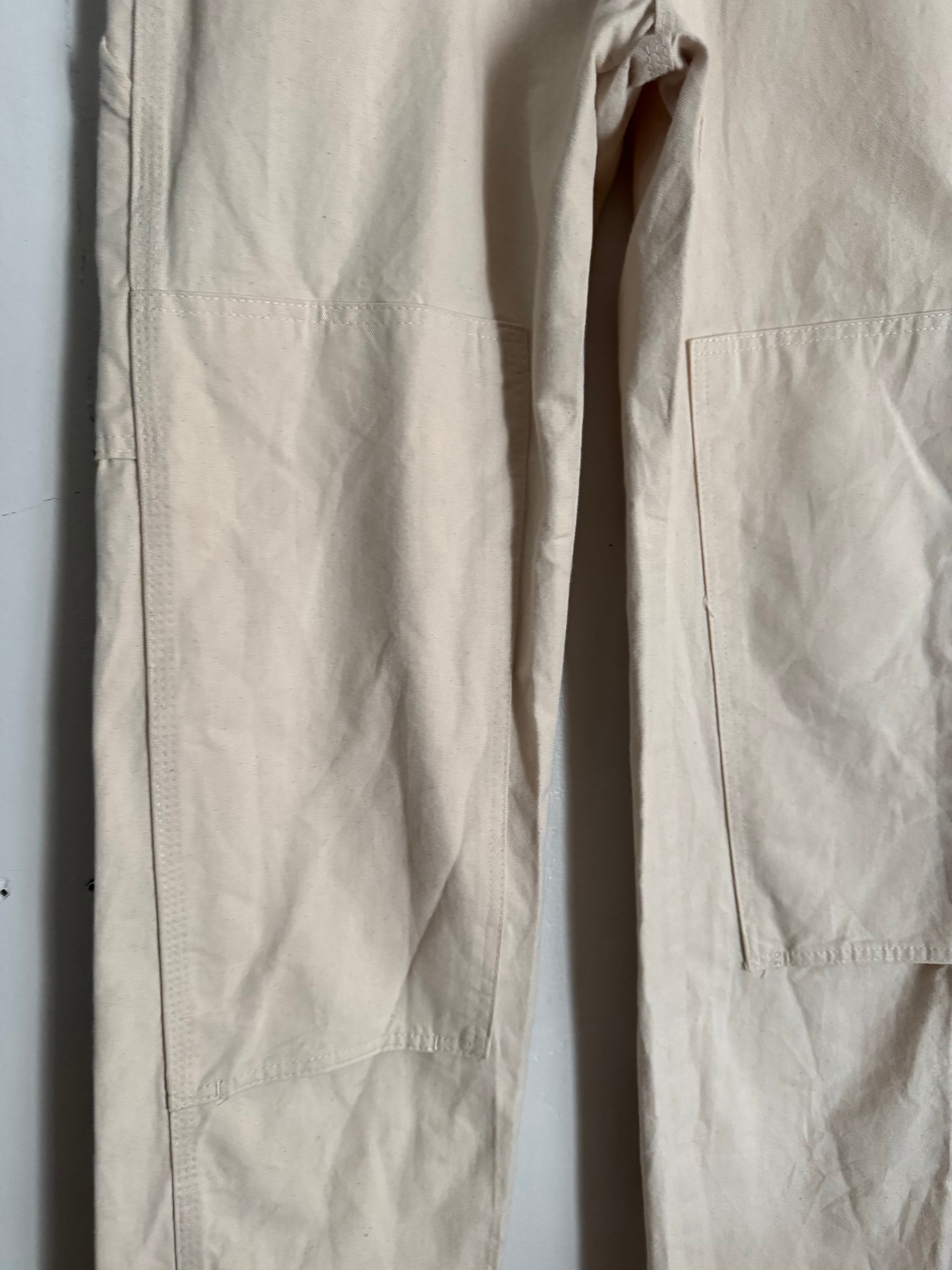 ディッキーズのホワイトカラーのダブルニーペインターパンツ。膝部分を二重に補強したダブルニー仕様は、本来は作業時の耐久性を高めるためのディテールで、タフな作りと無骨さが魅力です。さらにハンマーループやツールポケットなど、ペインターパンツ特有の実用的なディテールも備えています。ゆったりとしたストレートシルエットで、ワークスタイルはもちろん、ストリートや古着コーデにも取り入れやすい一本です。