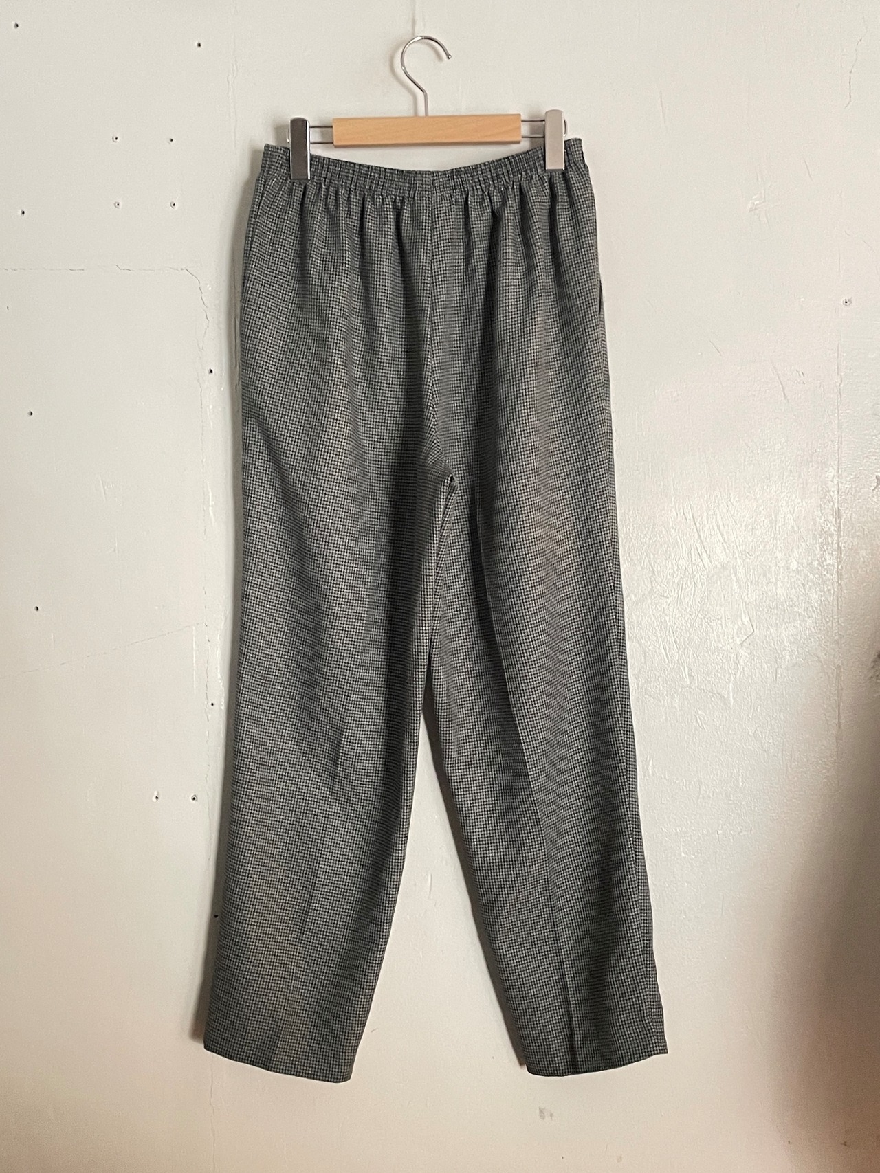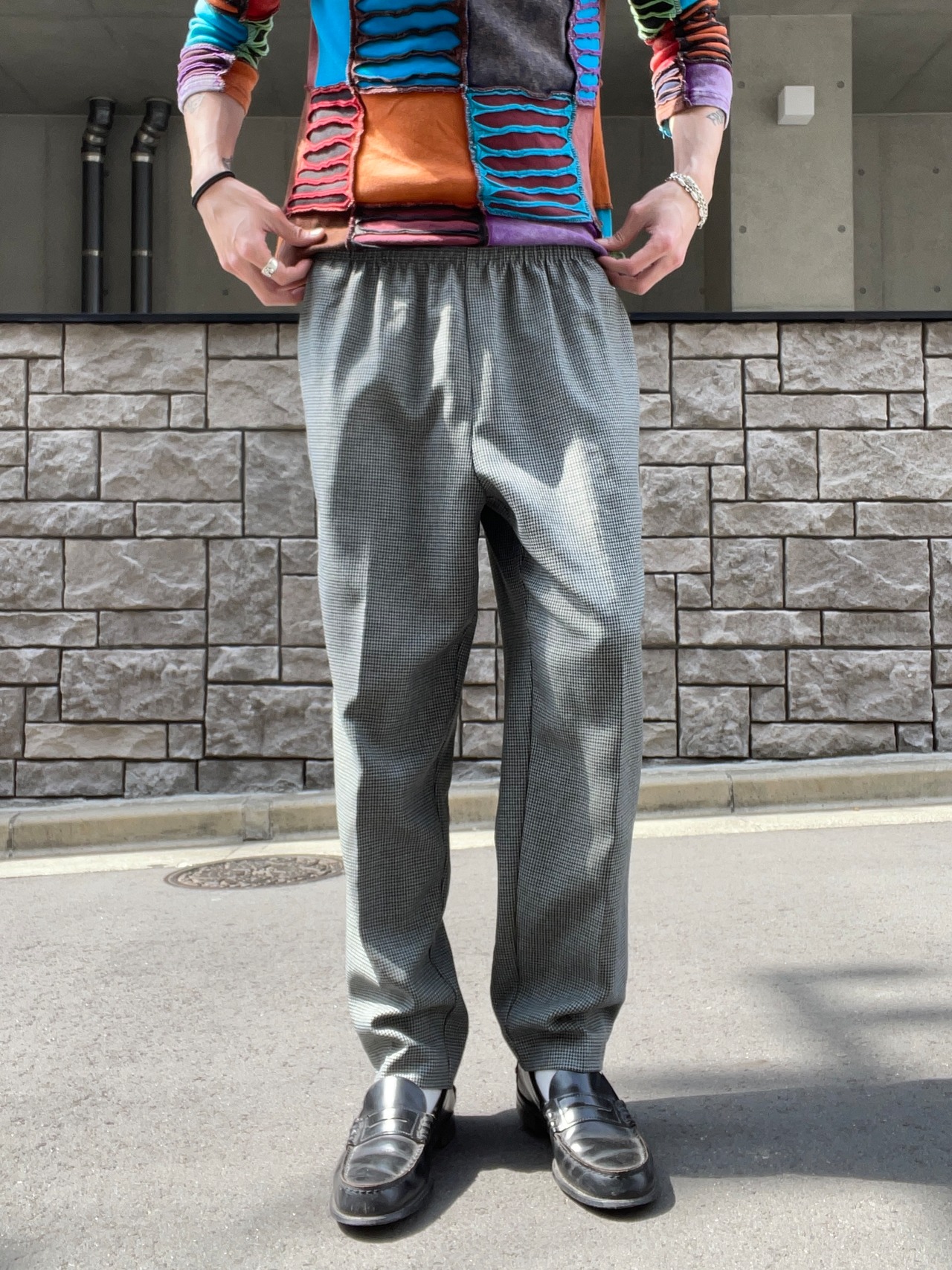 渋さのある細かな千鳥格子柄デザインが魅力的なイージーパンツ。ウエストにはゴム入りで、楽に履けるのが嬉しいポイントです。ファッションに良い緩さを出してくれます。股上深めなゆったりとしたシルエット。春には涼しげに履ける一本です。USA製なのもポイントが高いです。