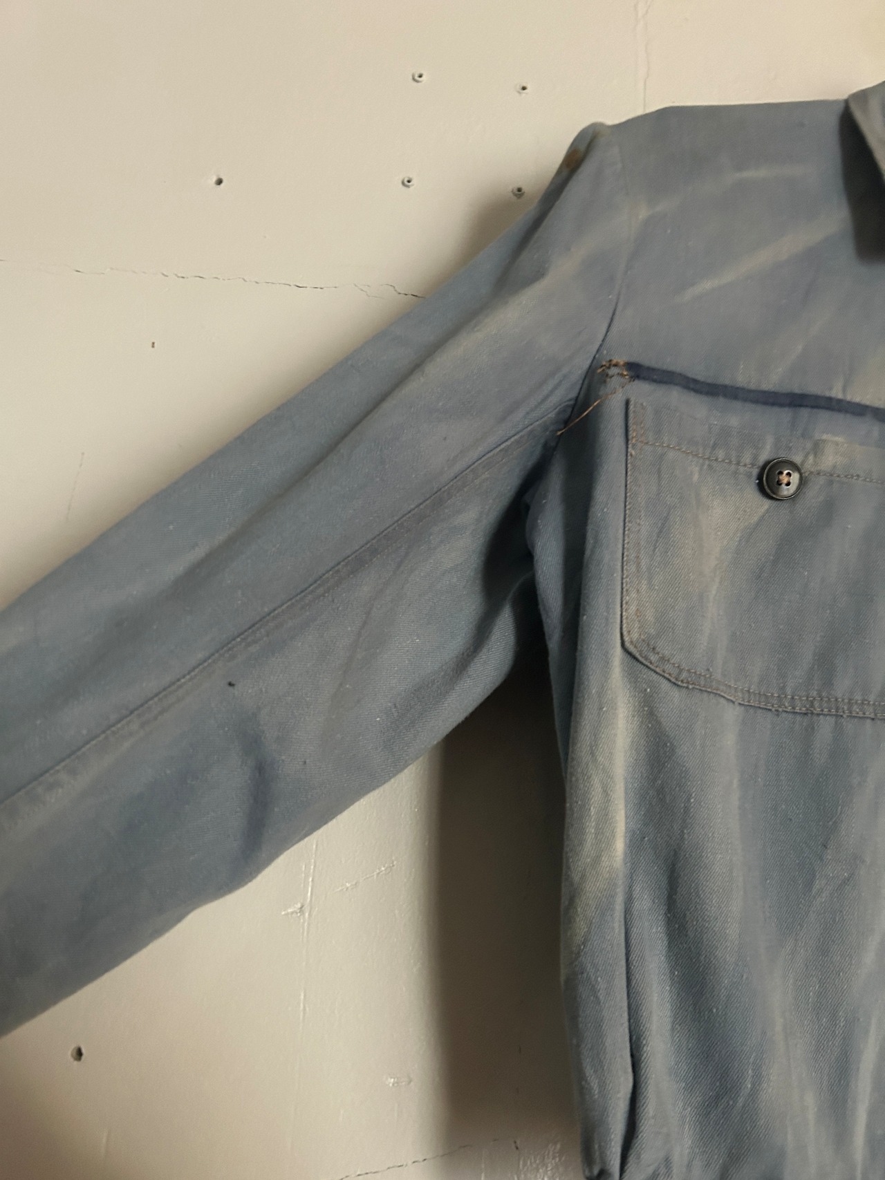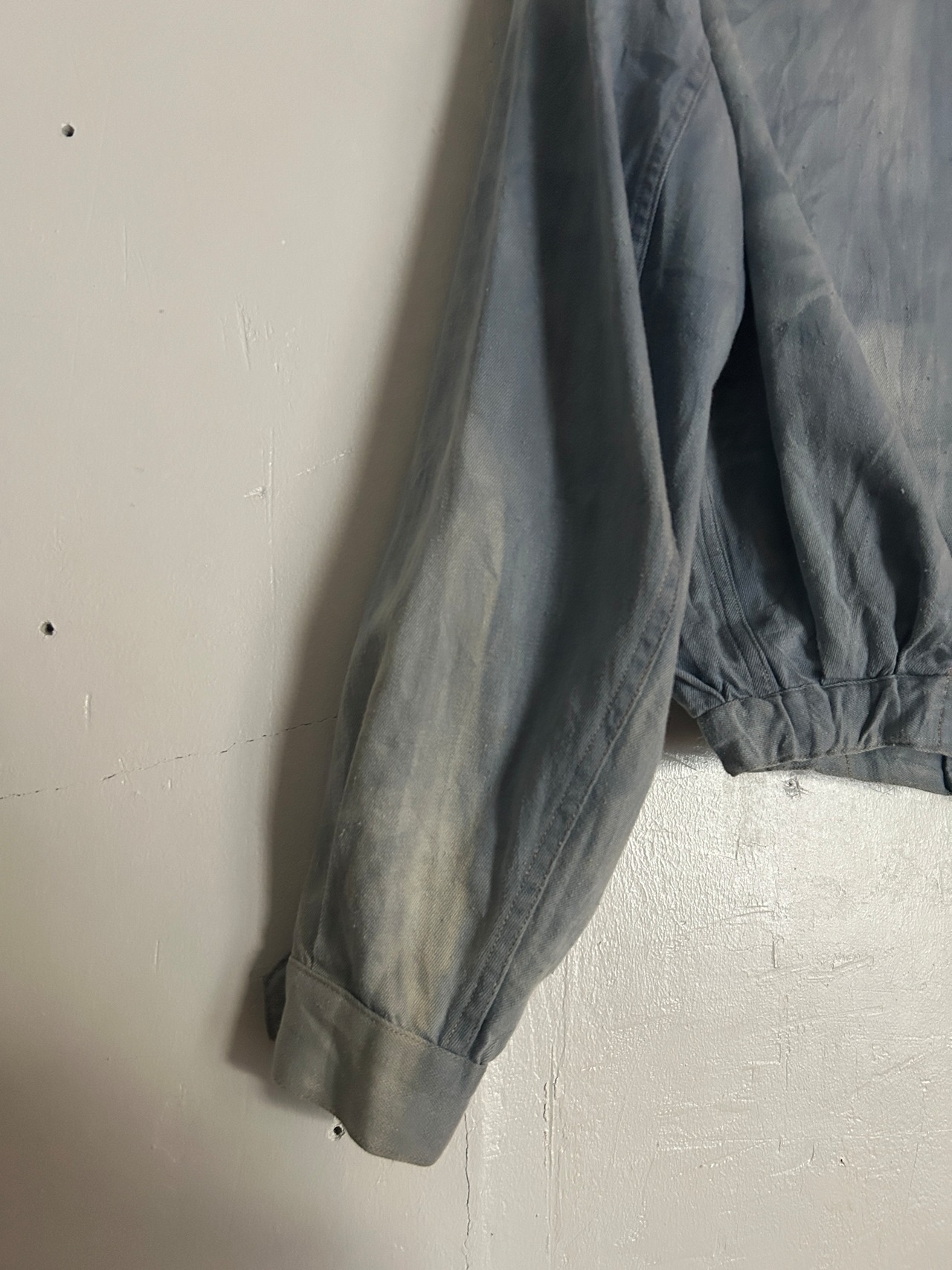 ビンテージの上海製ワークジャケット。雰囲気ぷんぷんな1点。シンプルですが色落ちや使用感がたまらないです。コンパクトなシルエットでスタイルアップ効果もあり、ハイウエストのボトムスとの相性◎。開けてさらっと羽織るもよし、閉めてもよし。