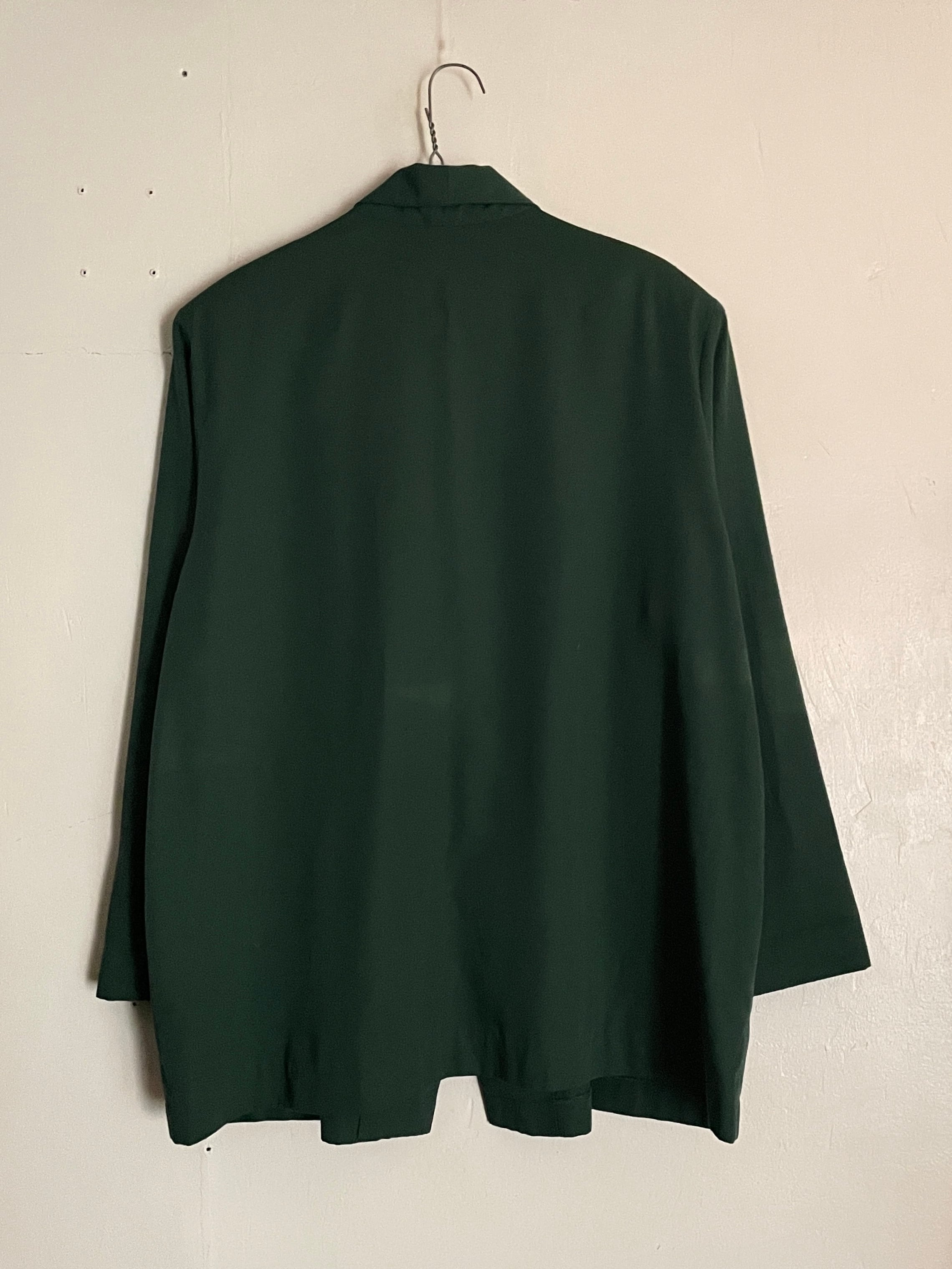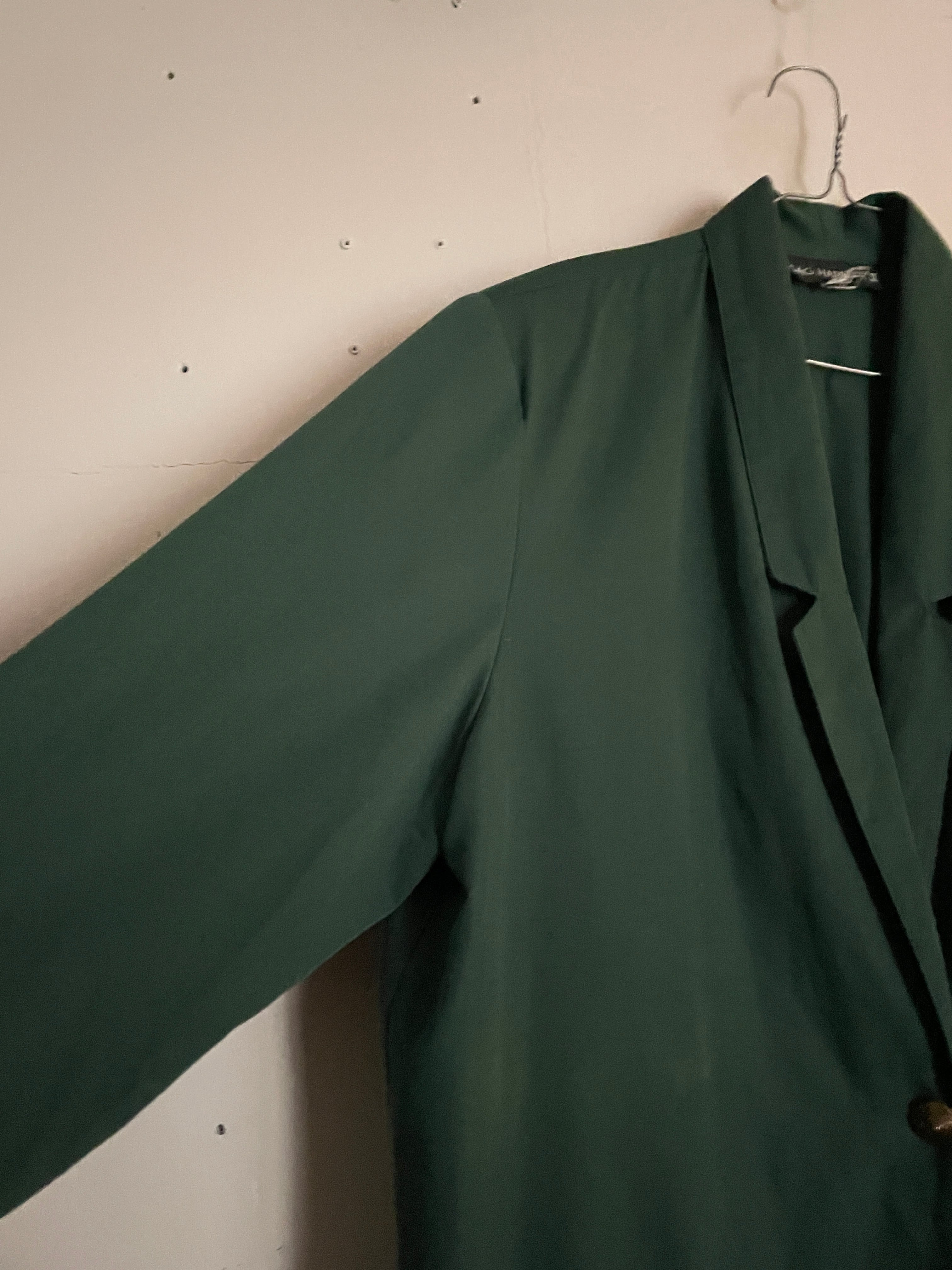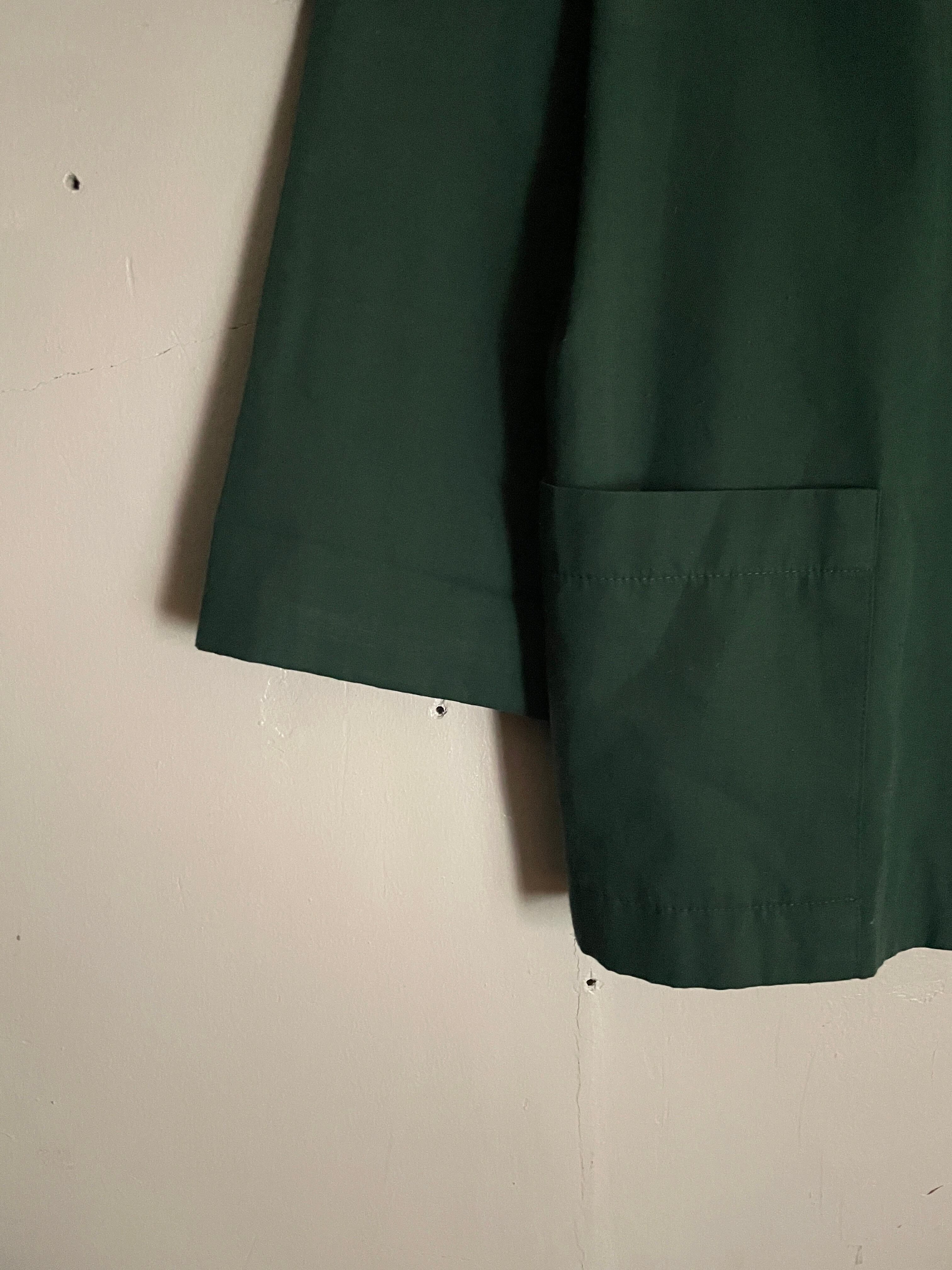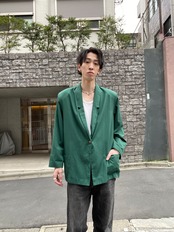 綺麗なグリーンボディで、サラッとした着心地の良い素材感が魅力的なテーラードジャケット。これからの季節シャツ感覚で着られそうです。明る過ぎず、暗過ぎない絶妙なグリーンカラーがグッドです。ゆったりとラフに着られるサイズ感で、綺麗めやストリートなど、様々なファッションに取り入れやすいアイテムかと思います。