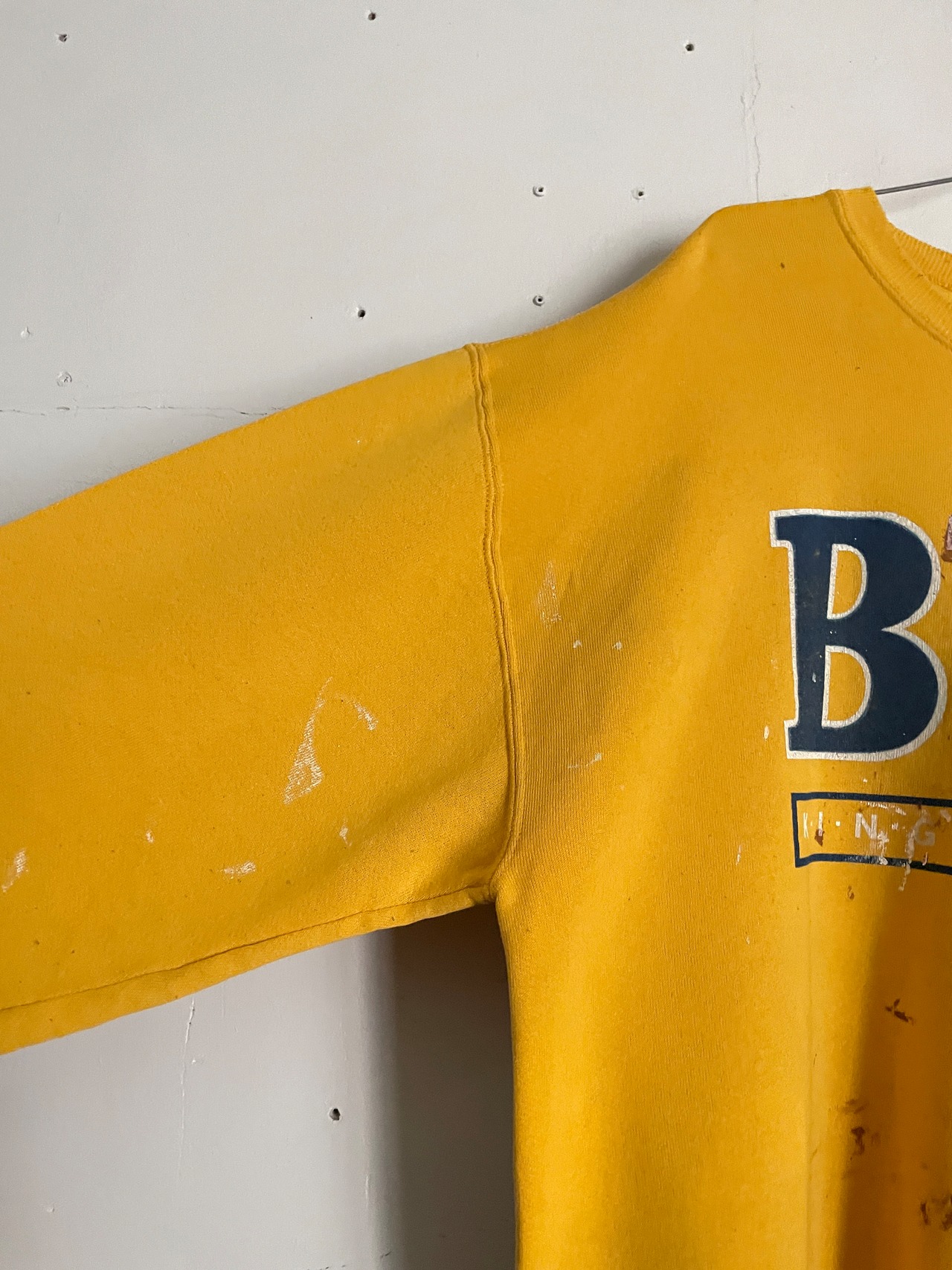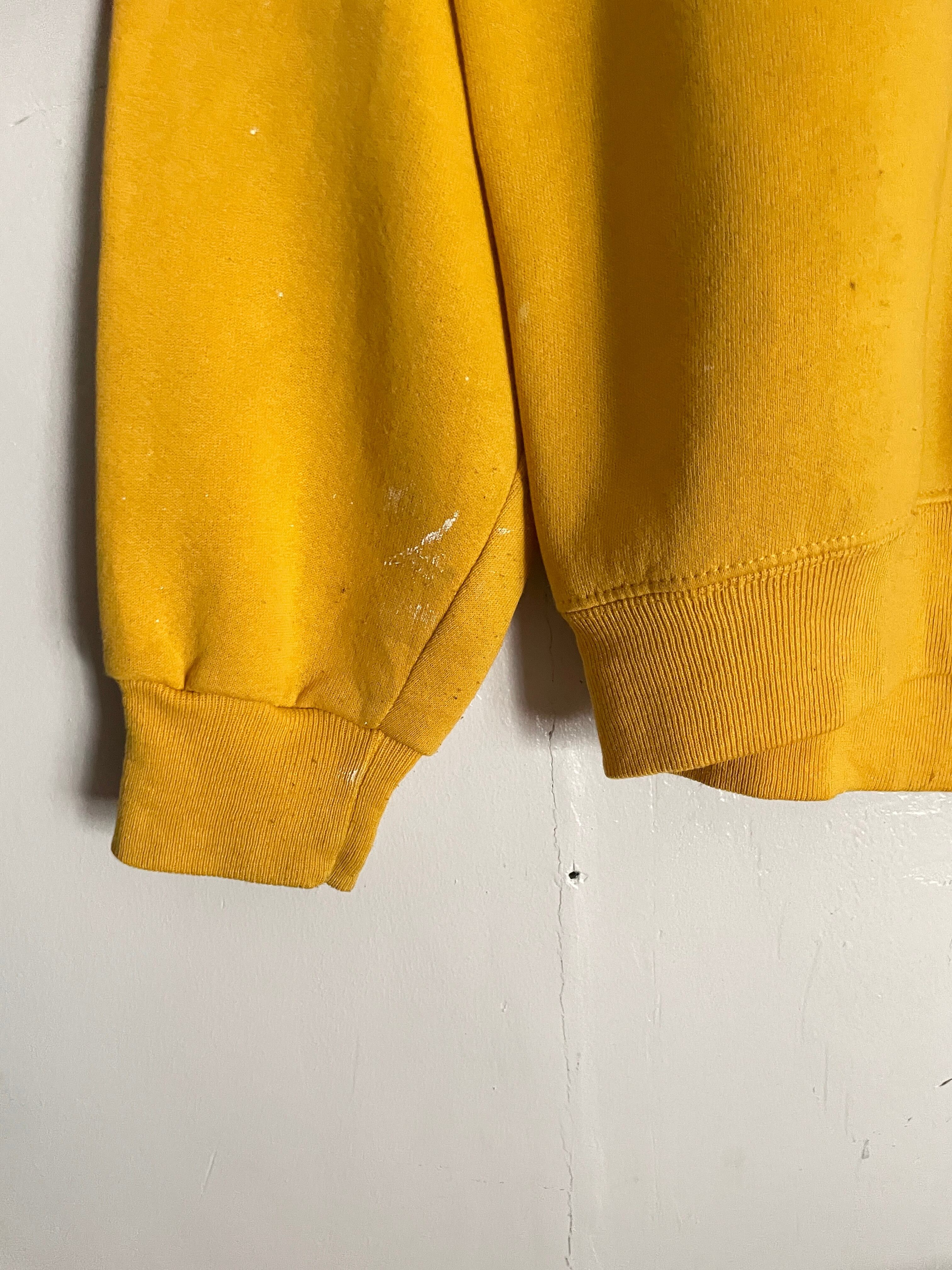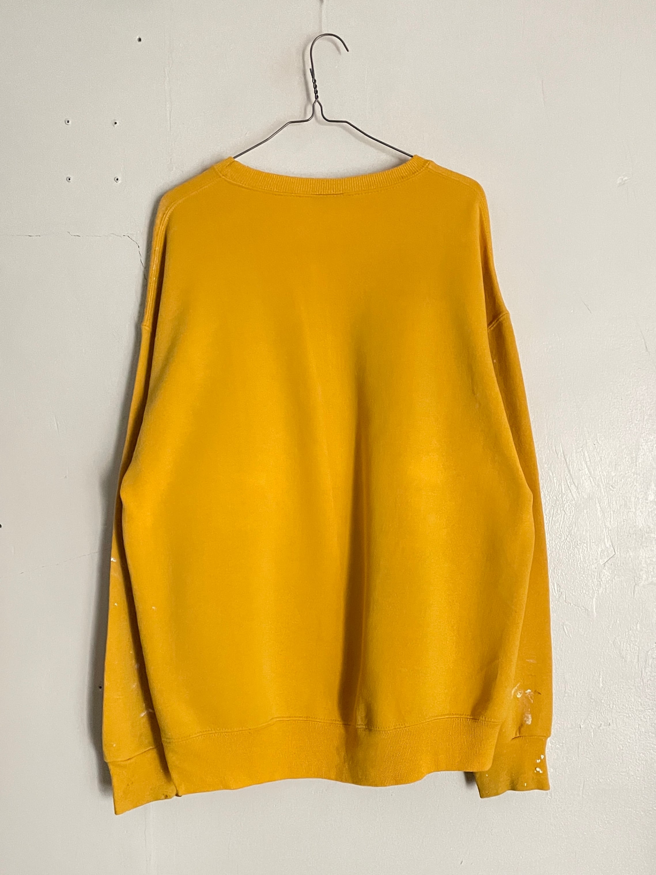明るいイエローボディに、アメリカのビールブランド”バドワイザー”のロゴプリントと、ペイントデザインが施されたスウェット。ネイビーとホワイトの縁取りが施された”BUD"が魅力的。あえて雑なペイントが堪らなくクールです。センスが感じられます。コットンポリの柔らかく肌触りの良い素材感。ゆったりとしたサイズ感なので、今の時期には一枚でラフ着られそうです。USA製なのもポイントが高いです。