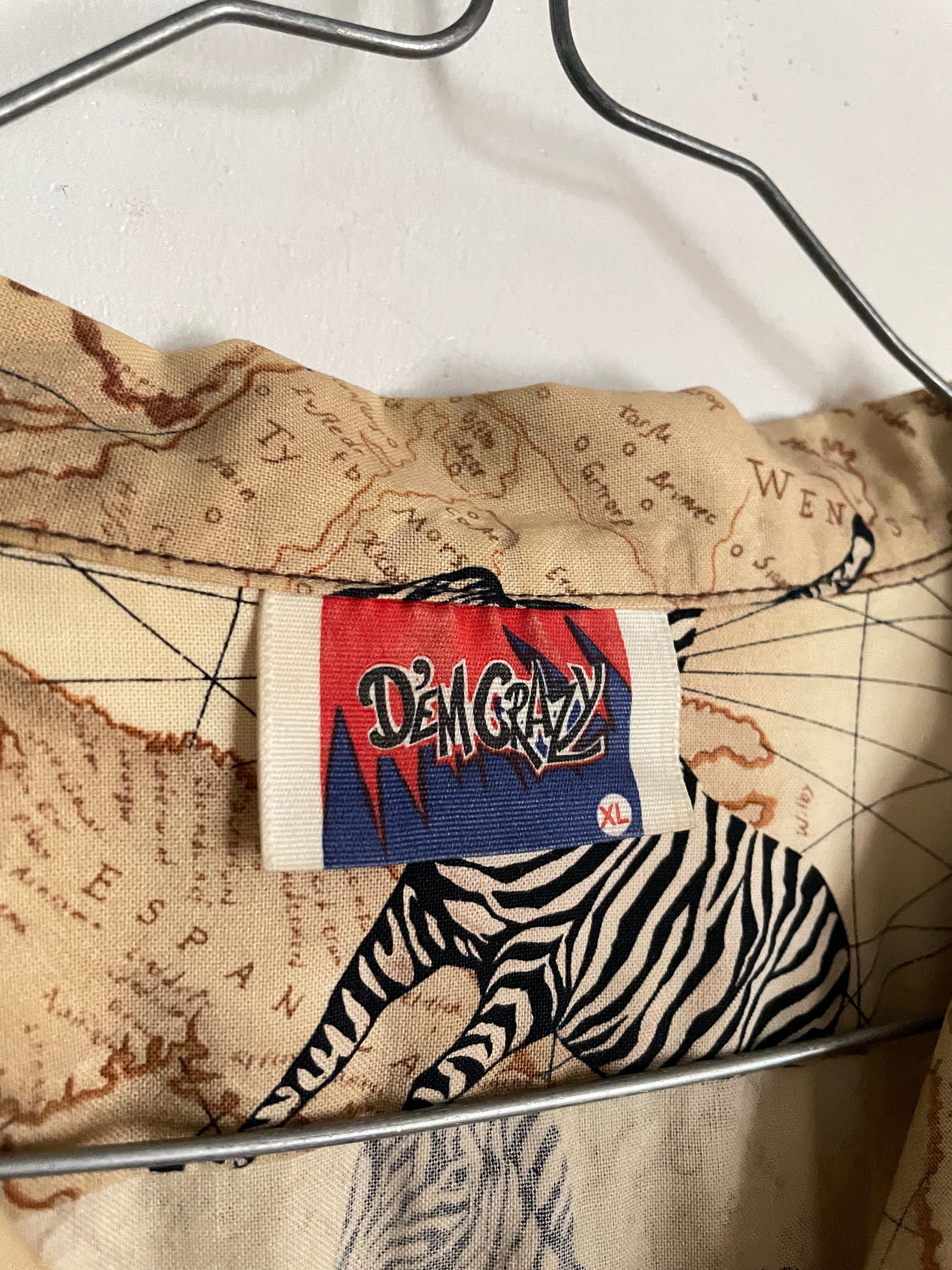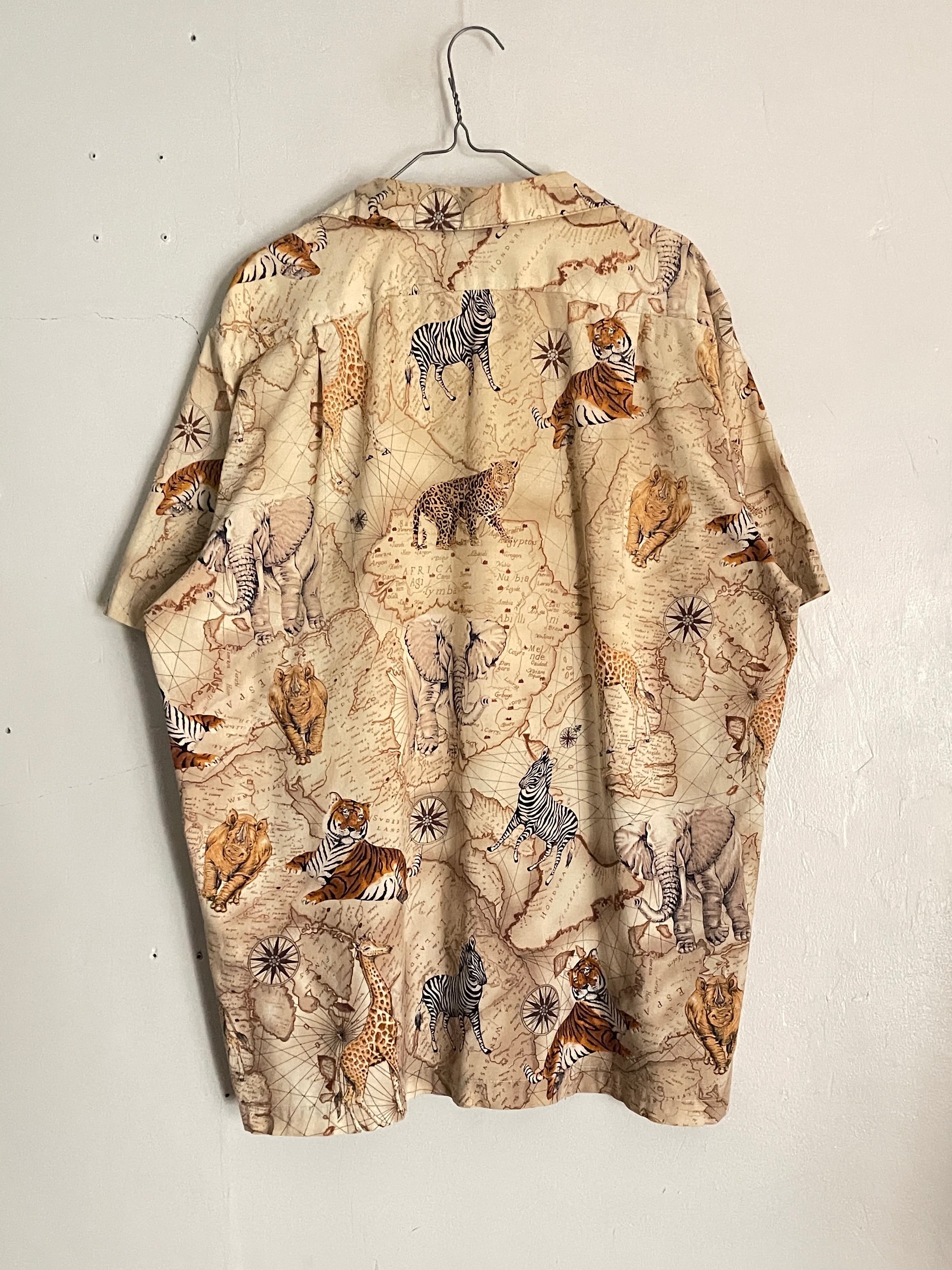 Old Dem Crazy Map Animal Pattern Design Open Collar S/S Shirt