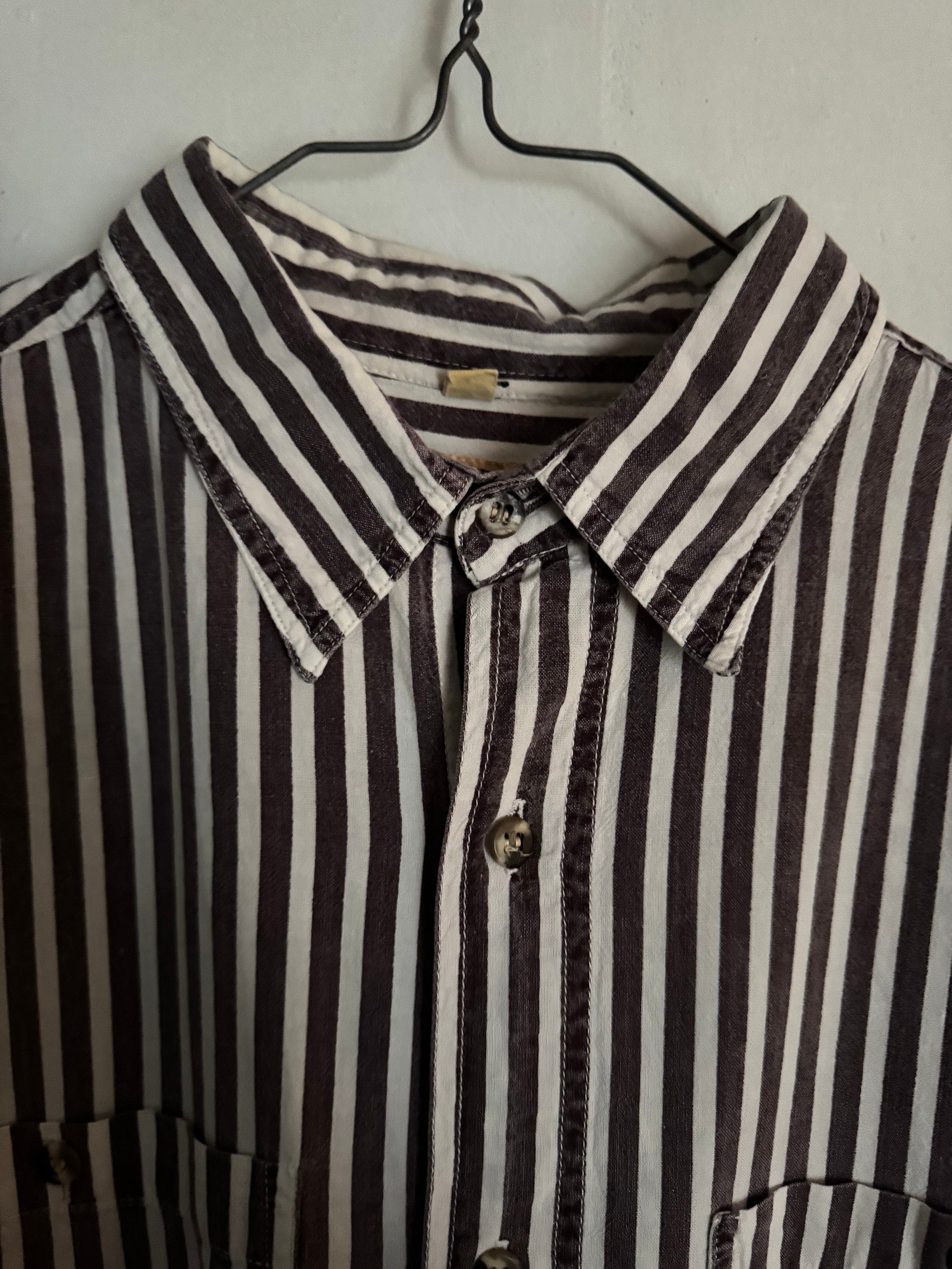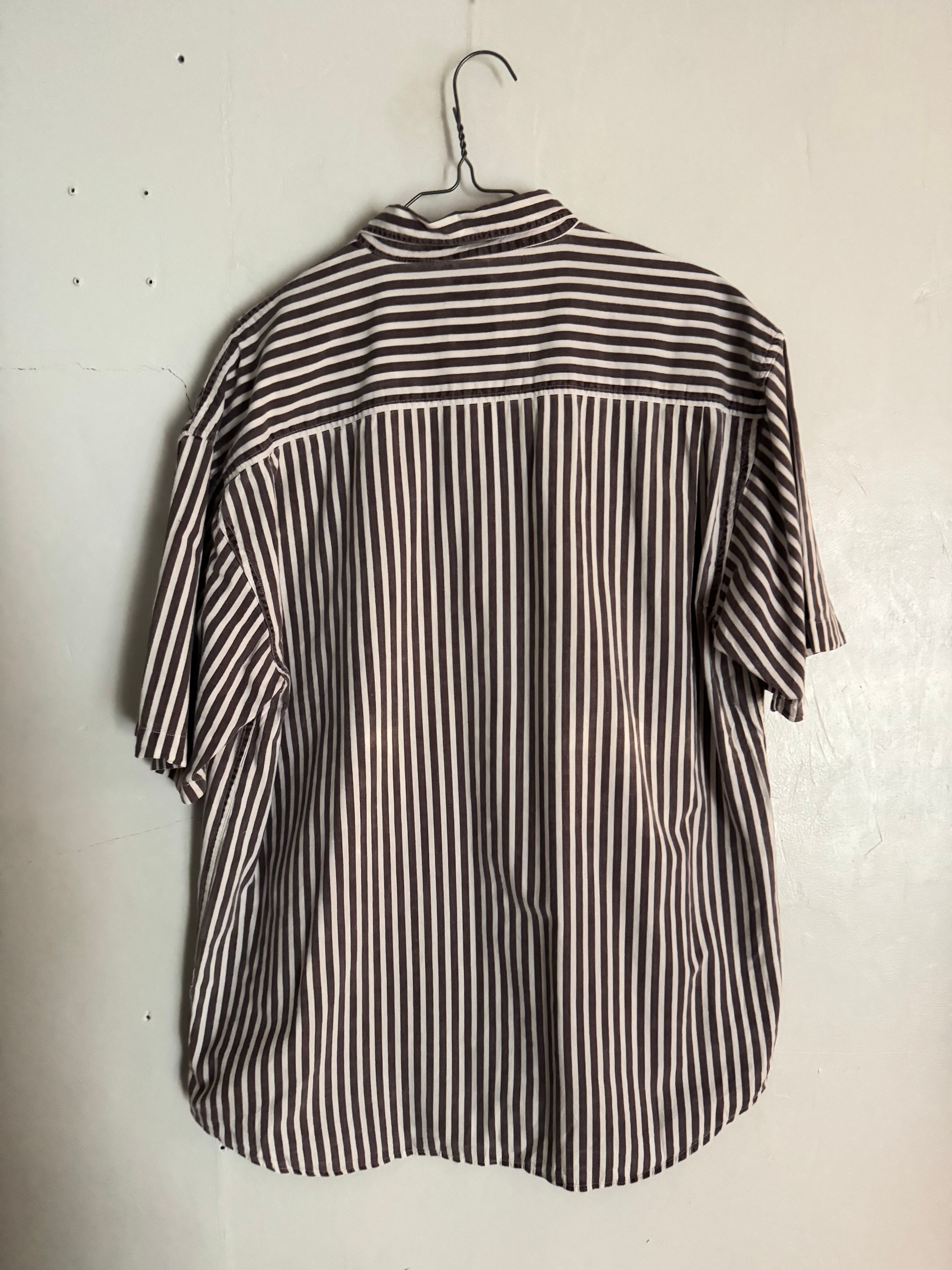 グレーと白のストライプが印象的な半袖シャツ。程よくゆとりのあるシルエットに、フロントのダブルポケットがワークテイストをさりげなくプラスしています。コットン素材ならではの軽やかさと通気性で、春夏シーズンに快適に着用可能。シンプルながらも色味と柄でしっかり個性を演出でき、1枚でスタイリングの主役になれるアイテムです。カジュアルにも綺麗めにも振れる汎用性の高さも魅力的な一着。