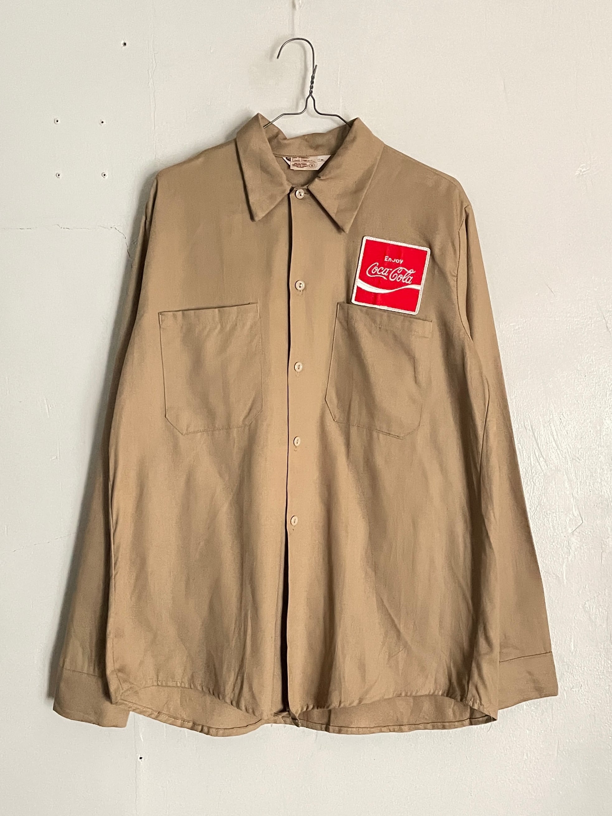 ベージュボディに、コカ・コーラのワッペンが付いたワークシャツ。ワッペンの位置や大きさなどからはセンスが感じられます。両胸にはデカポケット付き。嬉しいポイントです。丈夫なコットン素材で、ゆったりとしたサイズ感。今の時期には一枚でもインナーとしても活躍してくれるアイテムです。