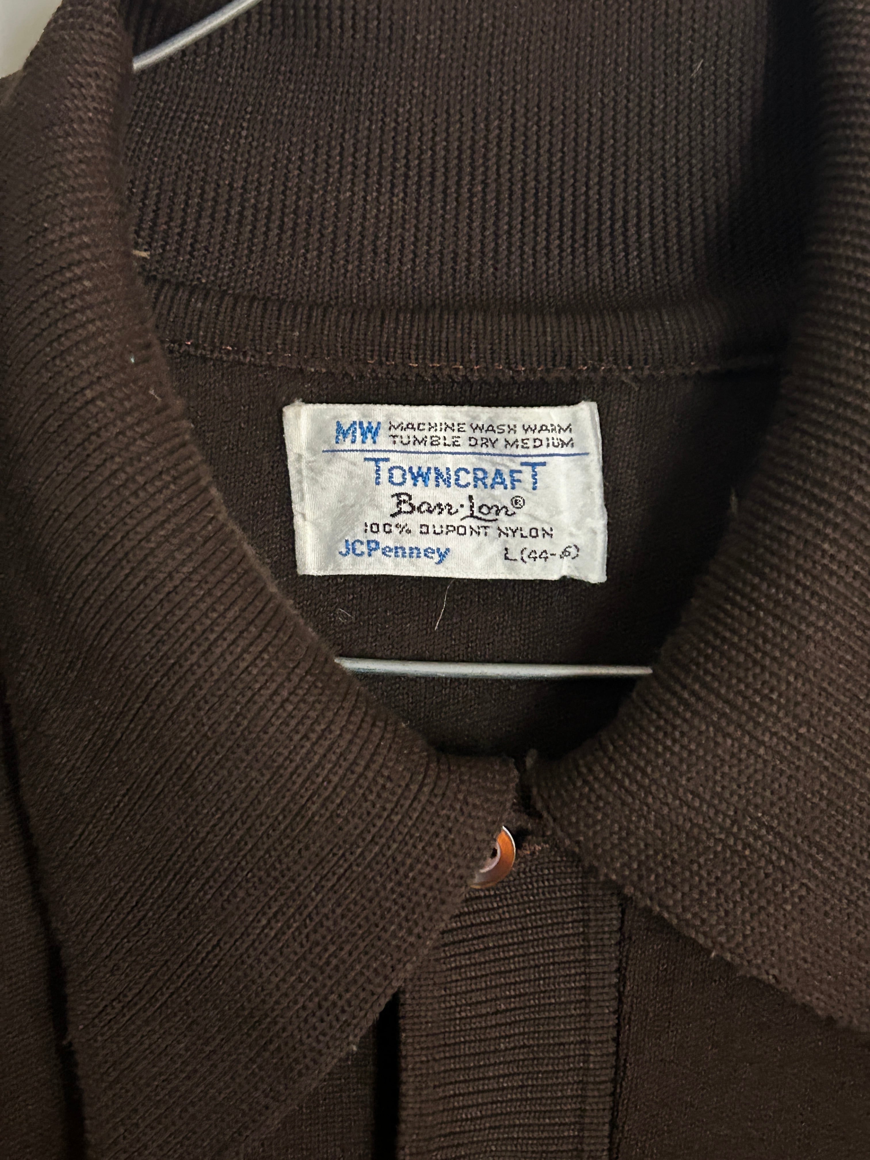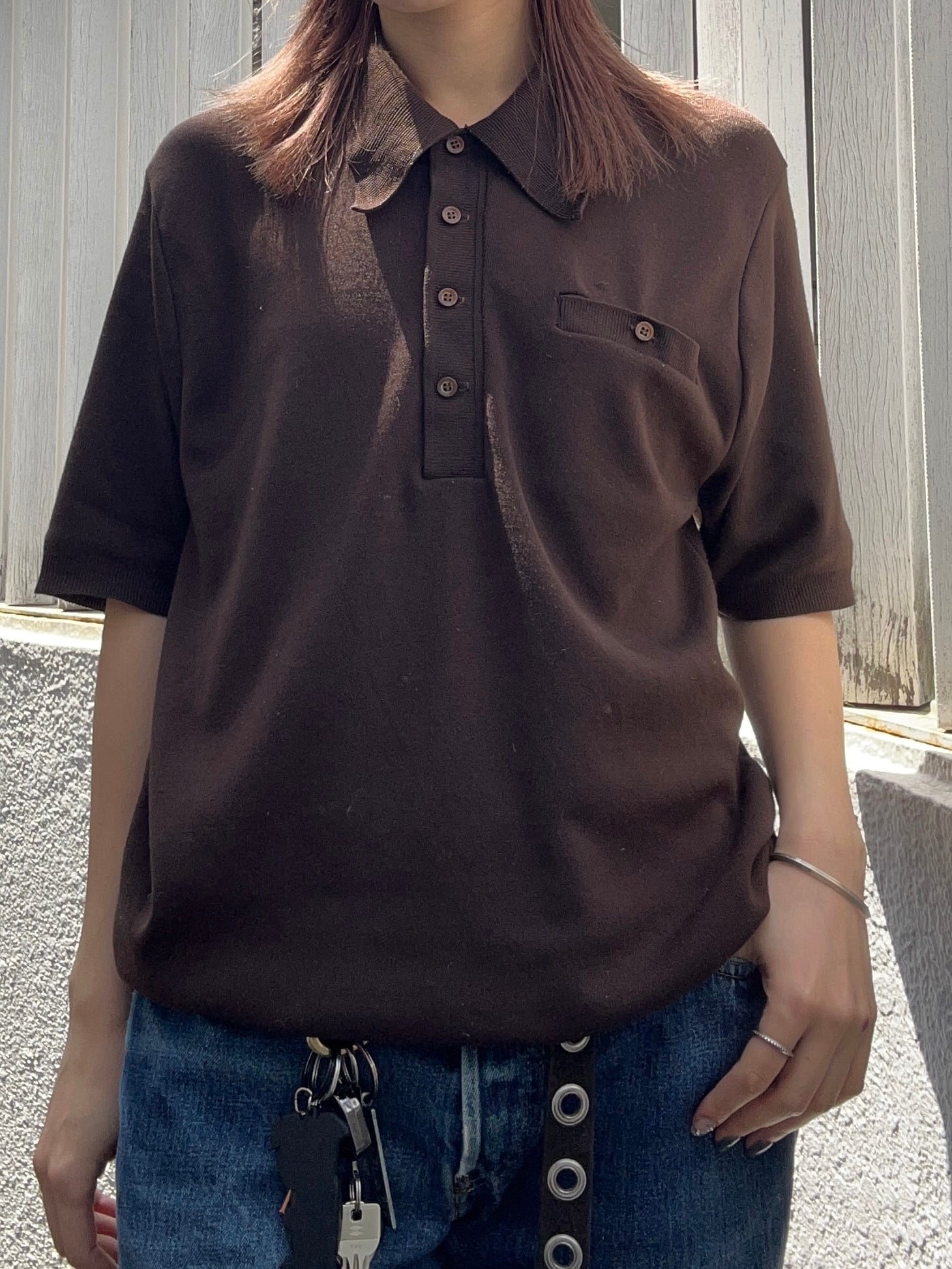 70年代のTOWNCRAFTのニットポロです。ビンテージながら状態も良く、柔らかくなめらかなニット生地が上品さとリラックス感を両立。ダークブラウンの無地でシンプルながら胸ポケットやボタンディテールがさりげないアクセントになっている渋カッコいい一着。