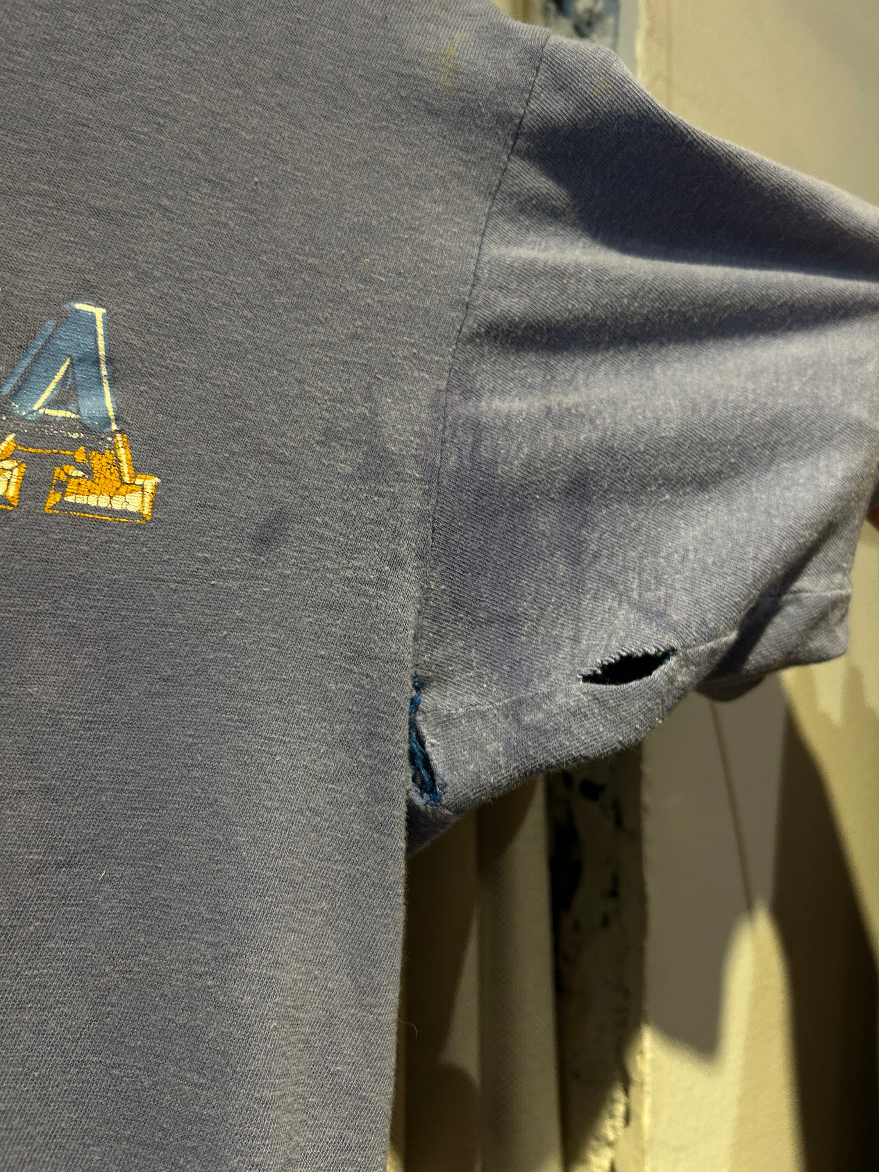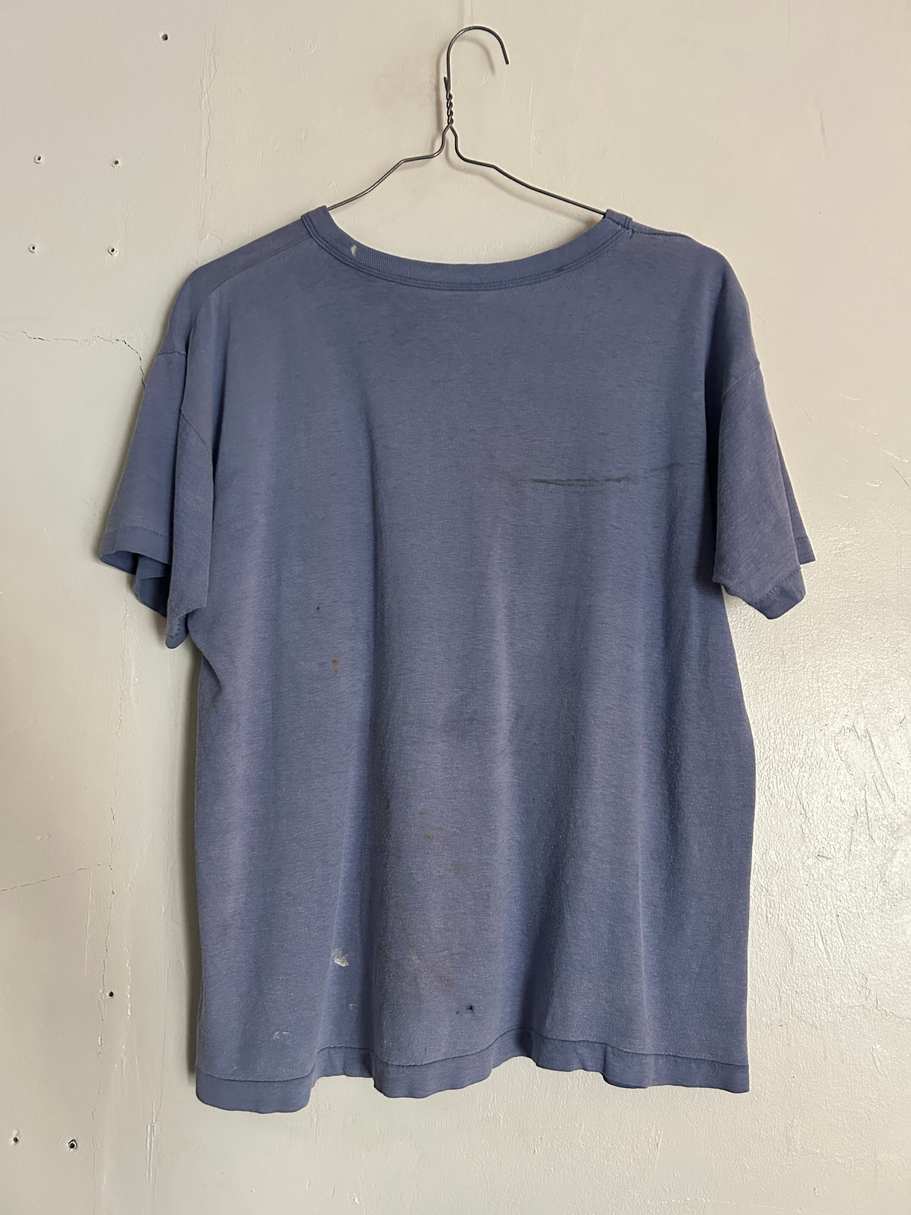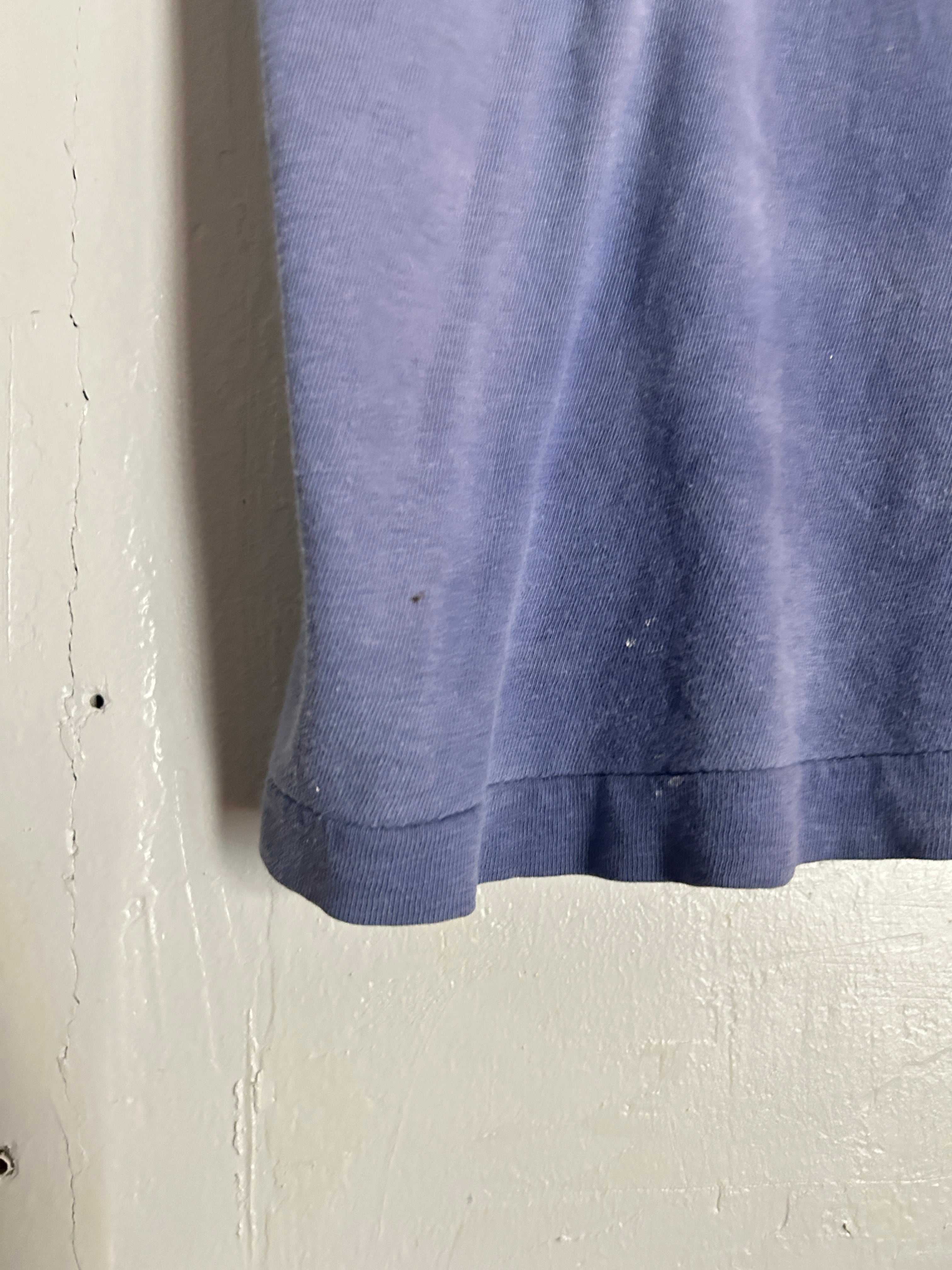 程よくフェードしたブルーボディに「GLORIETA」のロゴが映える80年代のChampionのTシャツ。かすれたプリントや色落ち感が雰囲気抜群の一着。