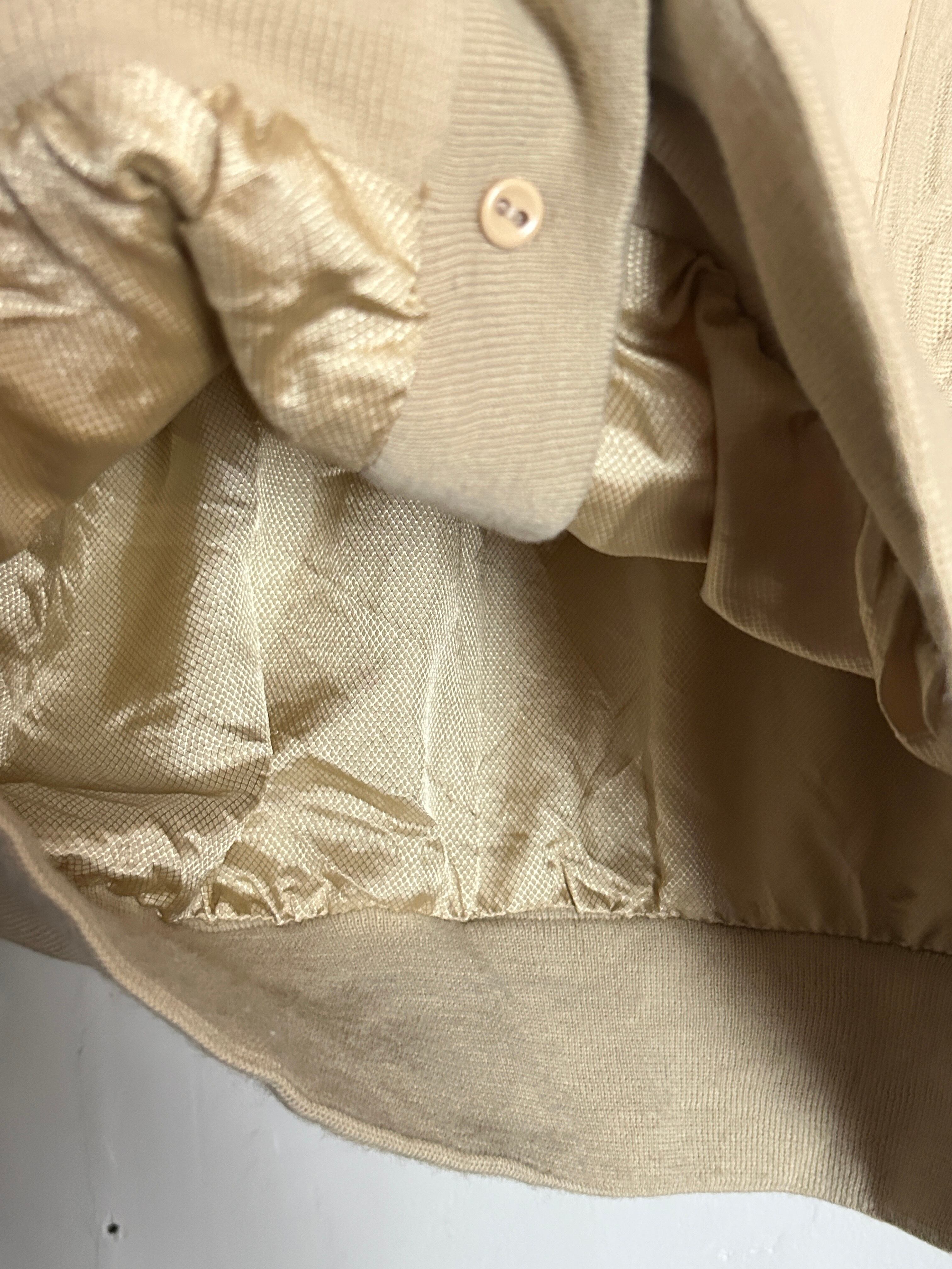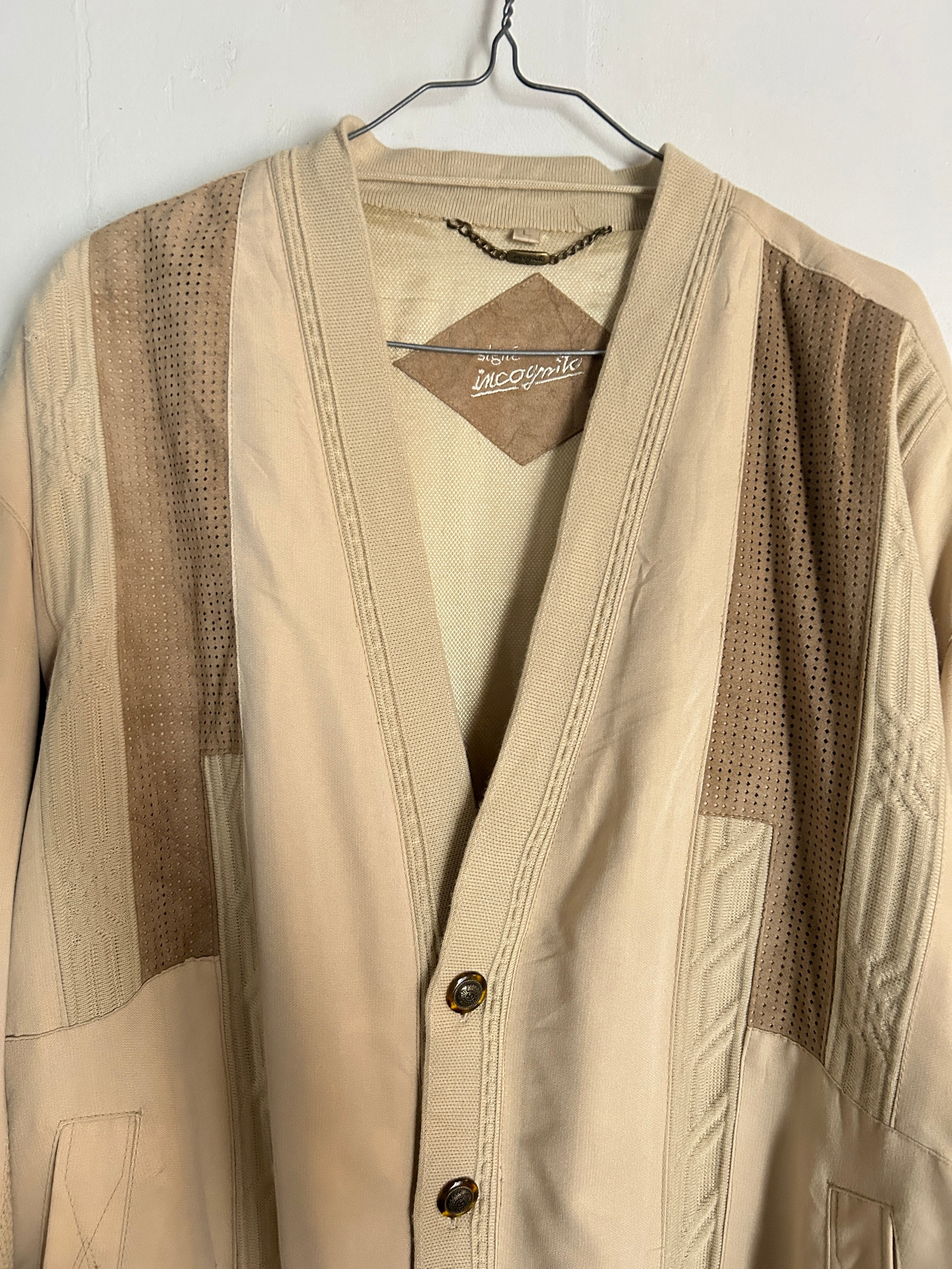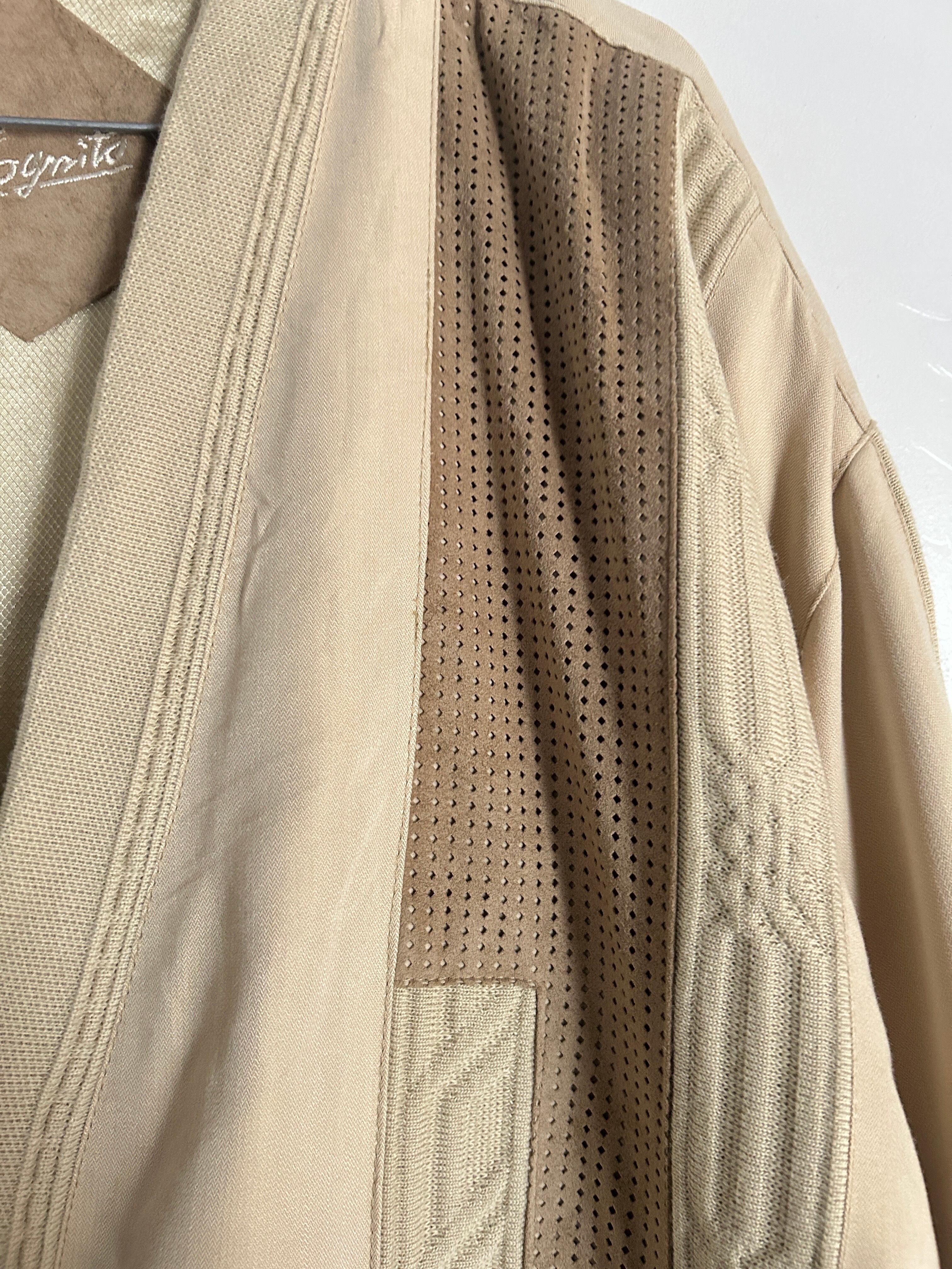 ベージュトーンでまとめられた、上品な切り替えデザインのカーディガン。異素材のパネルやメッシュ切り替えが程よいアクセントに。軽やかな着心地で、春秋はもちろんレイヤード次第でロングシーズン活躍します。落ち着いたカラーリングで、さりげなく個性を出したい方におすすめの一着です。