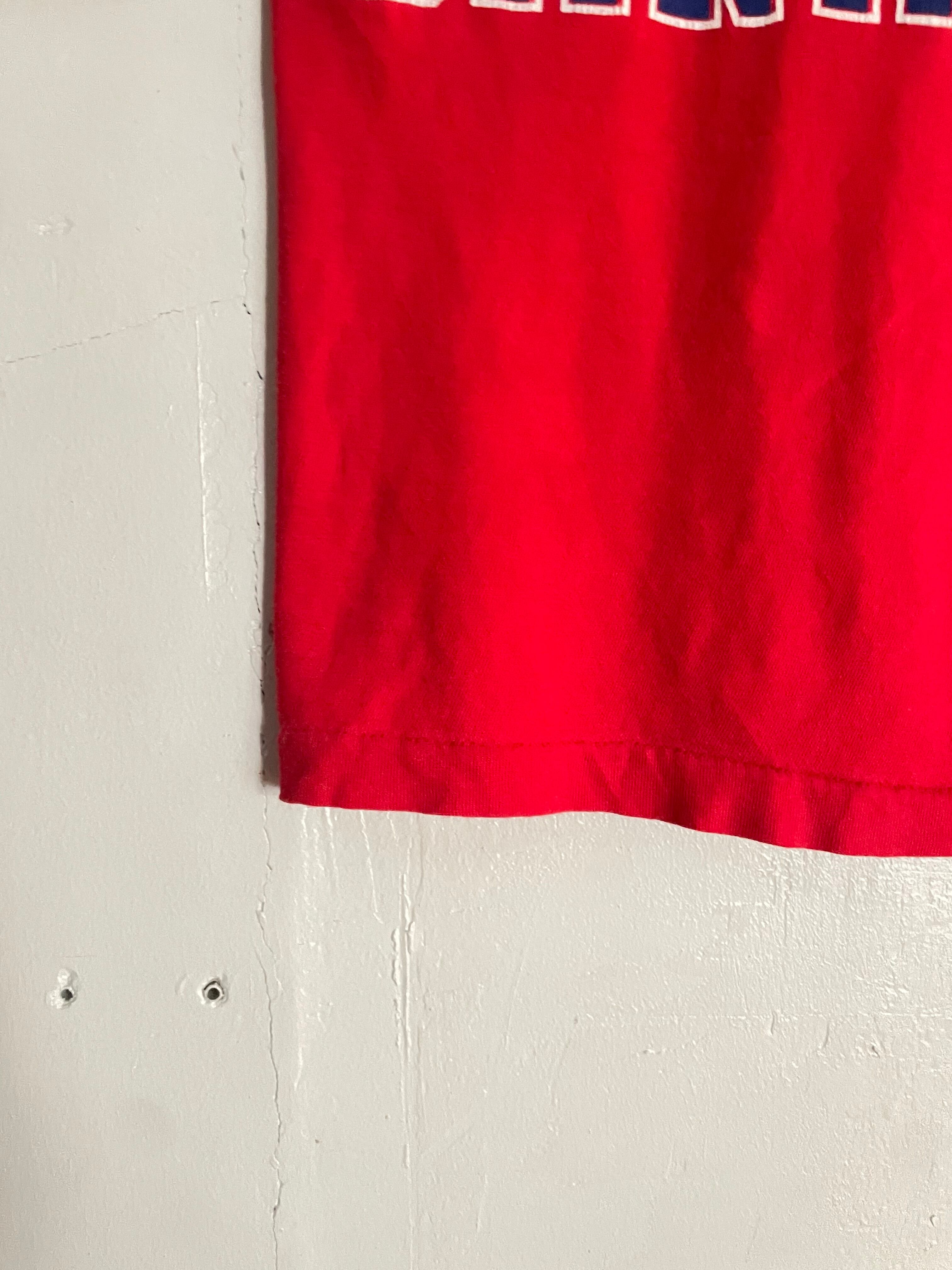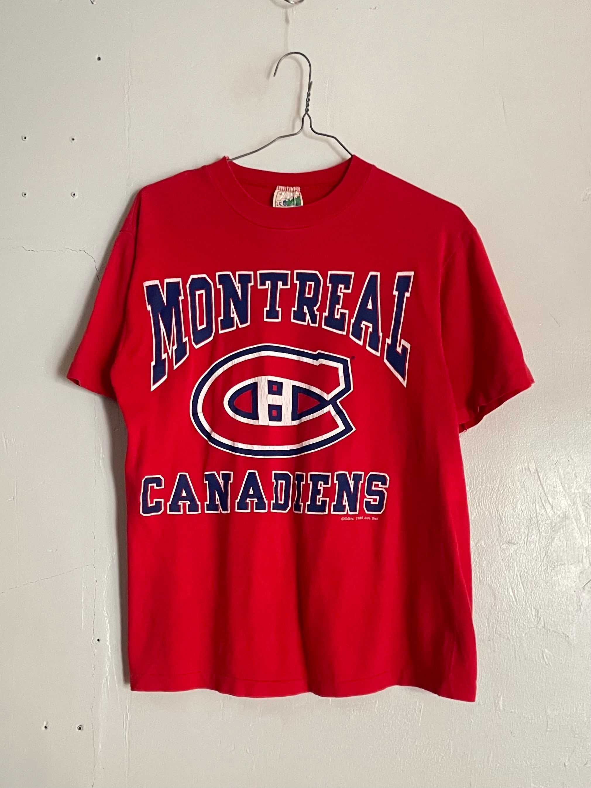 鮮やかなレッドボディに、「MONTREAL CANADIENS」のロゴが大胆にプリントされたスポーツTシャツ。チームの象徴的なロゴが存在感抜群のデザインです。いろんなスタイルがラフに決まる一着です。