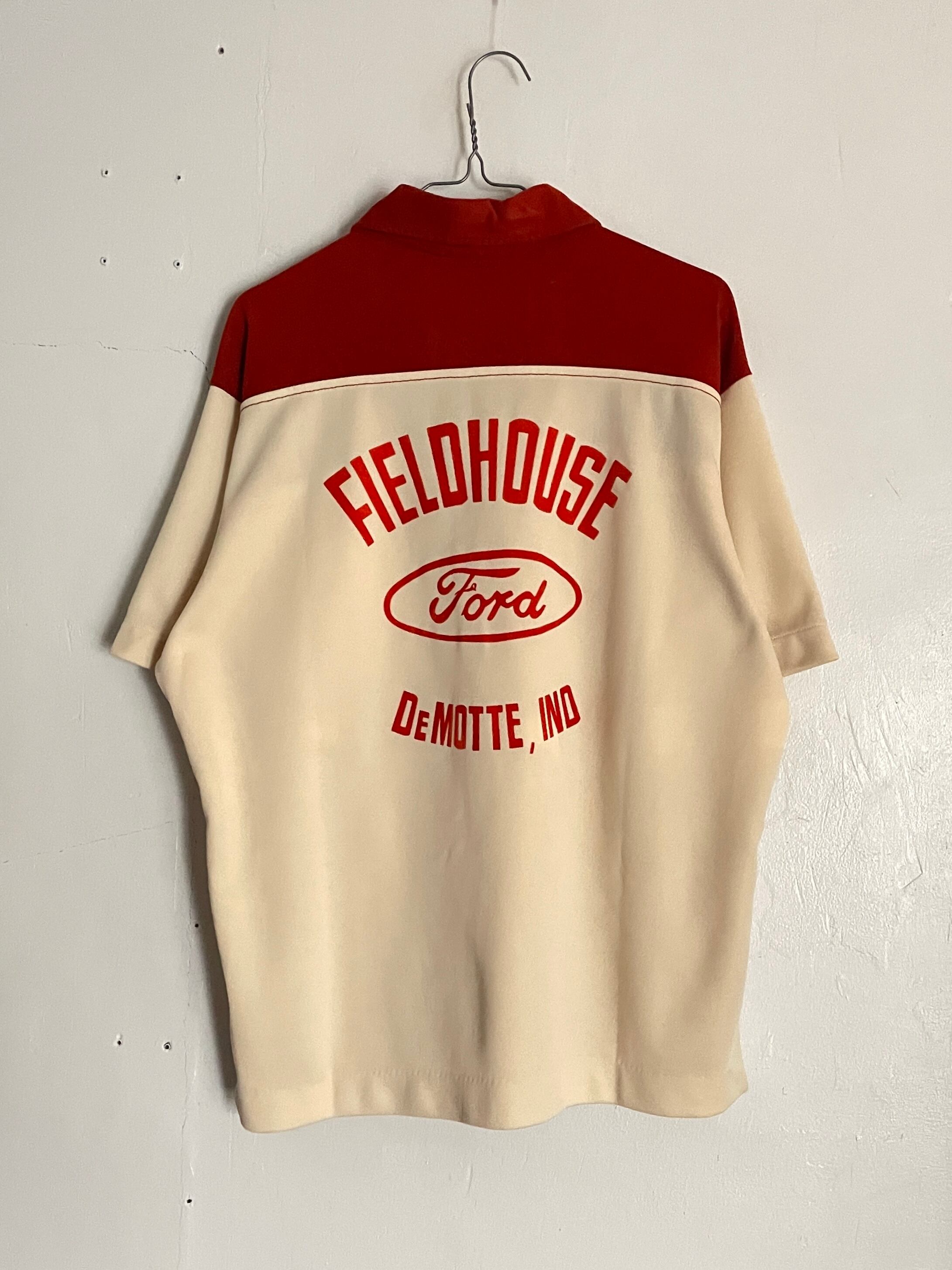レッド、アイボリーの2トーンの切り替えで、アメリカの自動車メーカー”フォード”のチェーンステッチ刺繍、パッチデザインが施された、キングルイのボーリングシャツ。40年にアメリカのミズーリ州で創業されたボーリングシャツブランドです。大振りな襟と、深めのハーフジップ、そしてさりげないチェーンステッチからはヴィンテージ感がガッツリと感じられます。バックには大きめにフォードのロゴと、インディアナ州デモットの文字などがデザインされています。前後共にクールなデザインになっています。伸縮性のある肌触りの良い素材感で、着やすさも抜群。もちろんUSA製の一着です。