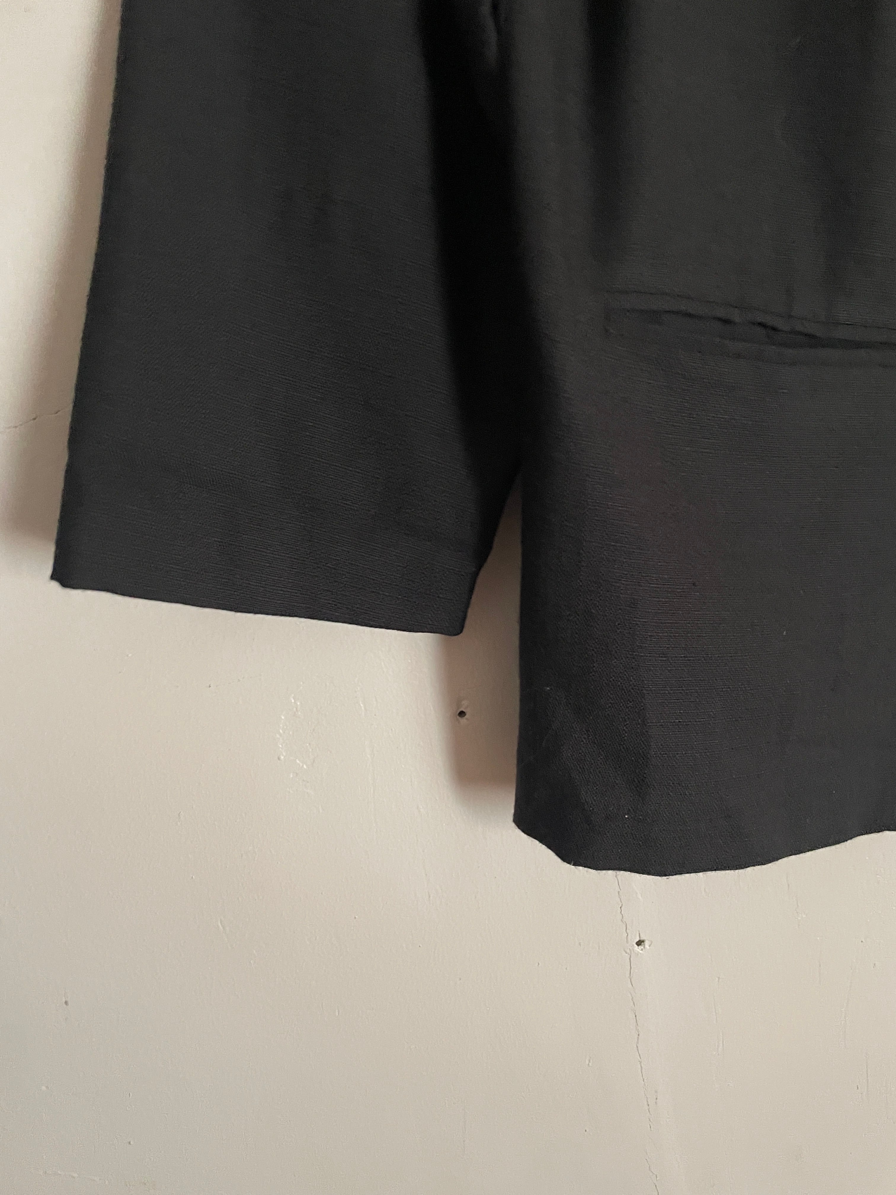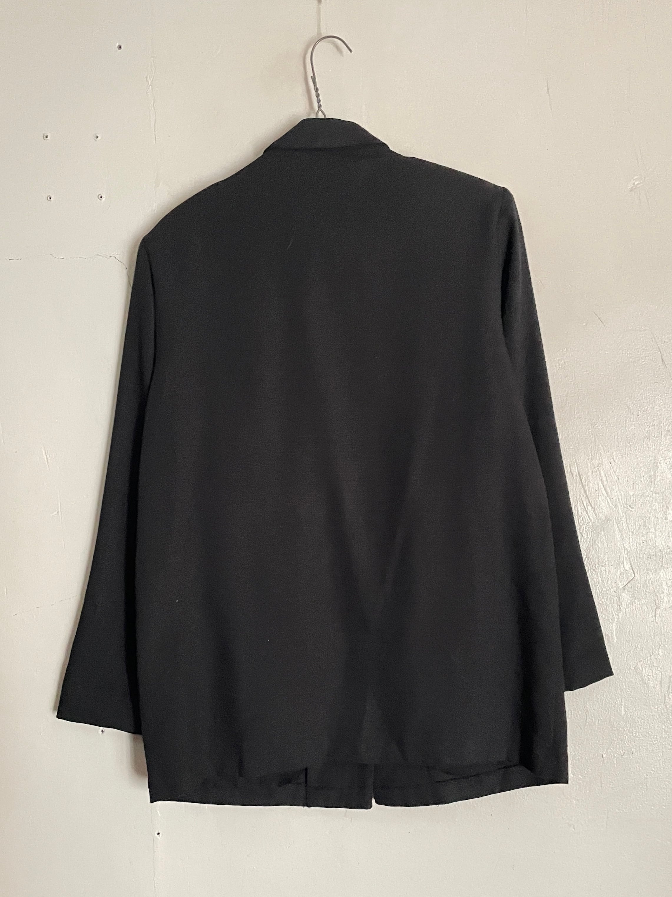 ブラックボディで、サラッとした着心地の良い素材感が魅力的なサマージャケット。これからの季節シャツ感覚で着られそうです。模様の入ったゴールドボタンも良いアクセントになっていてお洒落。ゆったりとラフに着られるサイズ感で、綺麗めやストリートなど、様々なファッションに取り入れやすいアイテムかと思います。