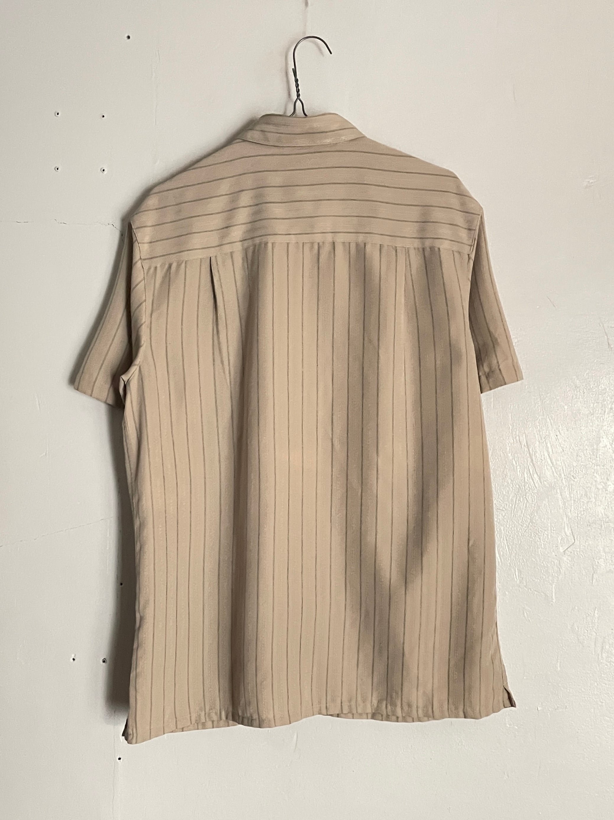 Old J.Ferrar Beige Stripe Pattern Design Polyester S/S Shirt