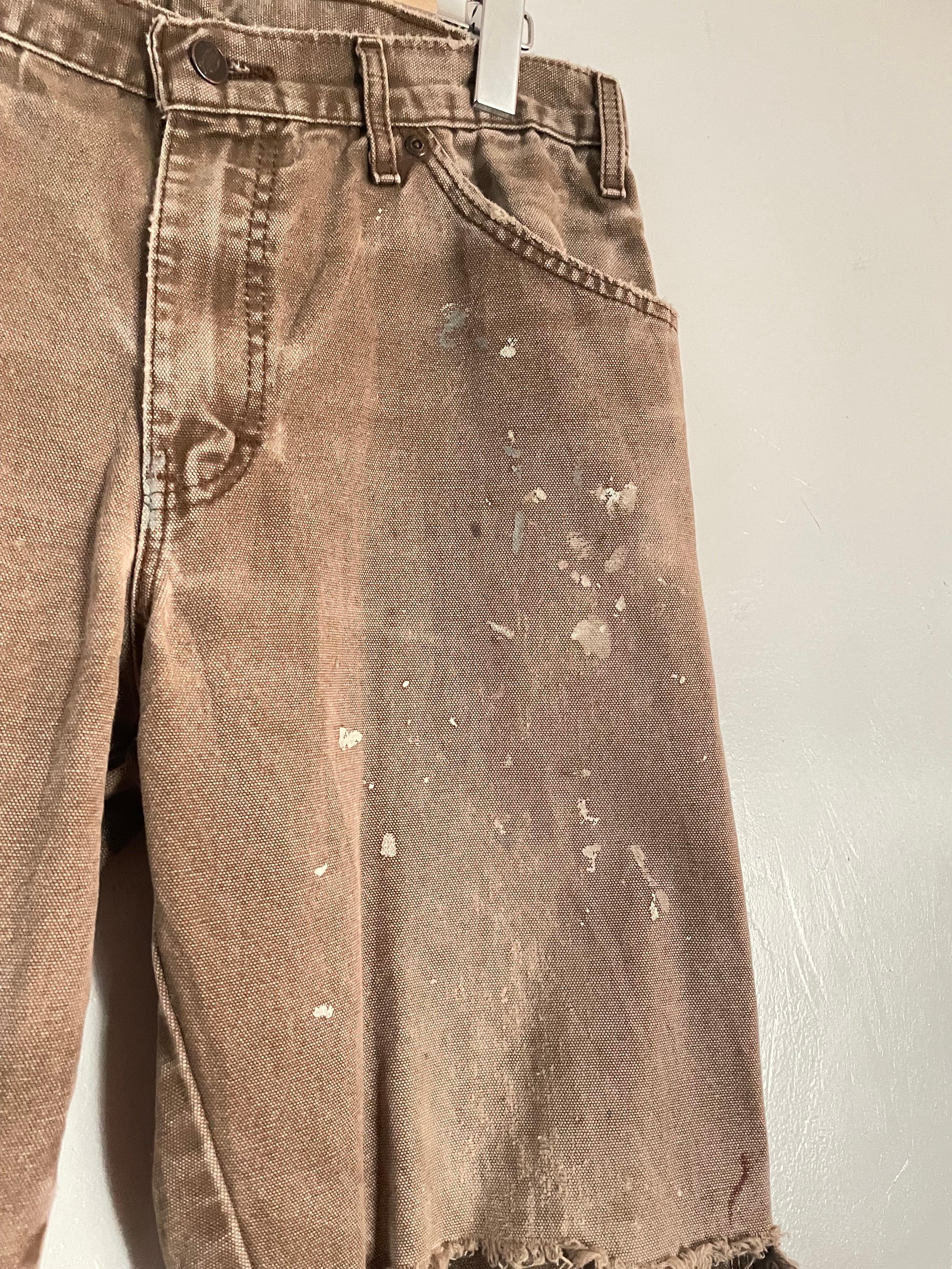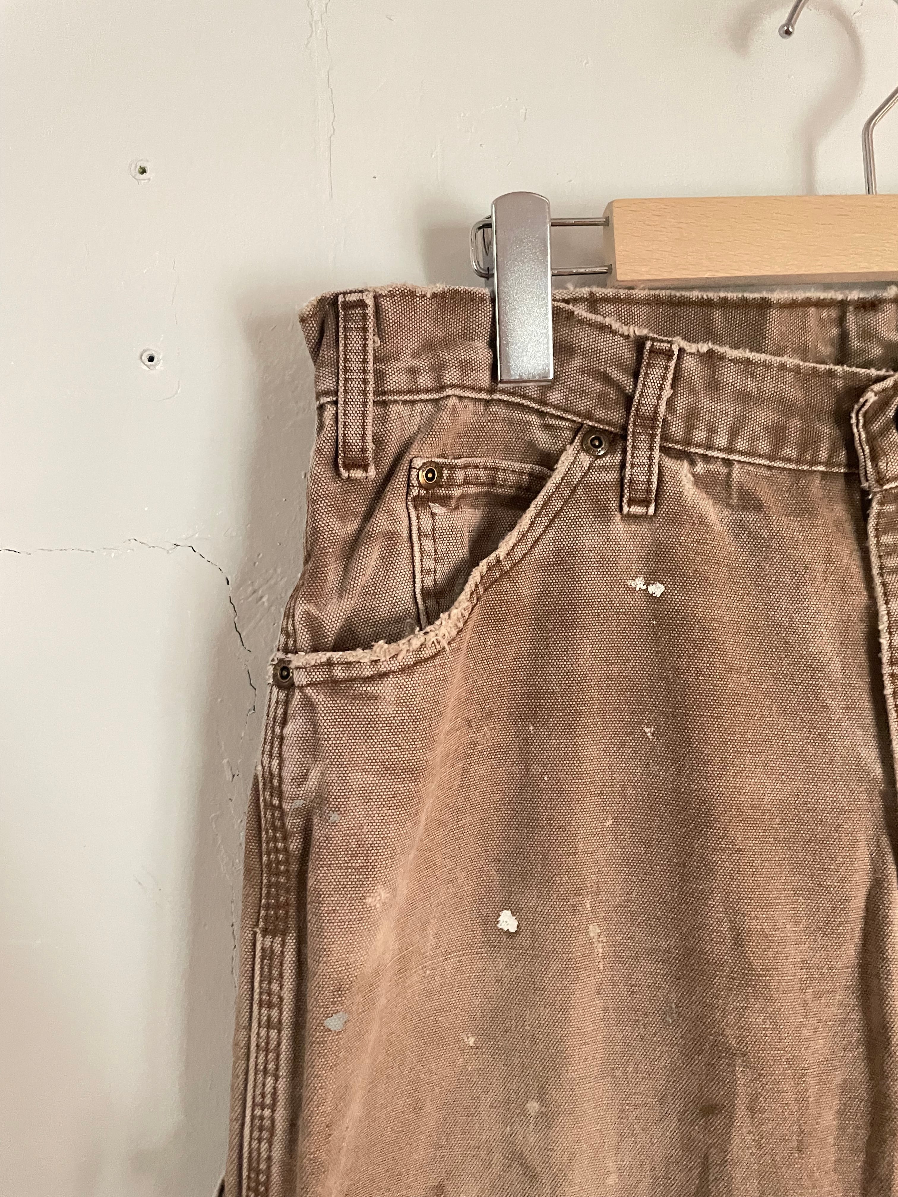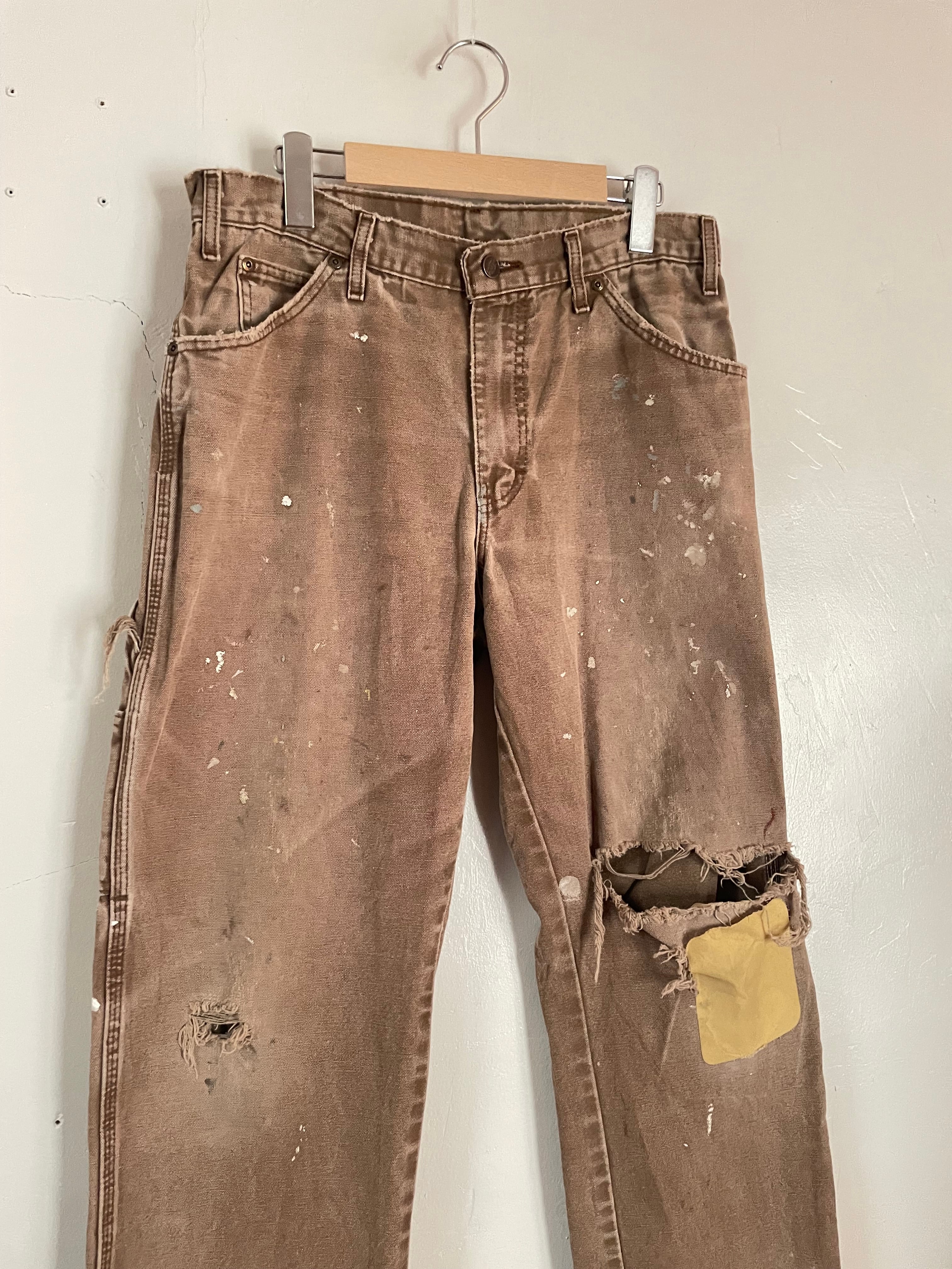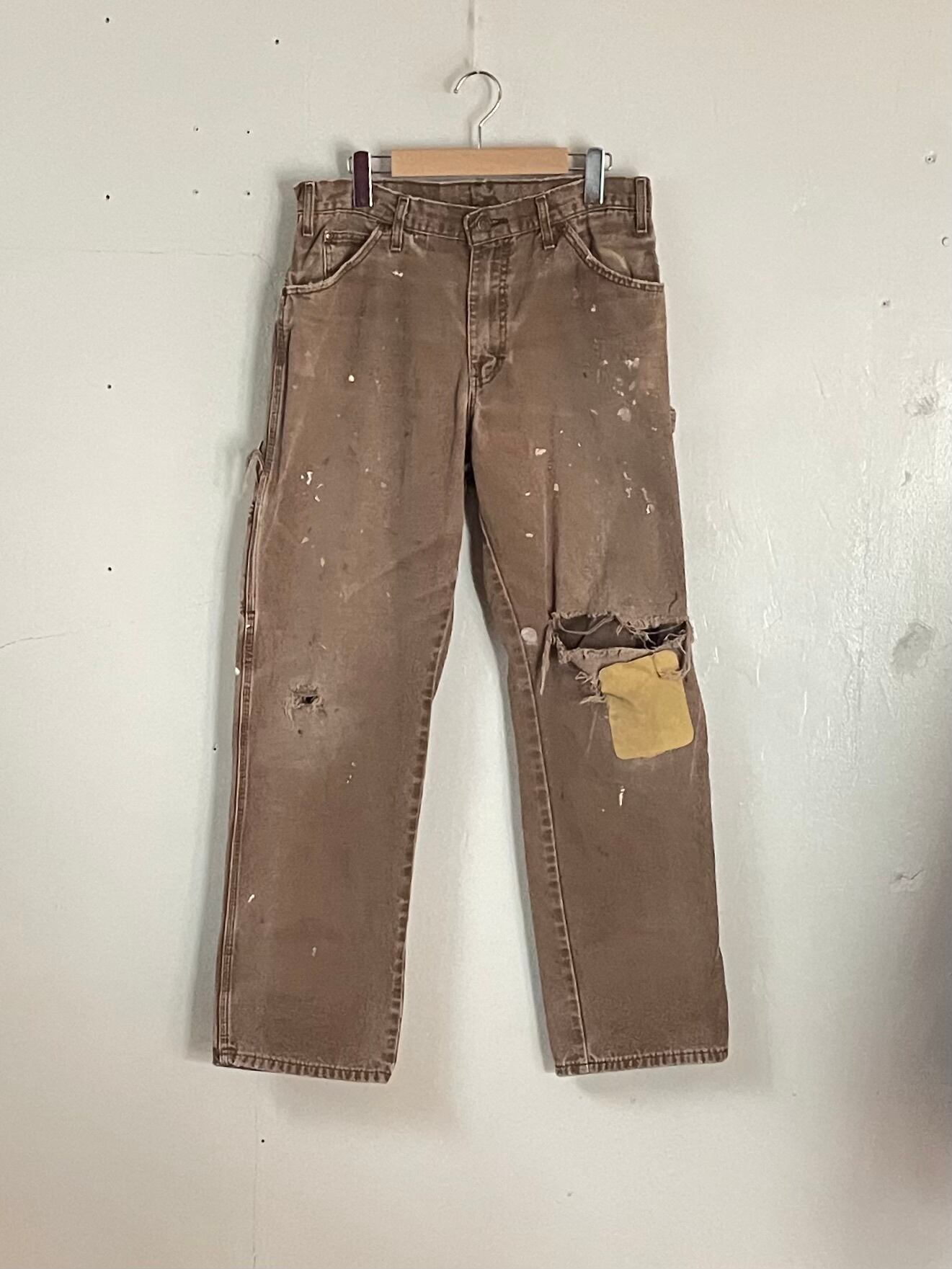 全体的なボロな雰囲気が堪らなくかっこいい、ディッキーズワークパンツ。ペイントだったり、ダメージだったり、リペアだったりとオーラのあるデザインです。ワークパンツはこれくらいの方がかっこいいですよね。褪せたブラウンカラーで渋さもあり、やんちゃな雰囲気も感じられる一本です。