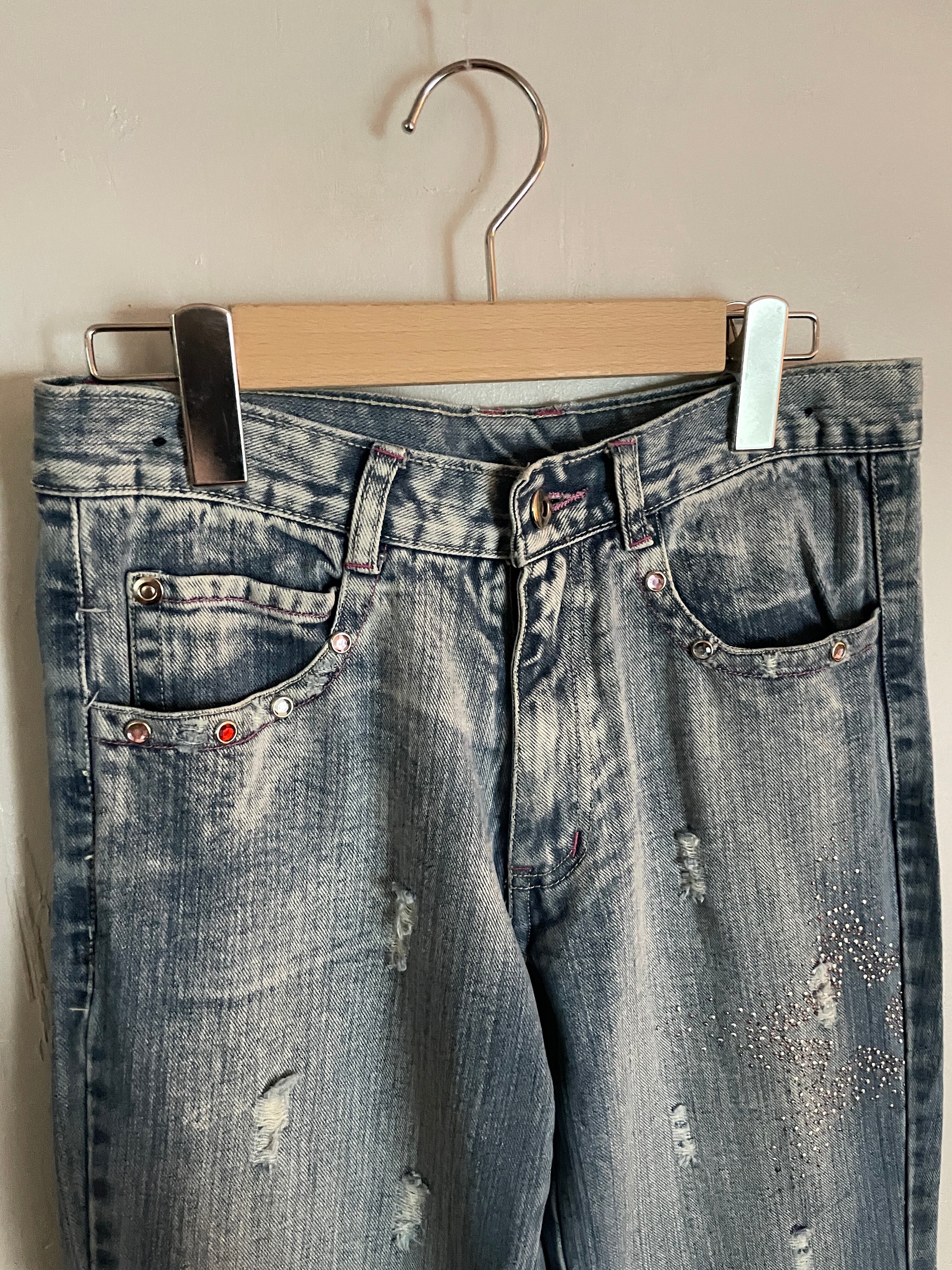 Old SMALL GANG Beads×Damage Design Flare Denim Pants