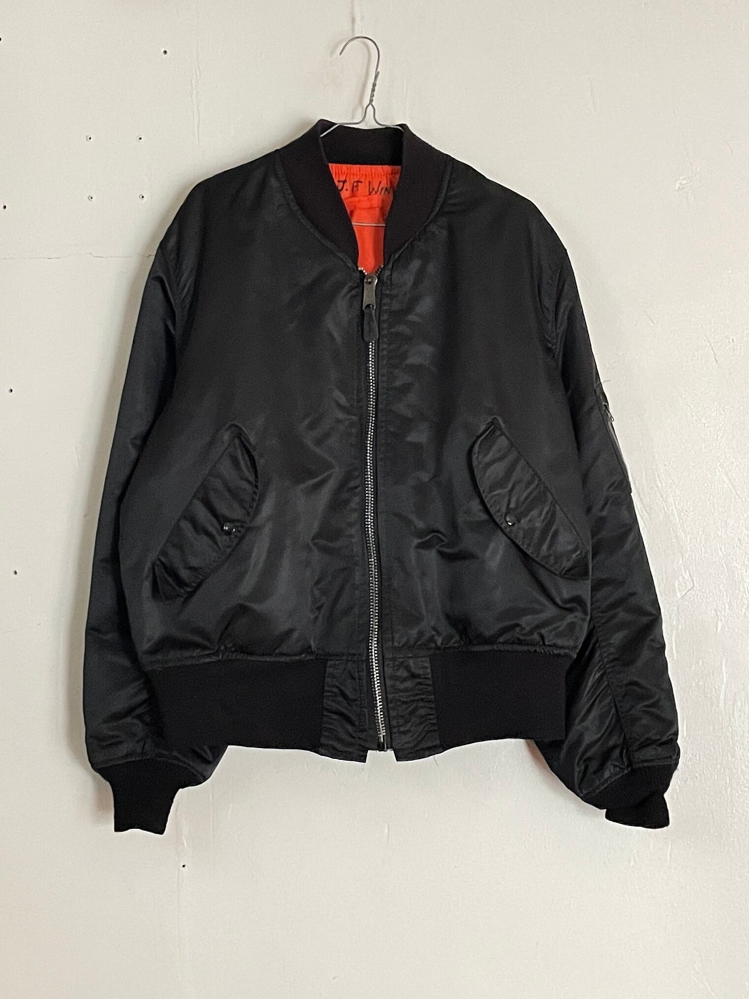 これからの季節に確実に活躍してくれるであろう、MA-1フライトジャケット。カラーはブラックで、サイズはLとゴールデンサイズ。MA-1の魅力は裏地のオレンジでも着られるリバースブル仕様。ネック、裾、袖口はリブ仕様なので締まりも完璧です。USA製なのもポイントが高いです。男女共に、使いやすくおすすめしたい1着です。