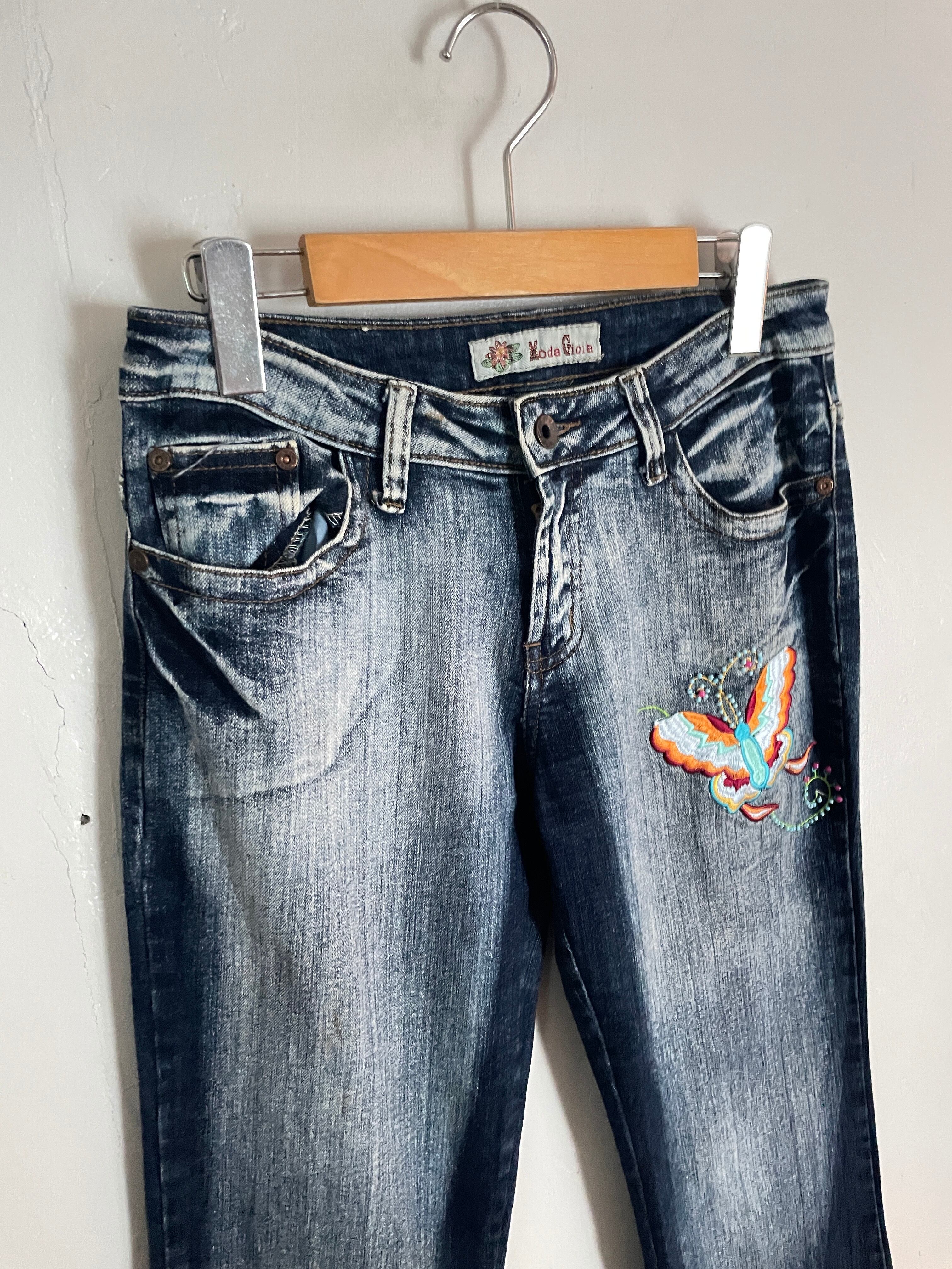 Old Mode Gioia Washed Embroidery Design Flare Denim Pants