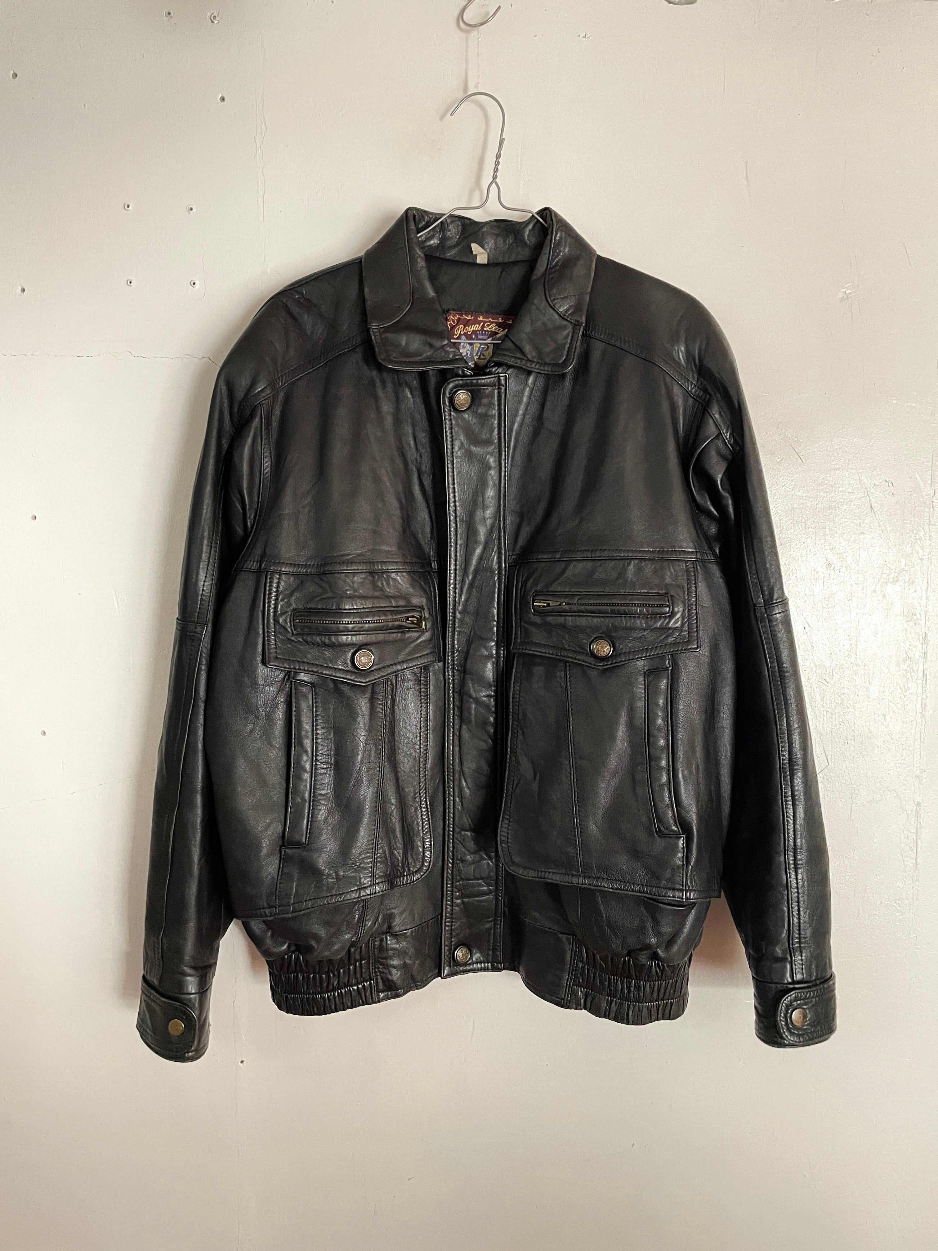 上質なブラックレザーで、フロントのポケットデザインがカッコいいレザージャケット。若干丸みを帯びた襟もお洒落です。フラップポケット部分位はボタンで留められたフェイクポケットで実際は袋布が付いていません。ジップを開ければ若干のスペースがあるため小さめのものなら入りそうです。柔らかいレザーで綺麗に肩が落ちるシルエット抜群の、存在感ある一着。