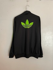 スター・ウォーズのキャラクター、ヨーダが大胆にプリントされた、アディダスのトラックジャケット。黒と緑の配色をうまく使った、スター・ウォーズとのコラボアイテムです。背中には緑のトレフォイルロゴ、大き過ぎず小さ過ぎない程よいサイズ感です。アウターを重ねて真ん中からヨーダをチラッと覗かせるのも面白いかもしれません。
