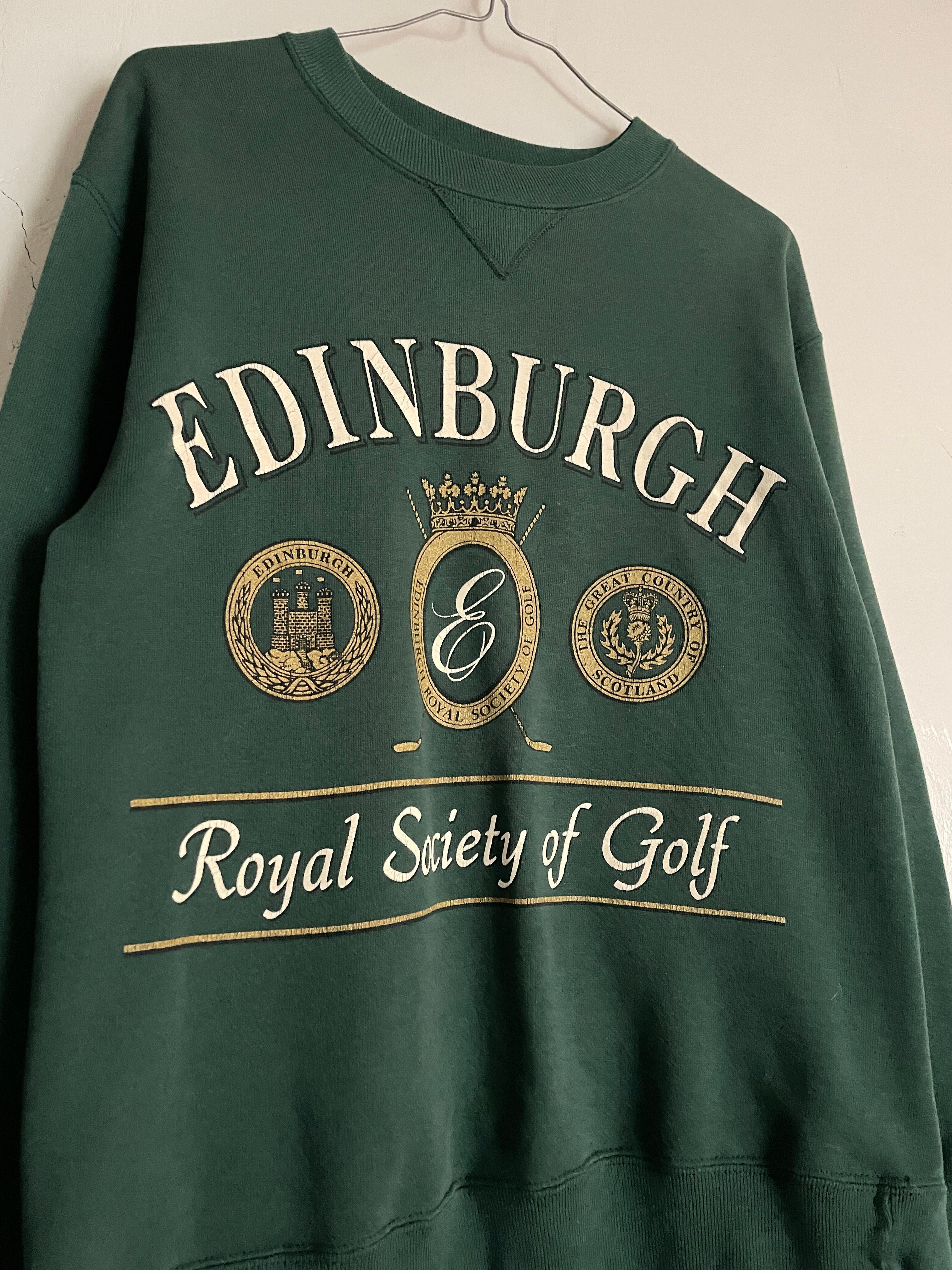 ダークグリーンボディーに、スコットランドの首都”エディンバラ”のプリントが施されたスェット。カレッジ感のあるプリントがグッドです。軽いコットンとポリ素材。まさに今の時期一枚で活躍してくれそうです。冬場にはインナーとしても使えそうです。USA製なのも魅力的です。
