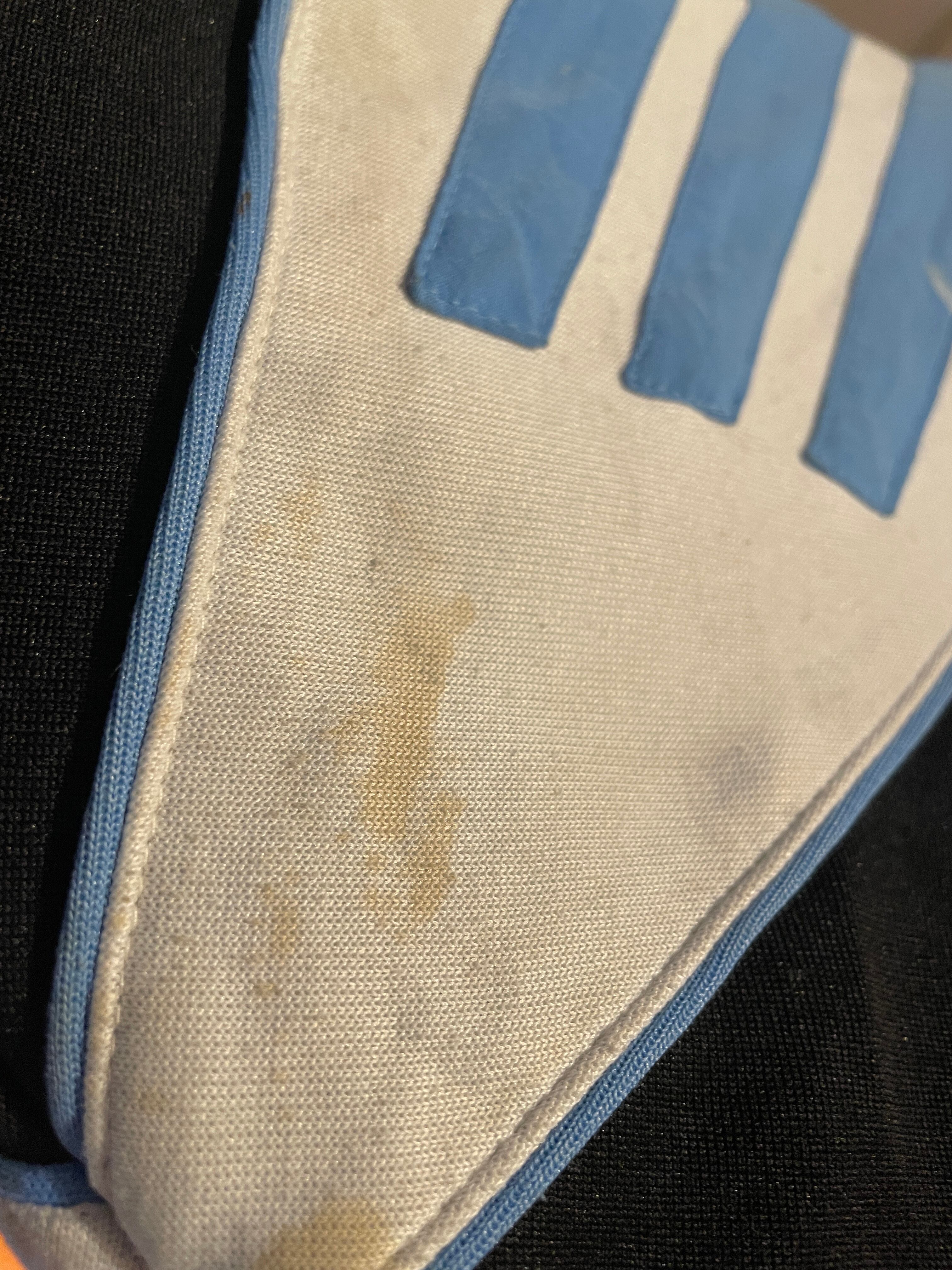 ブラックボディーをベースに、お洒落なラインデザイン、ペイントが施された、アディダスのトラックジャケット。銀タグな事から、80年代後半から90年代頃のアイテムだという事が分かります。あえて雑なペイインデザインと肩部分の色の切り替えがなんとも言えないかっこよさ。トレフォイルとブランドネームの刺繍もグッドです。バックには企業パッチデザイン。ネック、袖口、裾はリブ仕様なのも魅力的です。男女共におすすめしたい一着です。右袖口リブに穴が見られます。